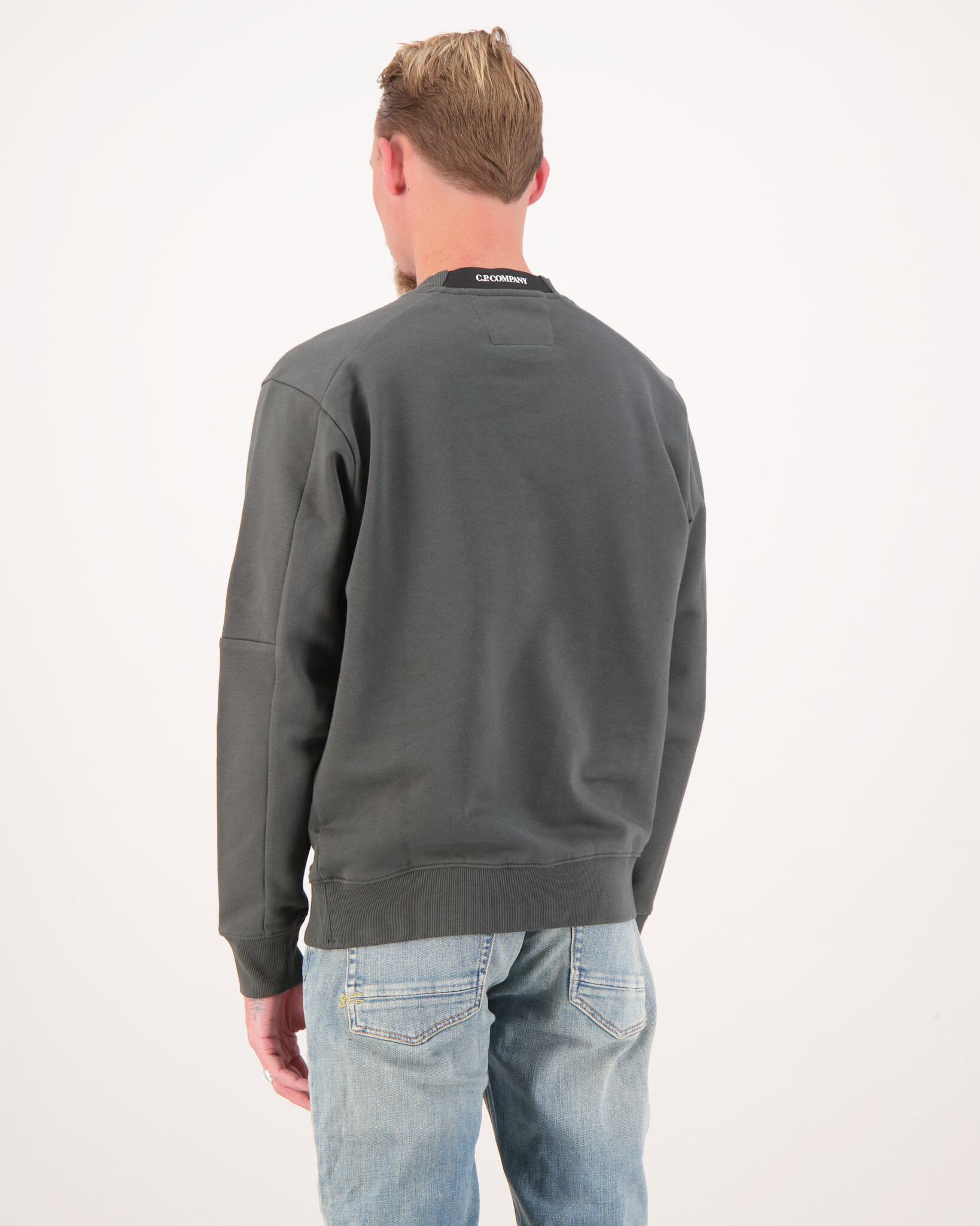 Donkergrijze Diagonal Raised Fleece Crew Neck Lens Sweatshirt van het merk C.P. Company. Sweater met ronde hals met het bekende lens logo op de linker arm.