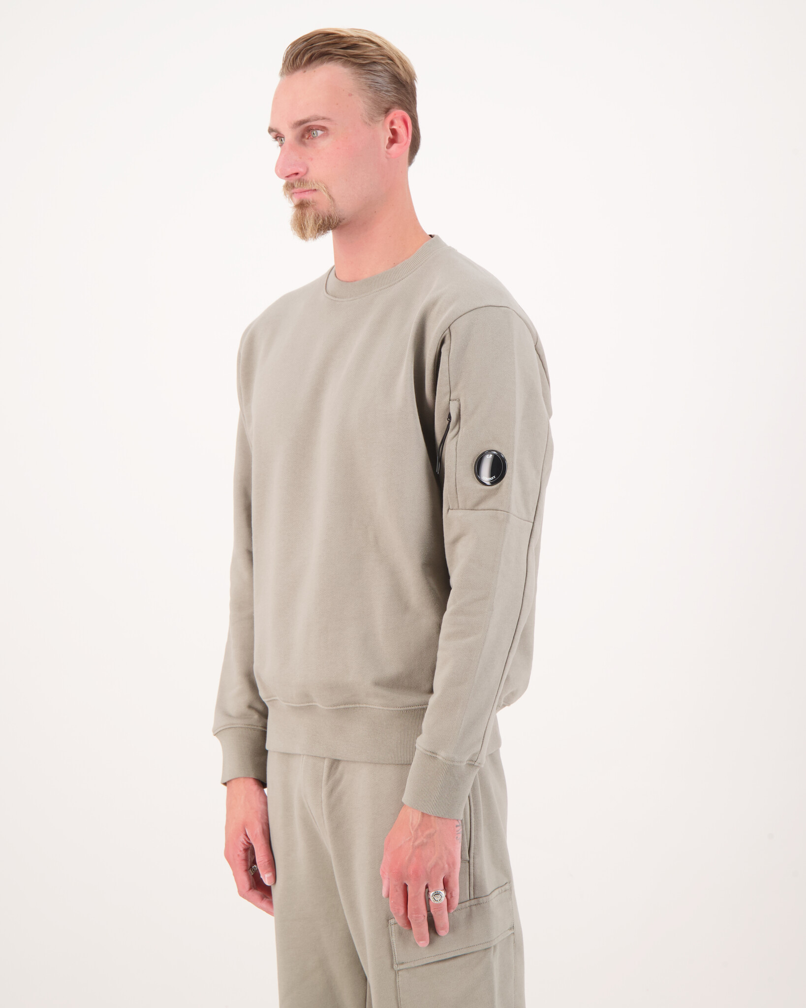 Grijze Diagonal Raised Fleece Crew Neck Lens Sweatshirt van het merk C.P. Company. Sweater met ronde hals met het bekende lens logo op de linker arm.