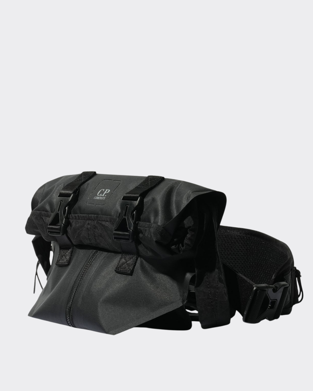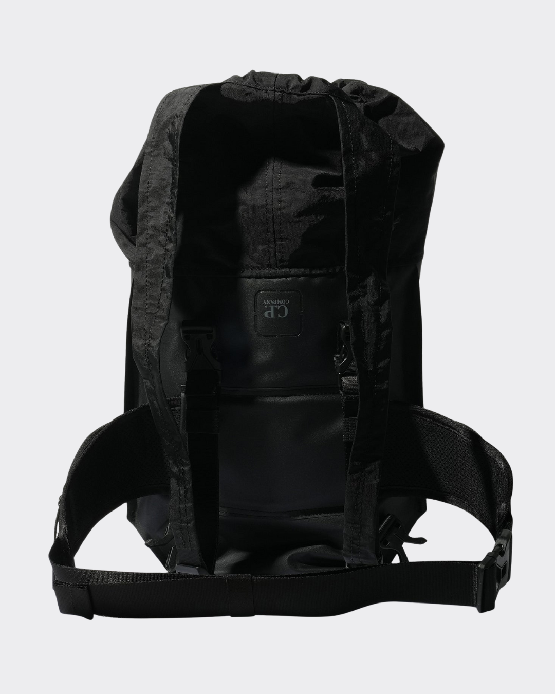 Zwart Mixed Rubber Reps bag van het merk C.P. Company. Transformeerbare tas gemaakt van Rubber Reps Mixed, een 210-denier nylon met een rubberen reps-achterkant. Ontworpen om te wisselen tussen rugzak- en schoudertasconfiguraties, heeft dit veelzijdige item een trekkoordsluiting aan de bovenkant, een voorvak met ritssluiting en verborgen drukknopen, en verstelbare schouderbanden met gespsluiting. Afgewerkt met een gelaserd logo-embleem op de achterkant en een afneembare schouderband met geïntegreerd ritsvak en rubberen logo-embleem. In schoudertasmodus heeft het ontwerp een gespsluiting en een riem met ritsvakken.