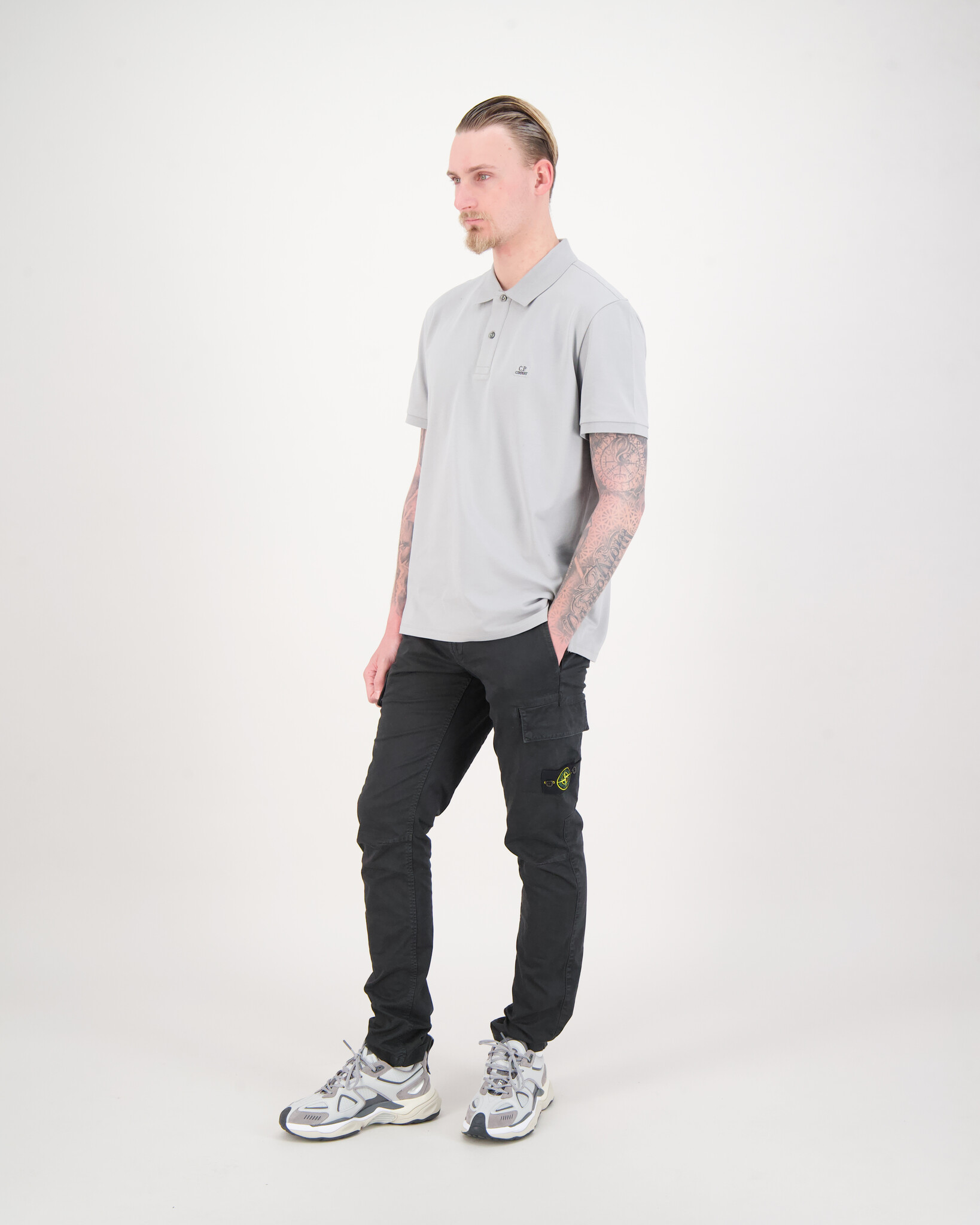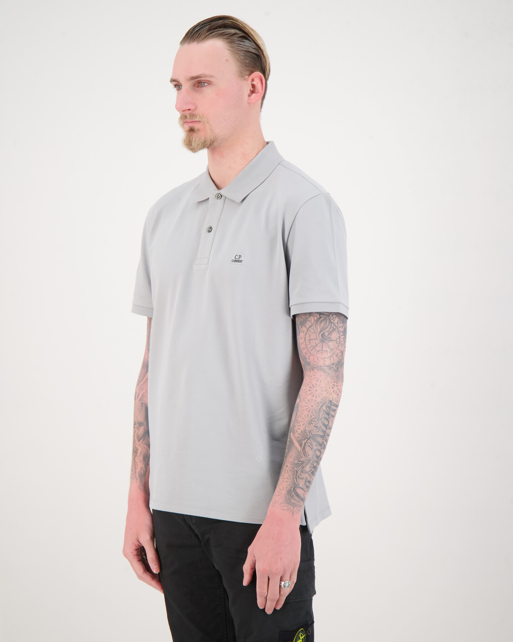 Grijze Polo Short Sleeve Shirt van het merk C.P. Company. Dee Polo heeft heet bekende C.P.Company logo op de borst.
