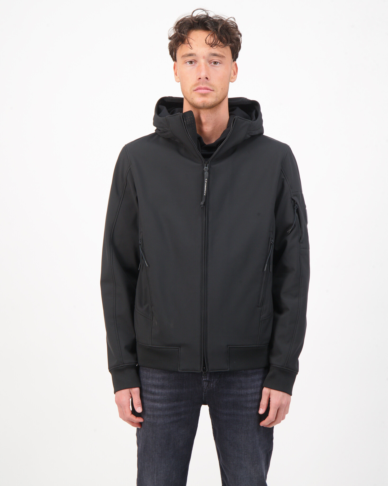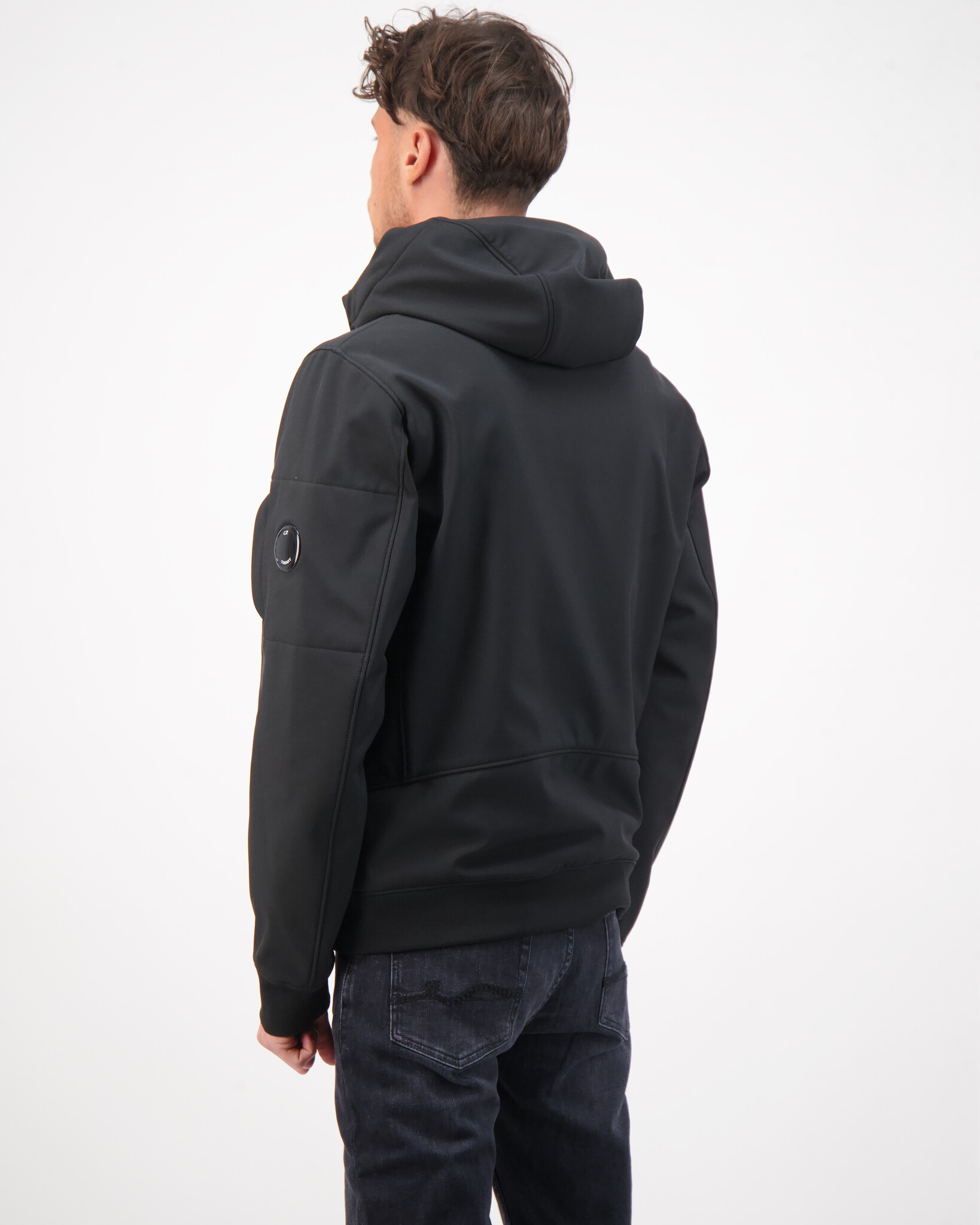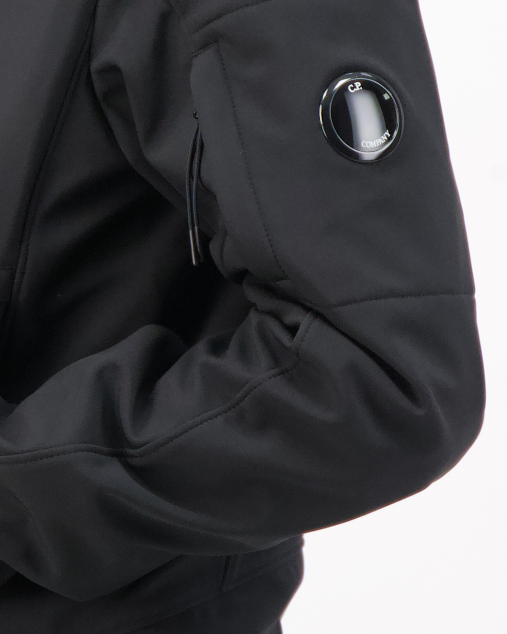 Zwart Shell-R Short Jacket van het met C.P. Company. De jas heeft een vaste capuchon, twee steekzakken met een rits en op de mouw de bekende Goggle.