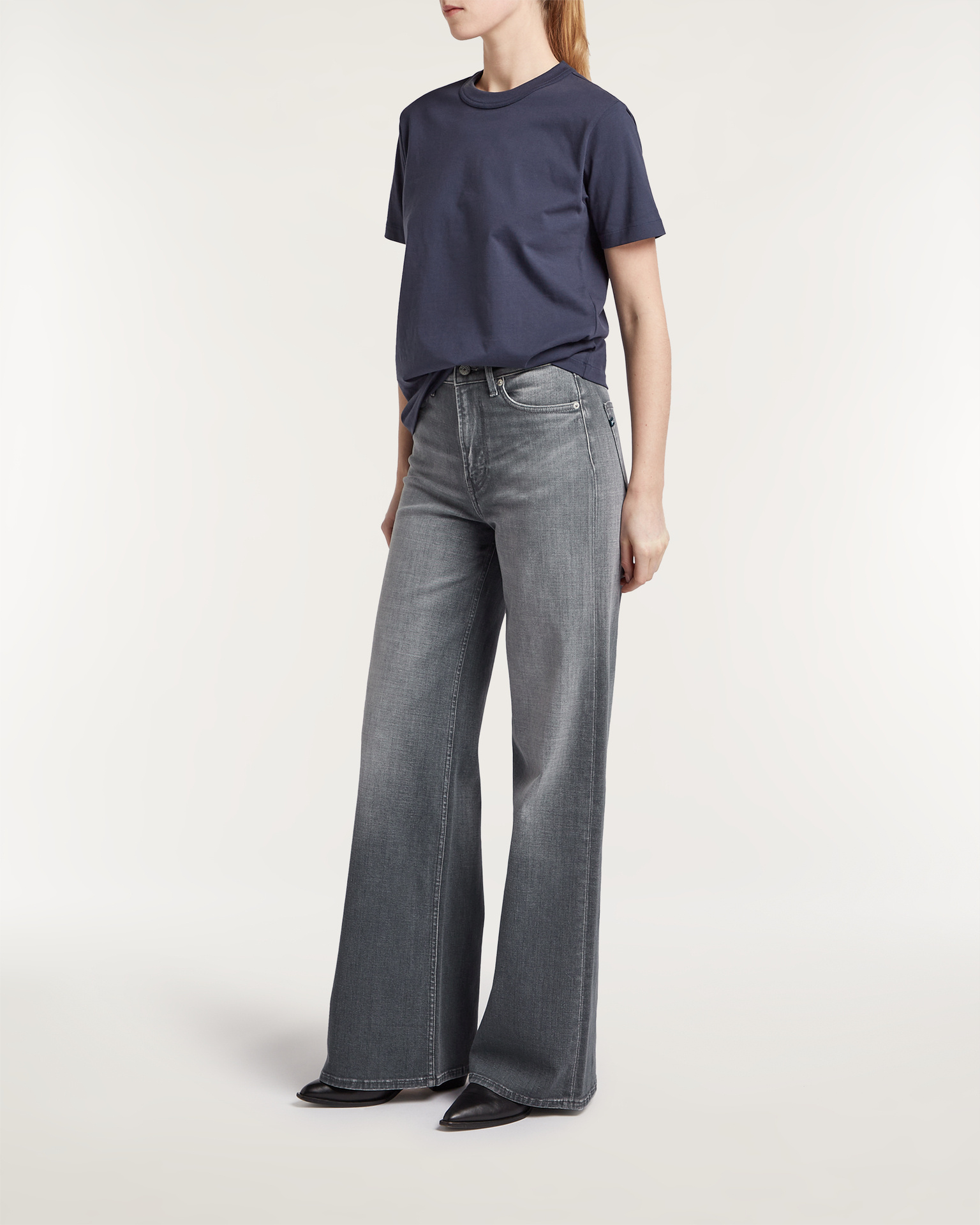 De MIKU is onze moderne wide-leg jeans. Gemaakt van zachte 12 oz left-hand denim en afgewerkt met een subtiele wassing en tonale stiksels. Signature wide flare met high-rise taille en een aangesloten pasvorm die uitloopt in een wijde pijp.