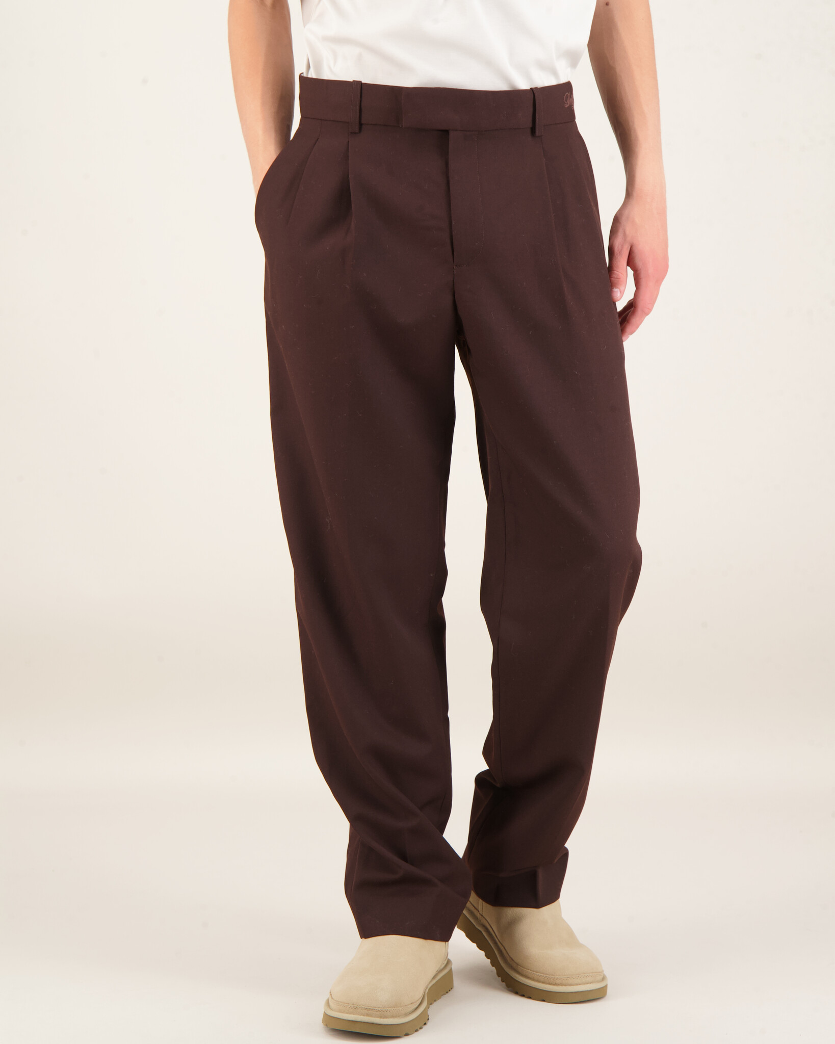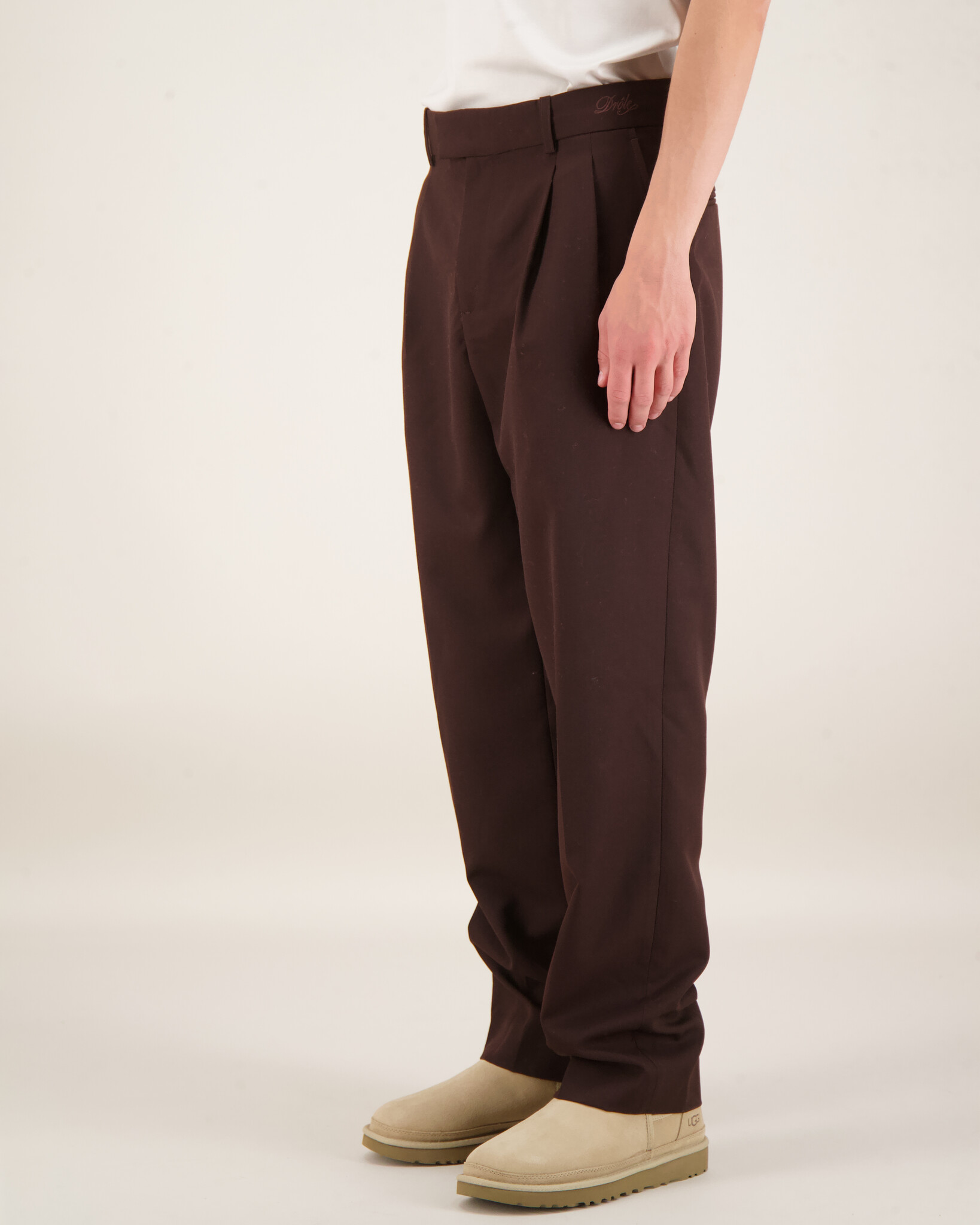 De bruine Le Pantalon Golfeur van Drôle de Monsieur is gecreëerd met een blend van 55% polyester en 45% wol. Met een normale pasvorm en een subtiel klassiek ontwerp, biedt dit kledingstuk veelzijdigheid. De broek heeft een verfijnde afwerking zonder opvallende prints.