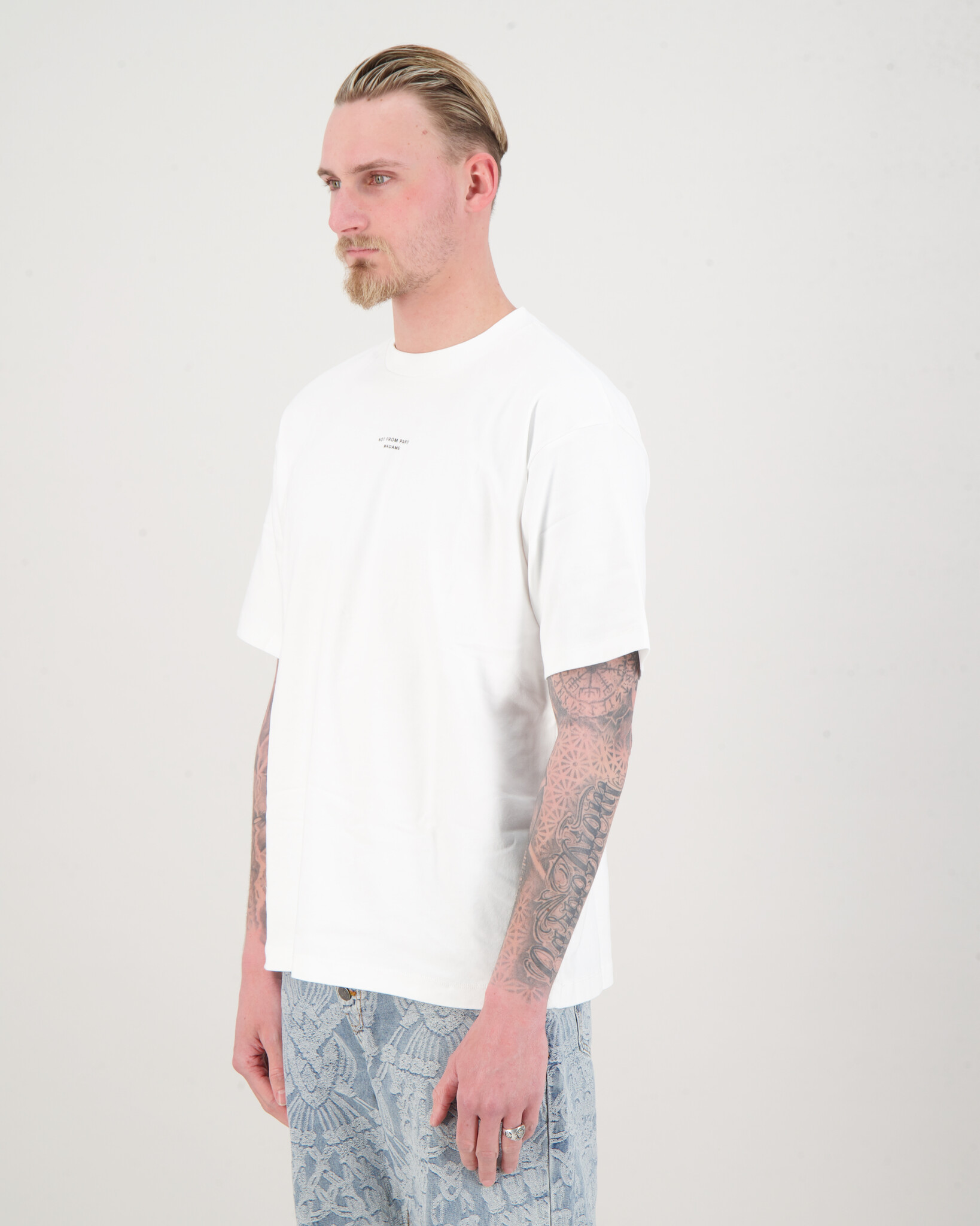 Witte 'Le T-Shirt Classique NFPM' van het merk Drôle de Monsieur. Het t-shirt heeft een ronde hals, korte mouwen en een print op de borst.