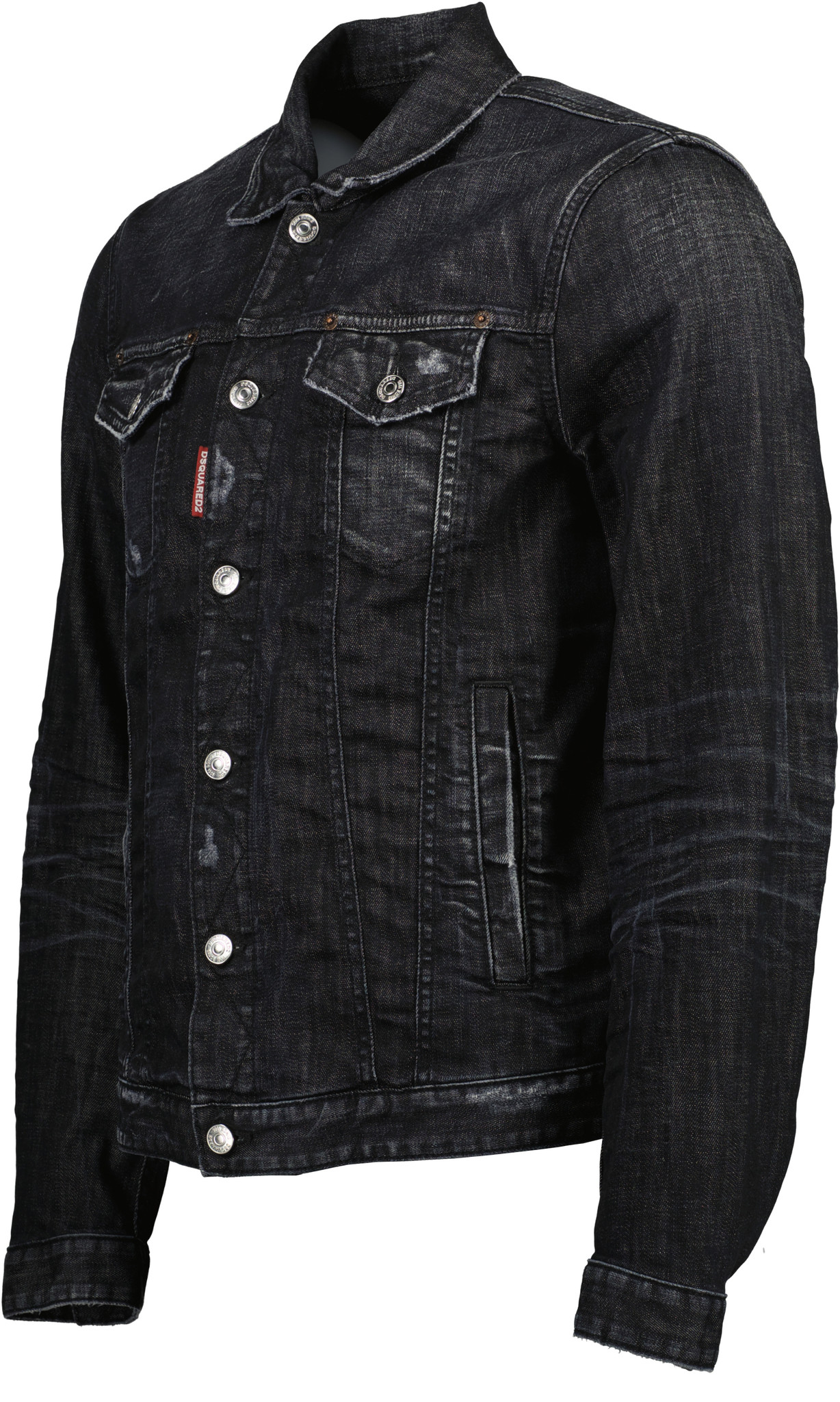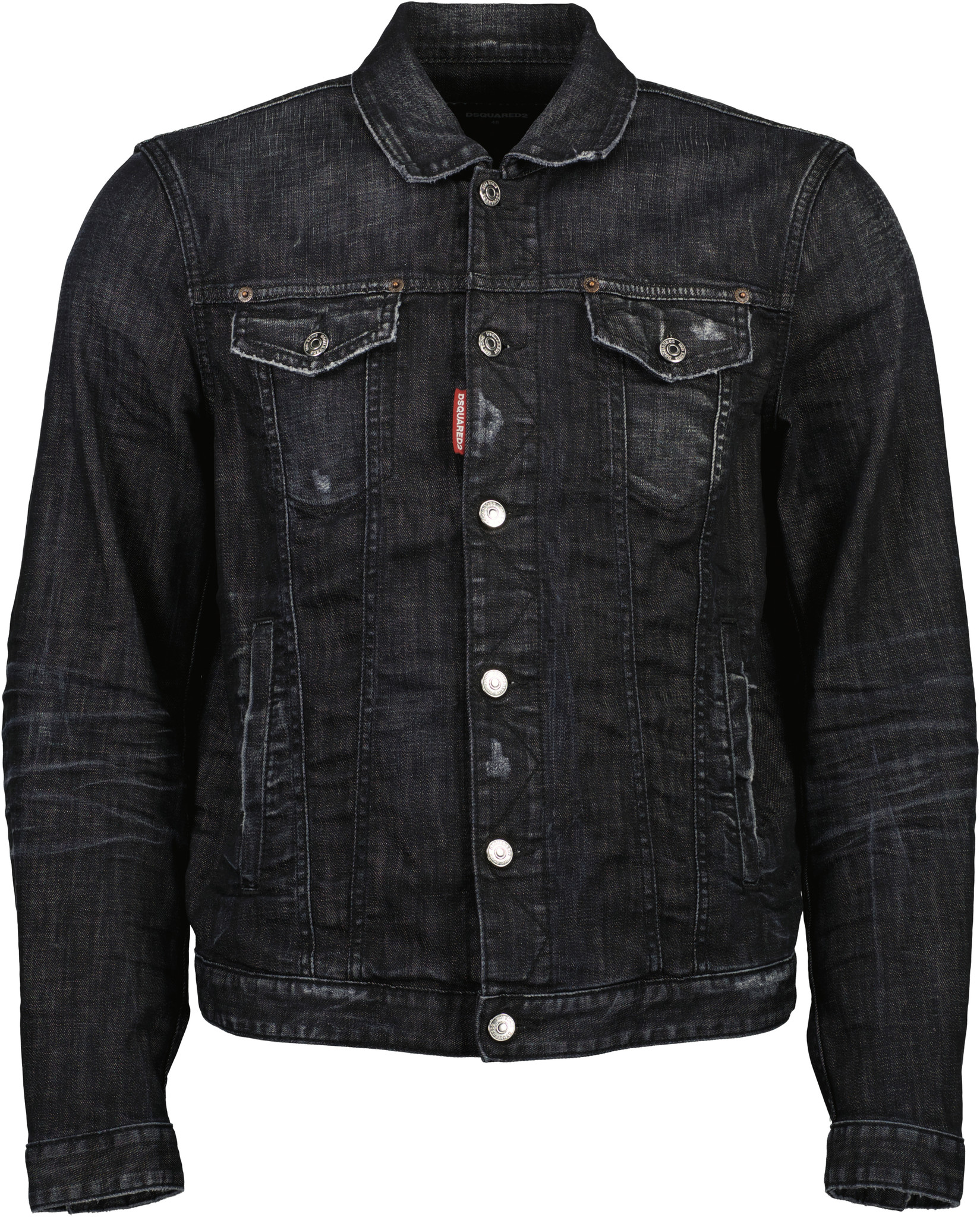 Zwarte Denim Jacket van het merk Dsquared2 . Het jack is gesloten met knoopjes en heeft het bekende Dsquared2 badge op de voorkant.