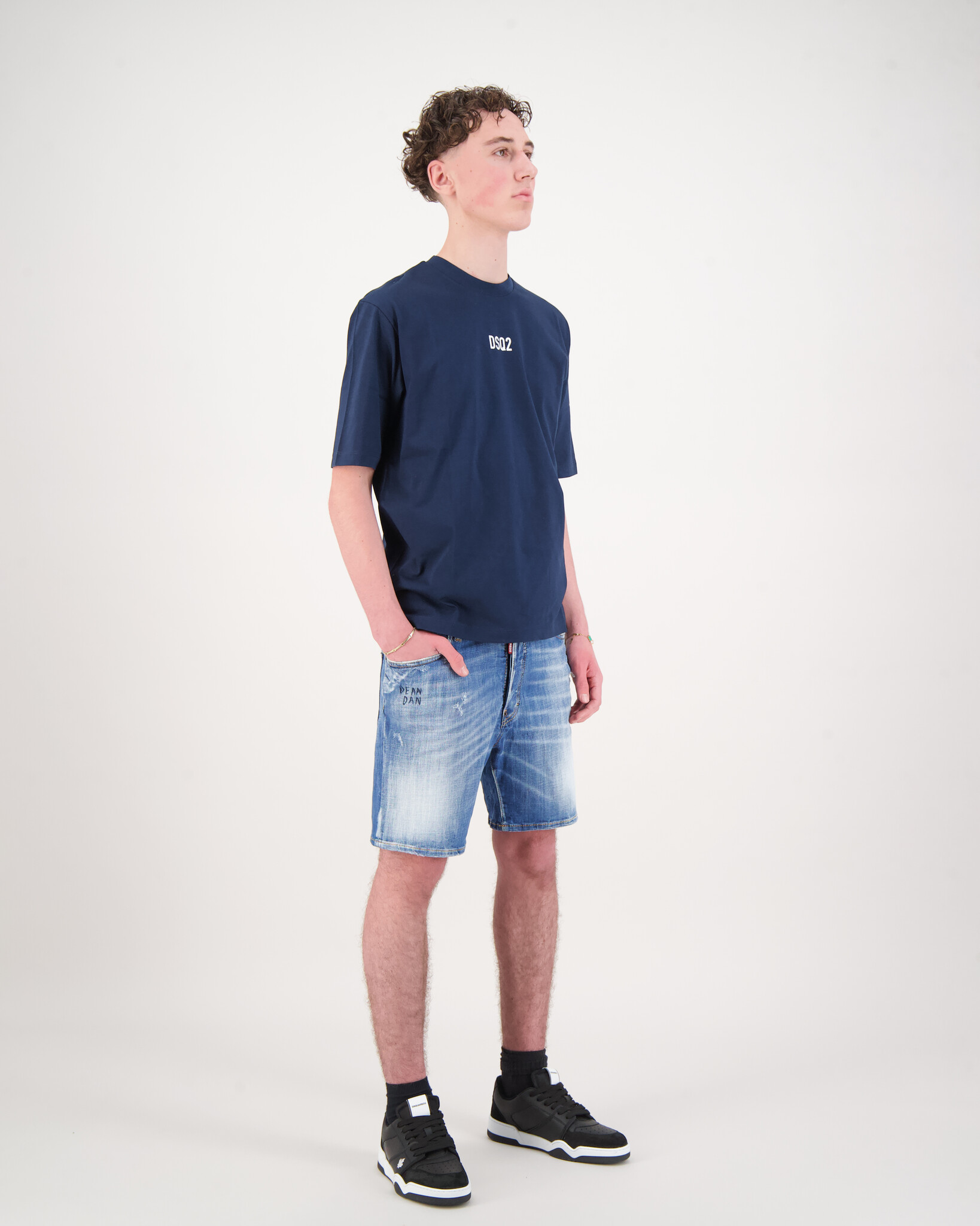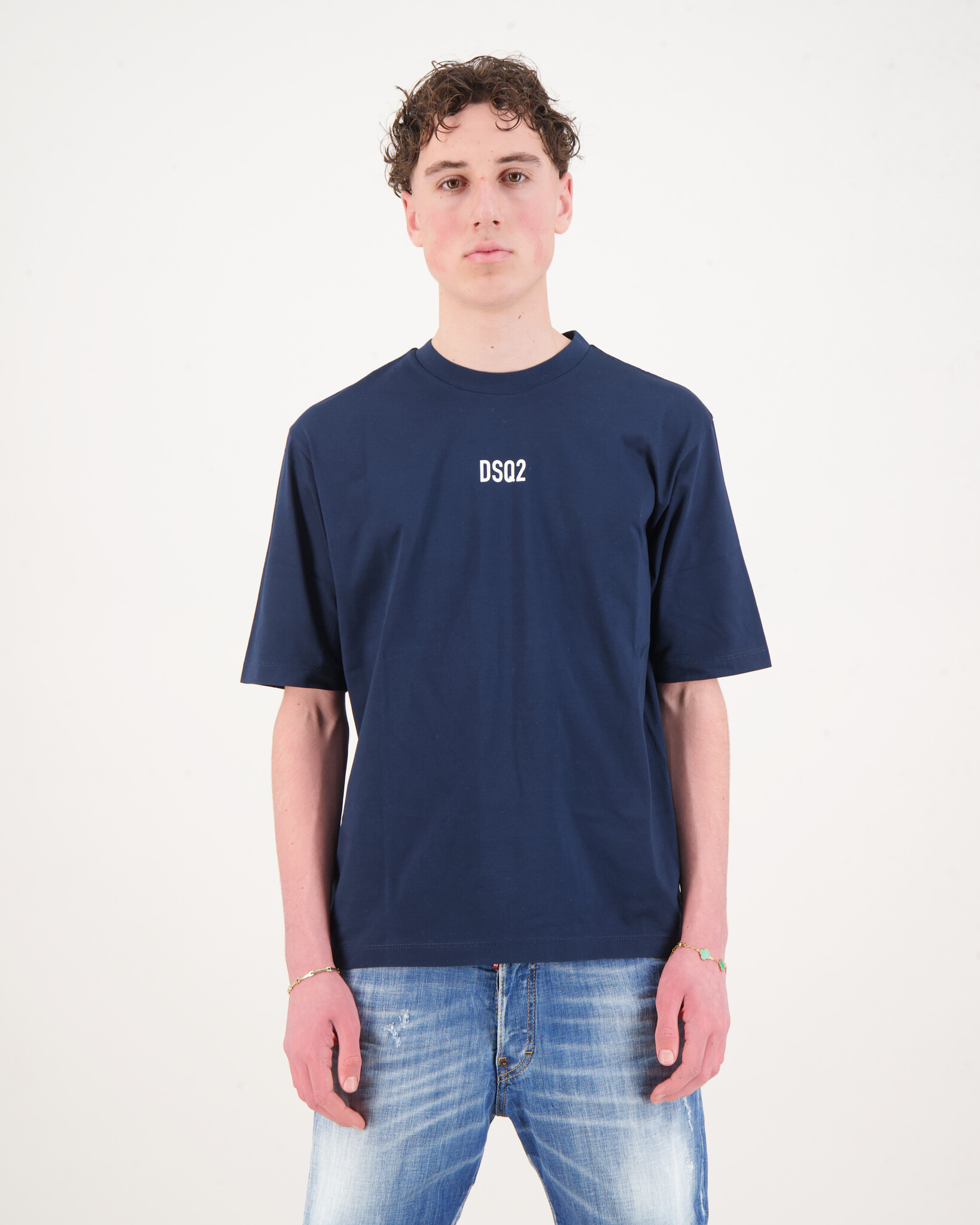 Blauwe 'DSQ2 Mid Logo T-Shirt ' van het merk Dsquared2. Het t-shirt heeft een ronde hals, korte mouwen en heeft een print op de voorkant gedrukt.