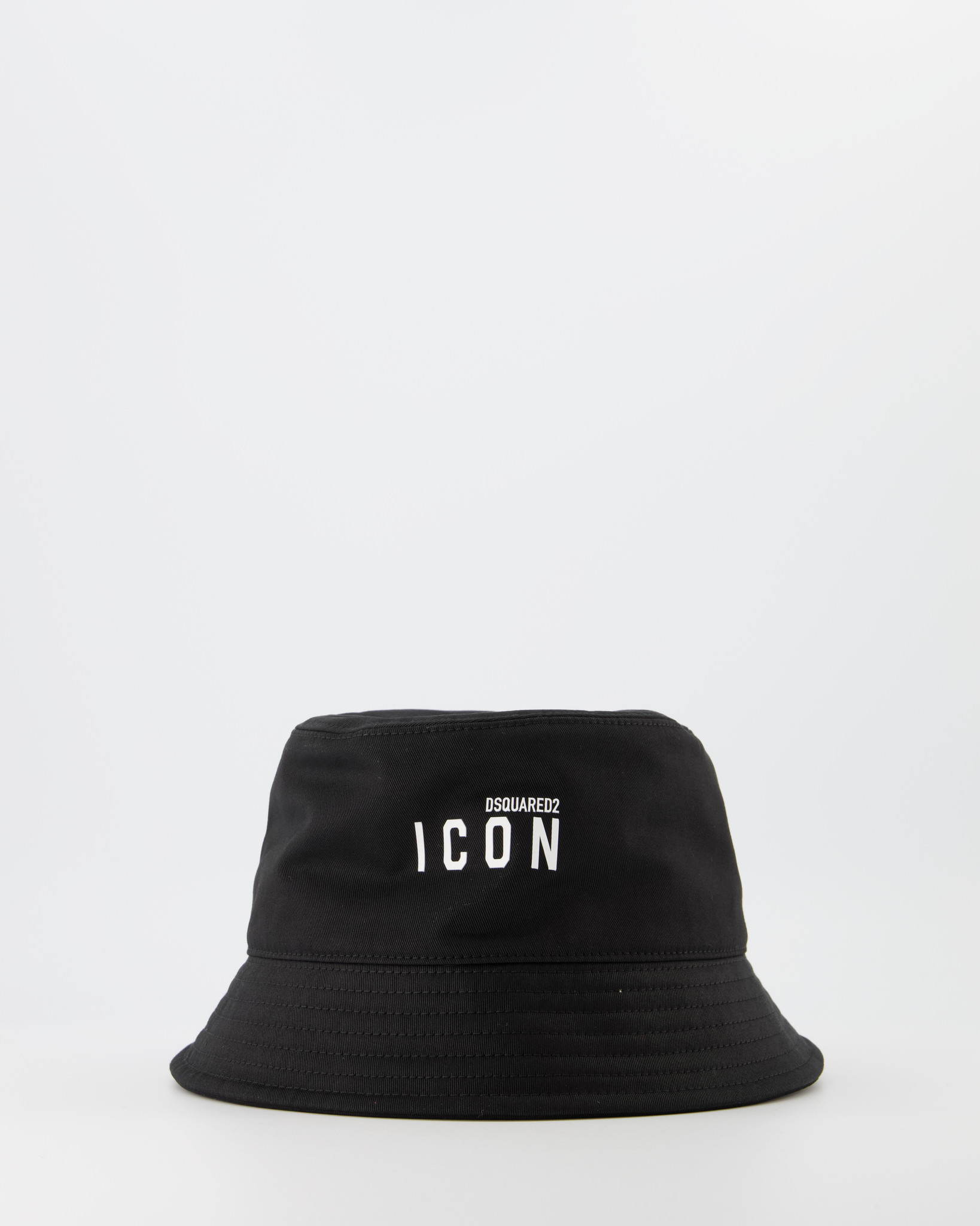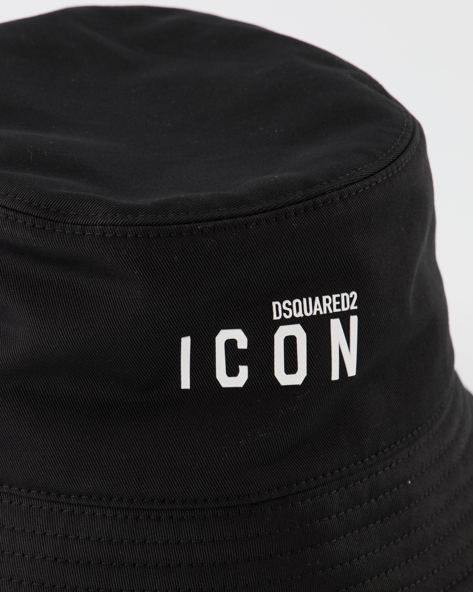 Zwarte Dsquared2 Bucker hat met icon logo in het wit.