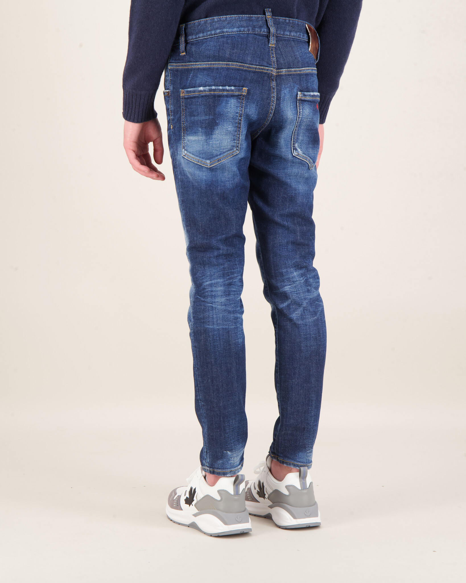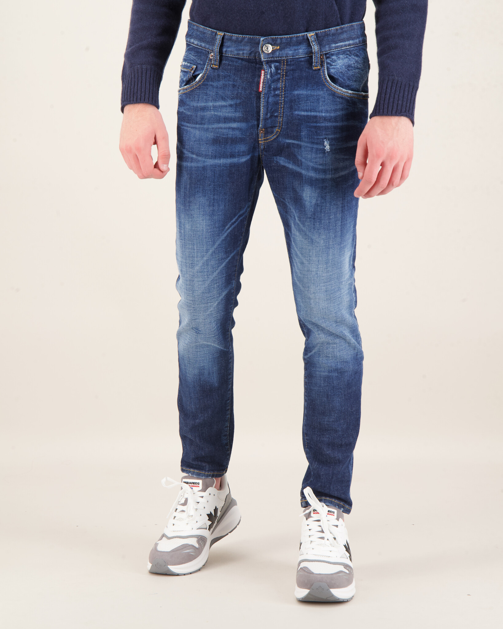 Blauw Skater Pants 5 Pockets Jean van het merk Dsquared2. De slanke pasvorm van deze Skater-jeans is de perfecte passe-partout voor het creëren van zoveel outfits. De slijtvaste versie wordt aanbevolen voor looks waarbij unieke details welkom zijn. Laat je creativiteit de vrije loop. En heeft de bekende rode label bij de gulp.