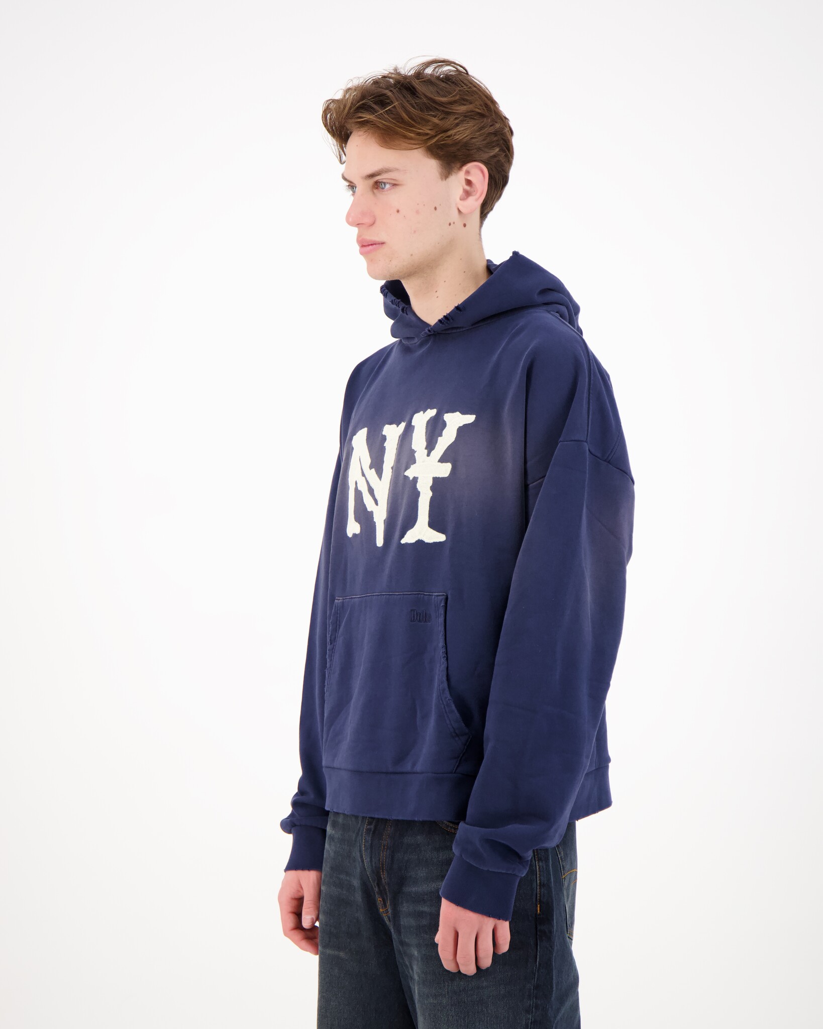 Marine NY Embroidered Hoodie van het merk Duke + Dexter. Gemaakt van 420 g/m2 waardoor het echt een stevige hoodie is. Deze Hoodie heeft een print voor met NY.