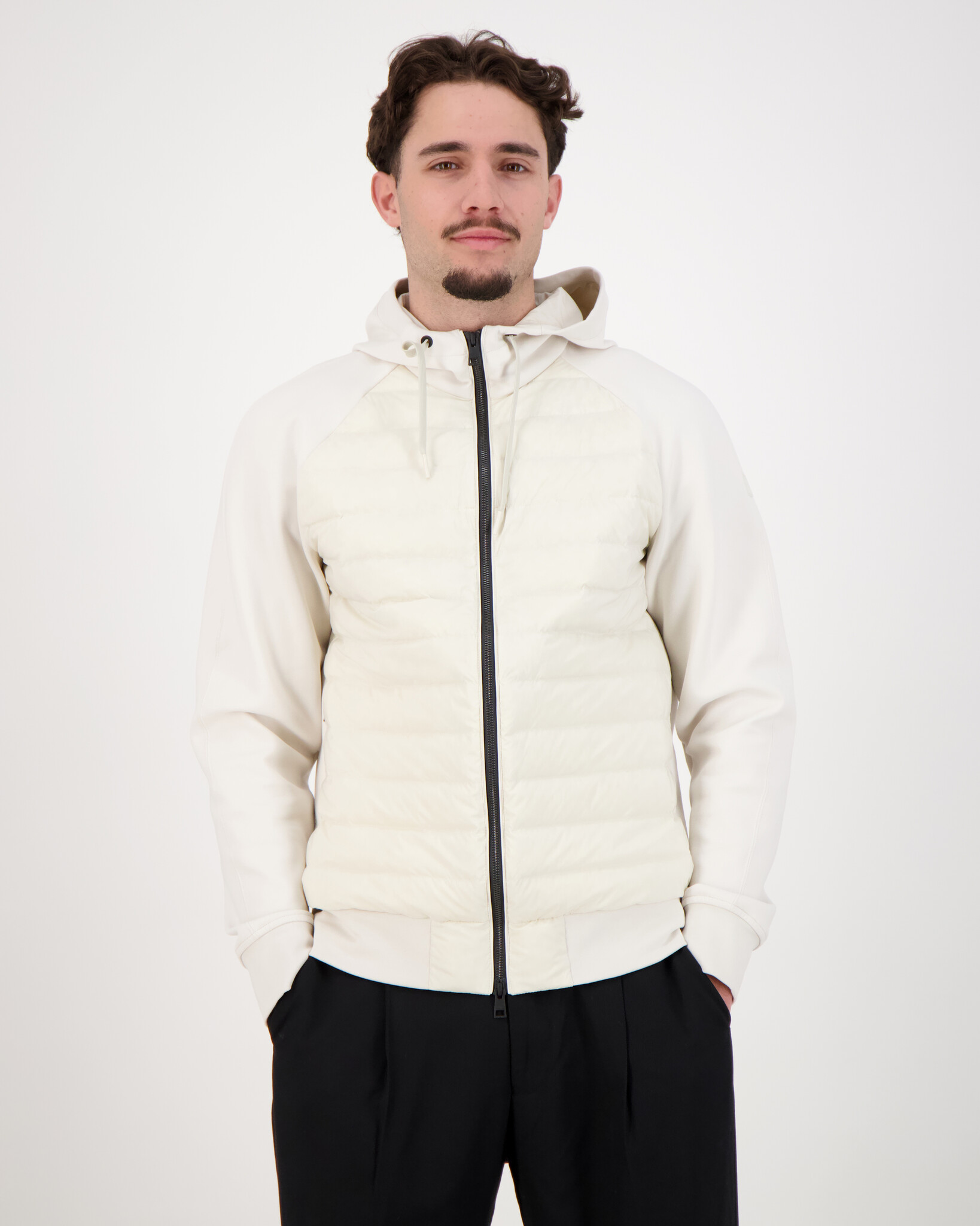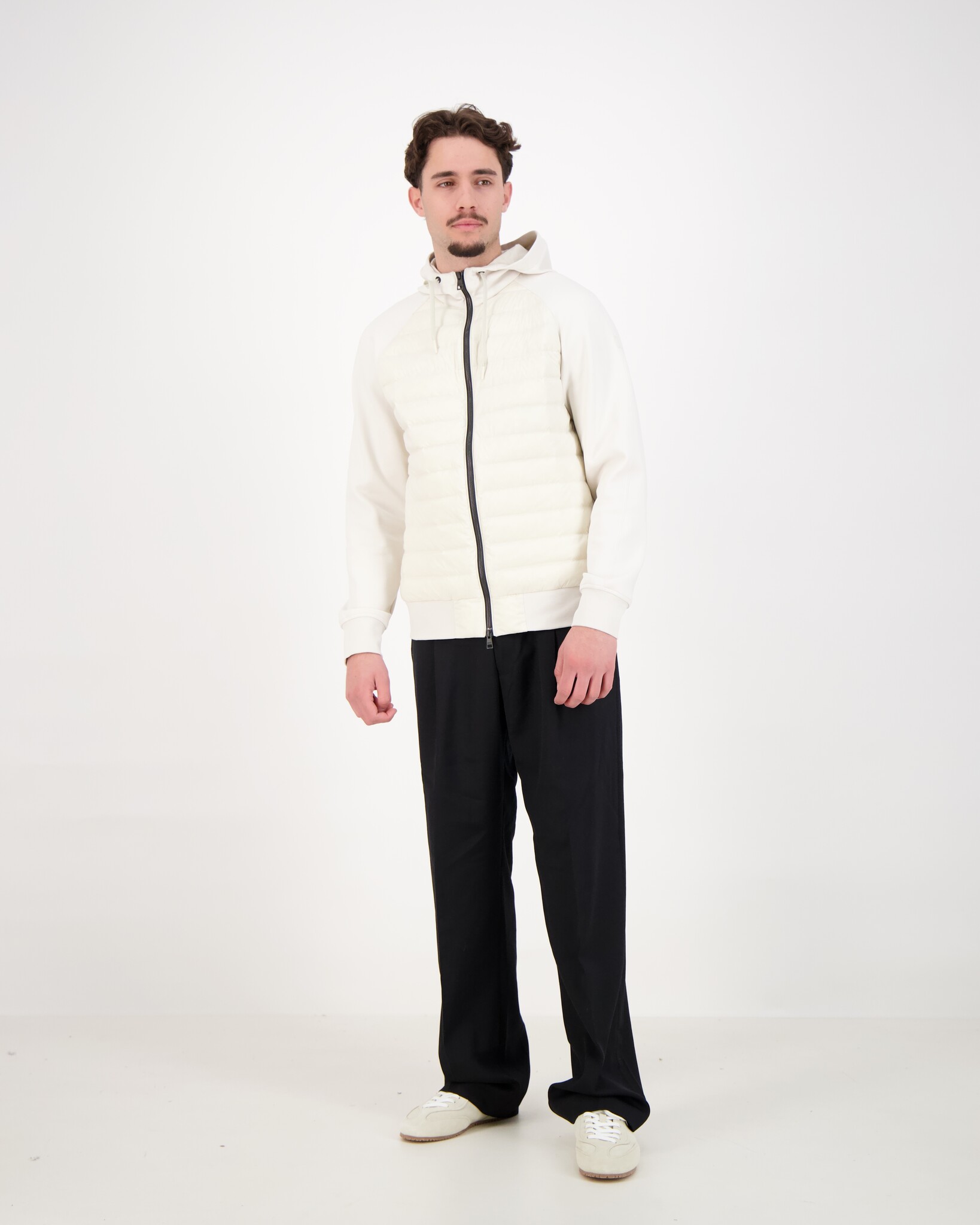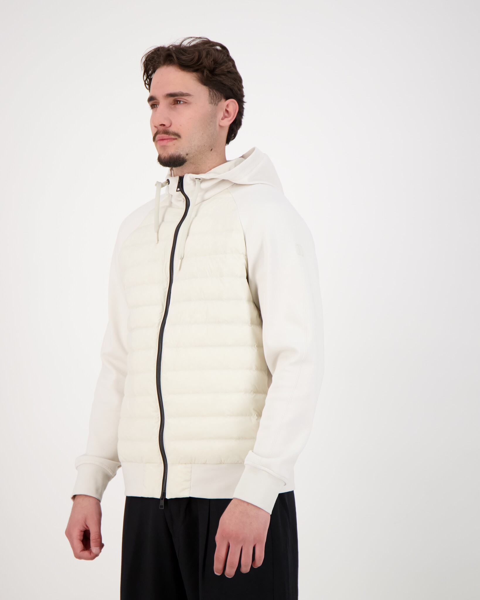 Thiene Mirto Hybrid Sweatshirt in de kleur offwhite combineert sportieve functionaliteit met een moderne, stijlvolle uitstraling. Deze jas is ontworpen met een hybride constructie waarbij verschillende materialen worden gecombineerd voor optimaal comfort, bewegingsvrijheid en warmte. De lichtgewicht vulling aan de voorzijde biedt extra isolatie, terwijl de flexibele panelen zorgen voor een comfortabele pasvorm. Dankzij het minimalistische design en de strakke afwerking is deze jas perfect voor zowel sportieve activiteiten als casual outfits.