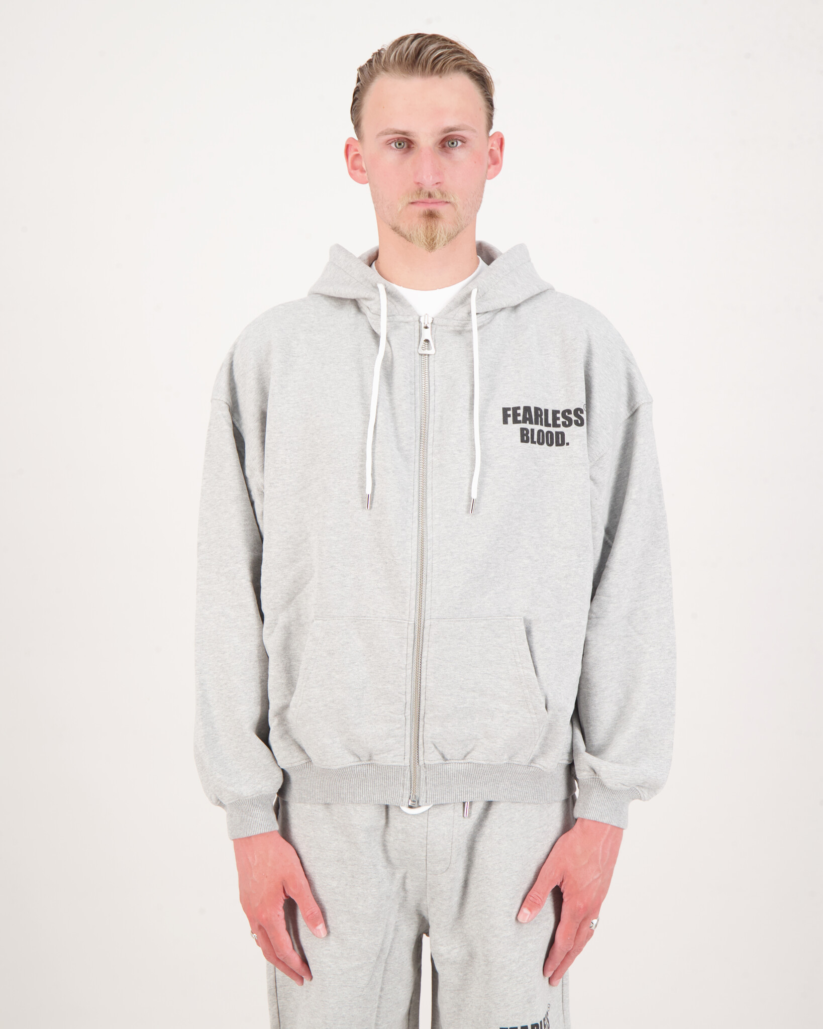 Grijze FB - 02 Vest van het merk Fearless Blood. De moeiteloze stijl van onze oversizedsweaters, gemaakt van 100% katoen. Met een vleugje vintage charme bieden deze veelzijdige sweaters comfort en tijdloze aantrekkingskracht. Verhoog je garderobe met Fearless Blood's hoogwaardige, vintage-geïnspireerde truien.