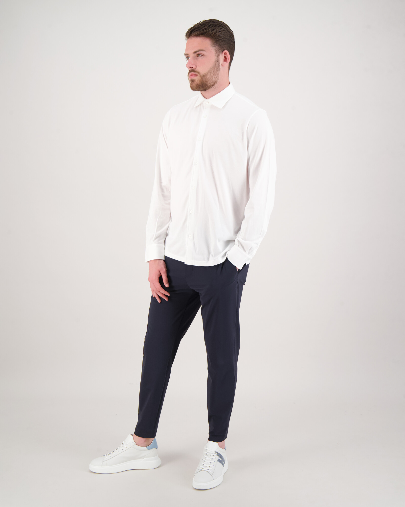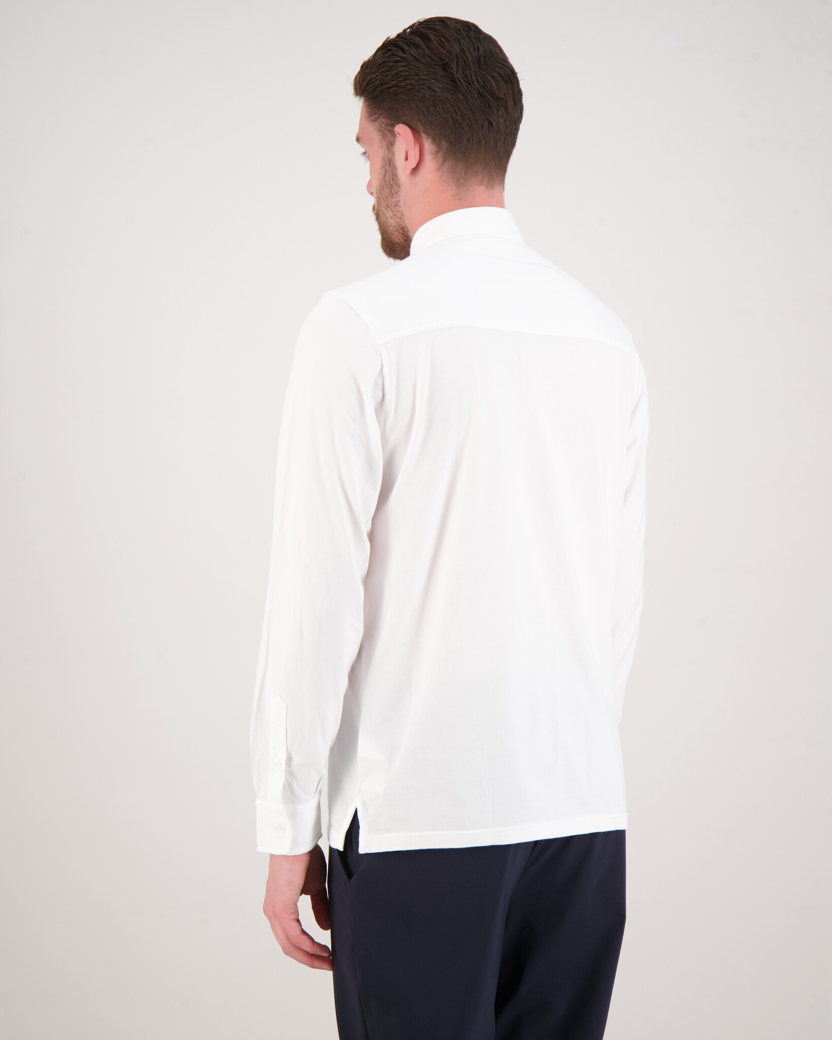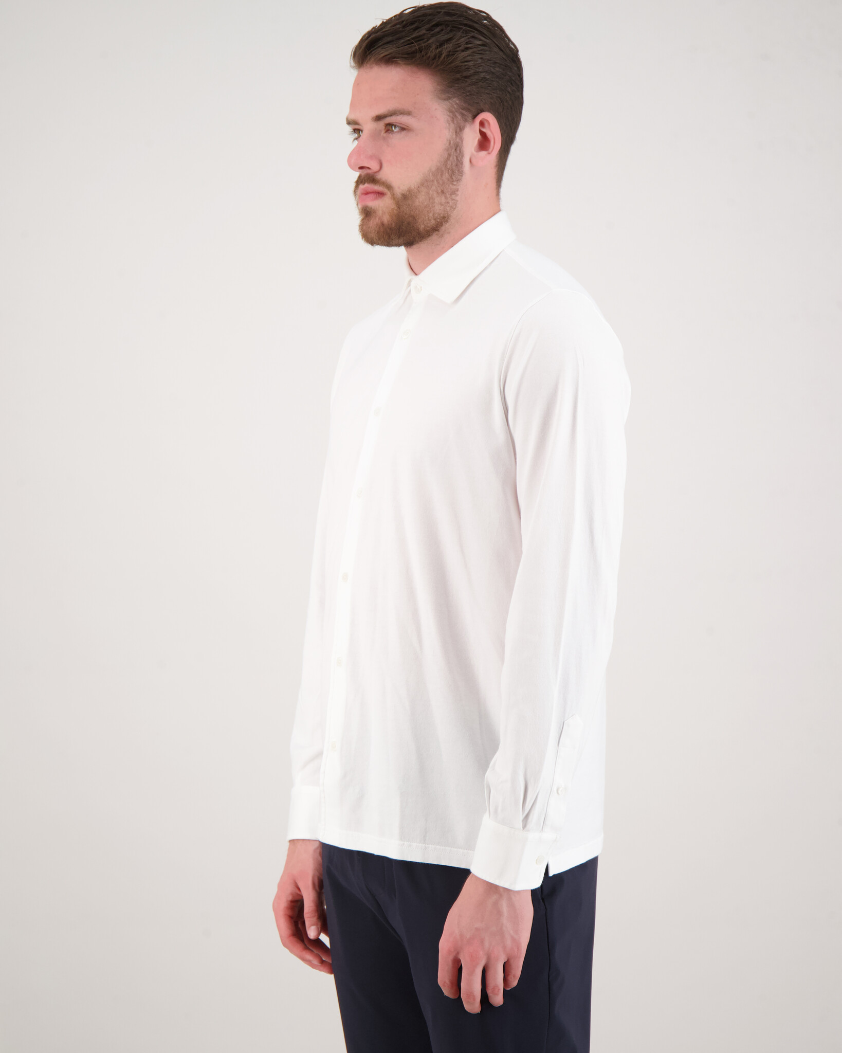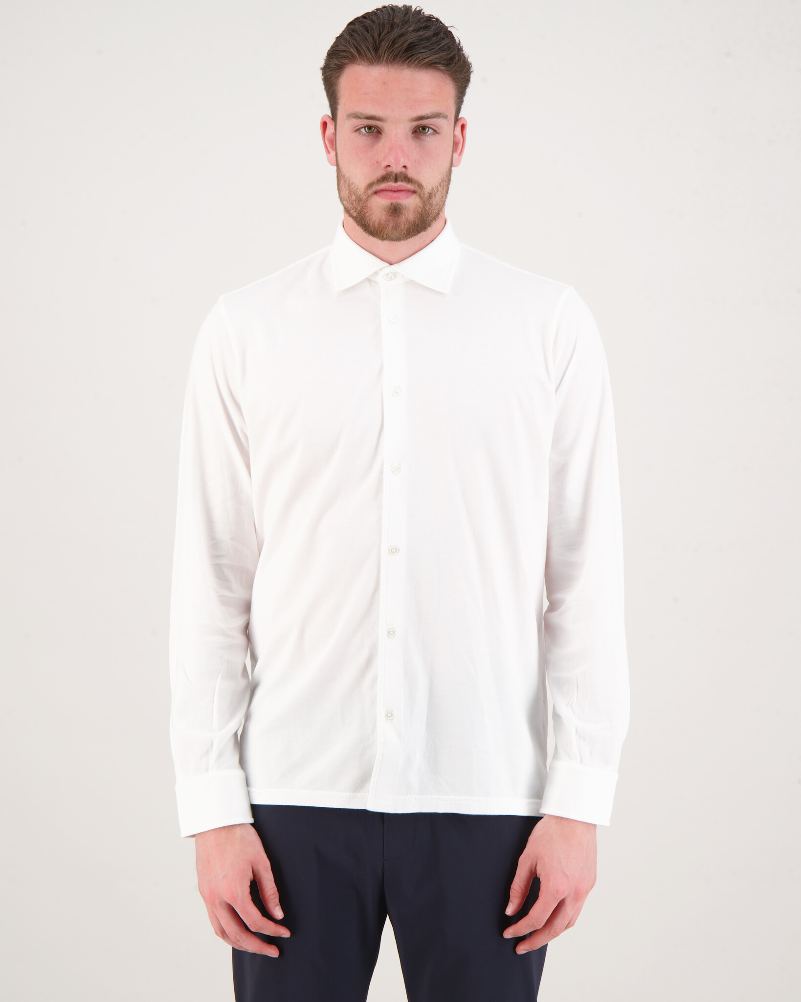Het Witte Knitted Long Sleeve overhemd van het merk Fedeli. Heeft Lange mouwen en Witte knoopjes.