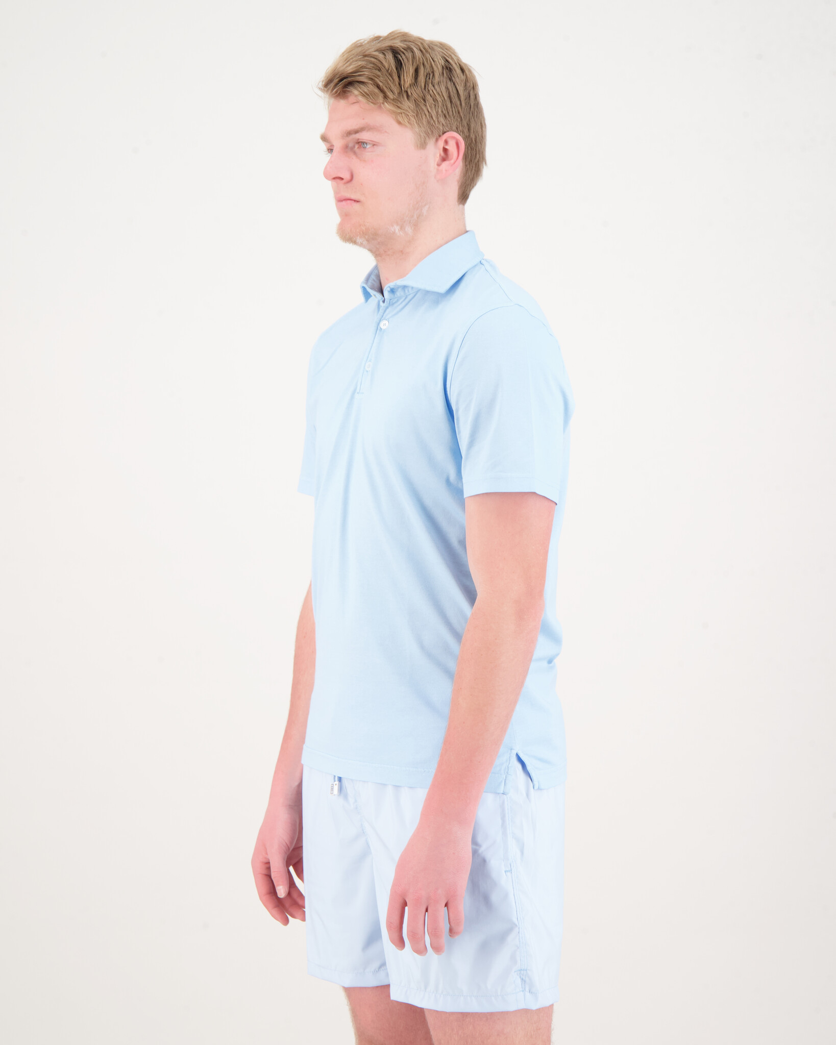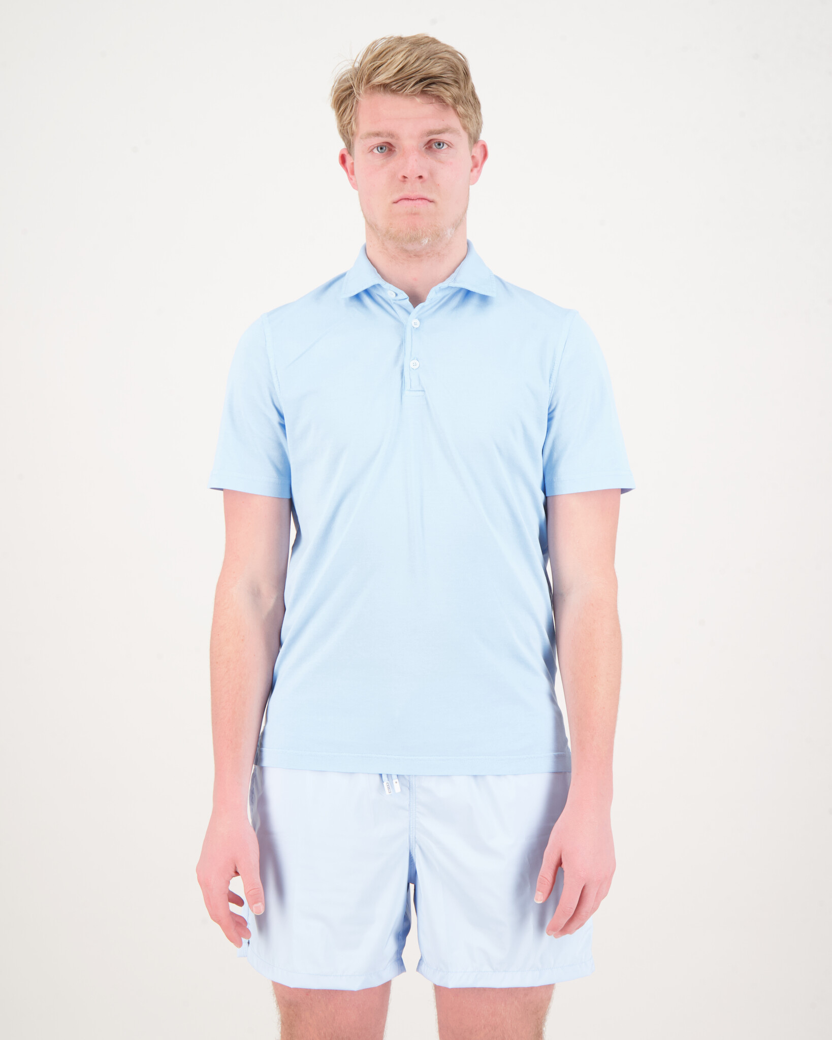Blauwe Polo Shirt Knitted van het merk Fedeli. De polo heeft korte mouwen en 3 knoopjes.