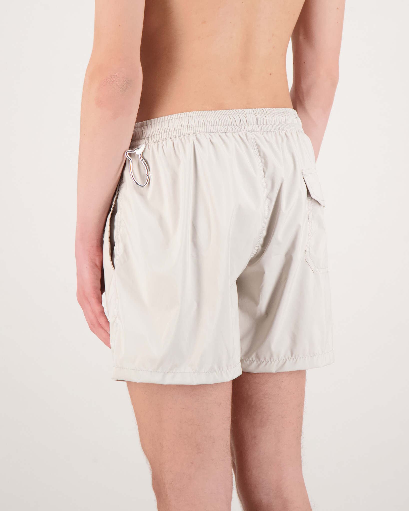 Licht Grijze Trousers Woven Swim Short van het merk Fedeli. De zwembroek heeft een aantrekkoord, twee steekzakken en een achterzak met klittenband.