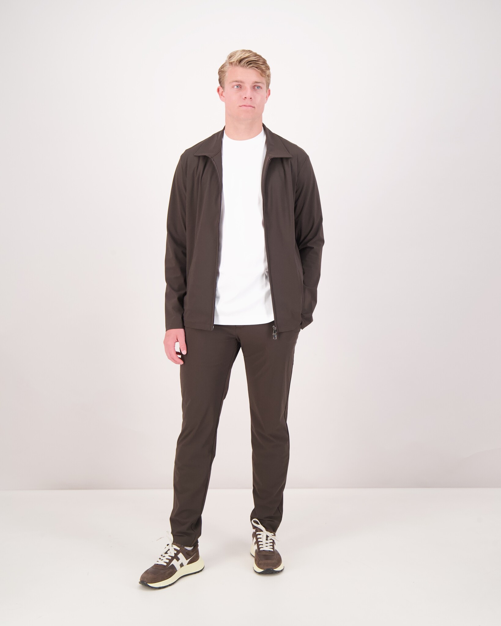 Bruine Dressed jacket van het merk Ferilli. Het jasje heeft een nette uitstraling en sluit door middel van een rits. De jas is ook voorzien van twee steekzakken.