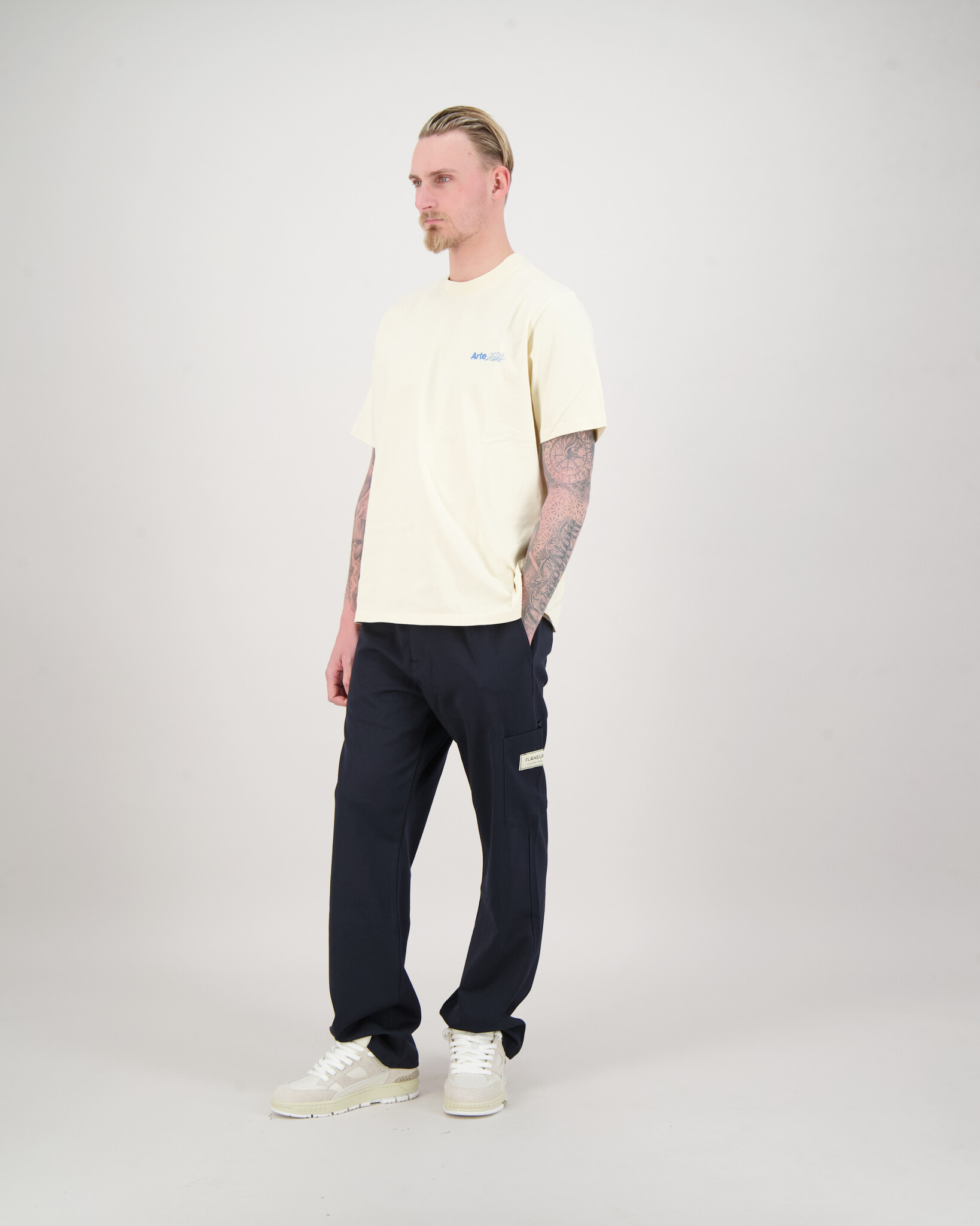 De Marine Atelier Tailored Trousers is van het merk Flaneur Homme. Op de linkerkant bevindt zich een grote zak met daarop een wit plakaatje 'FLANEUR'.