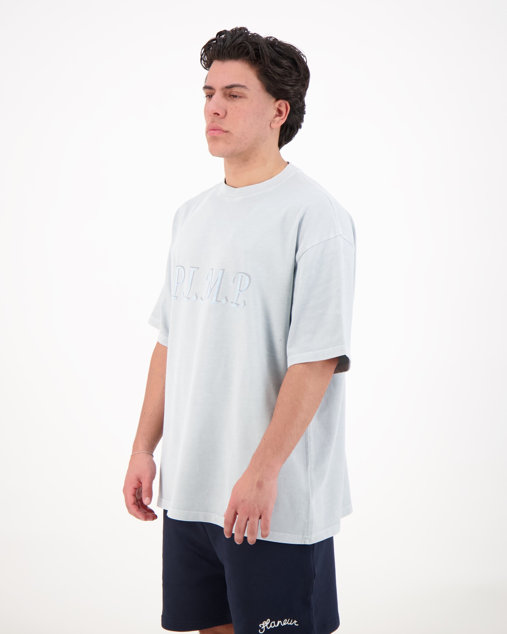 Sprayed Glacier kleure P.I.M.P. T-Shirtje van het merk Flaneur. Gemaakt van 100 % premium katoen voor comfort en draagbaarheid — typisch voor Flâneur T-shirts. Grafische print of spray-effect artwork op de voorkant (“P.I.M.P.” thema), wat het onderscheidt van de eenvoudige signature-basics. De prints zijn typisch artistiek, streetwear-geïnspireerd en bedoeld om een statement te maken binnen een outfit.