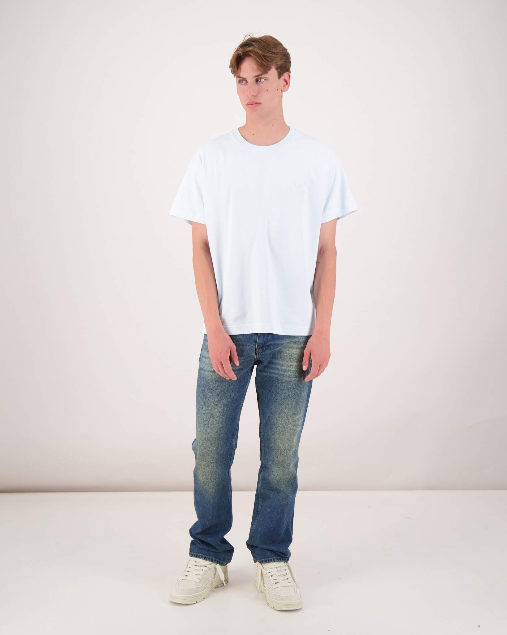 Lichtblauwe Signature T-Shirt van het merk Flaneur. Is een tijdloze essential die elegantie en comfort moeiteloos combineert. Gemaakt van 100 % hoogwaardig katoen volgens GOTS‑certificaat, dit shirt belichaamt duurzaamheid en vakmanschap. Subtiel geborduurd ‘Flâneur’ Signature-logo in witte cursieve letters op de linkerborst, voor een verfijnde touch zonder overdreven branding