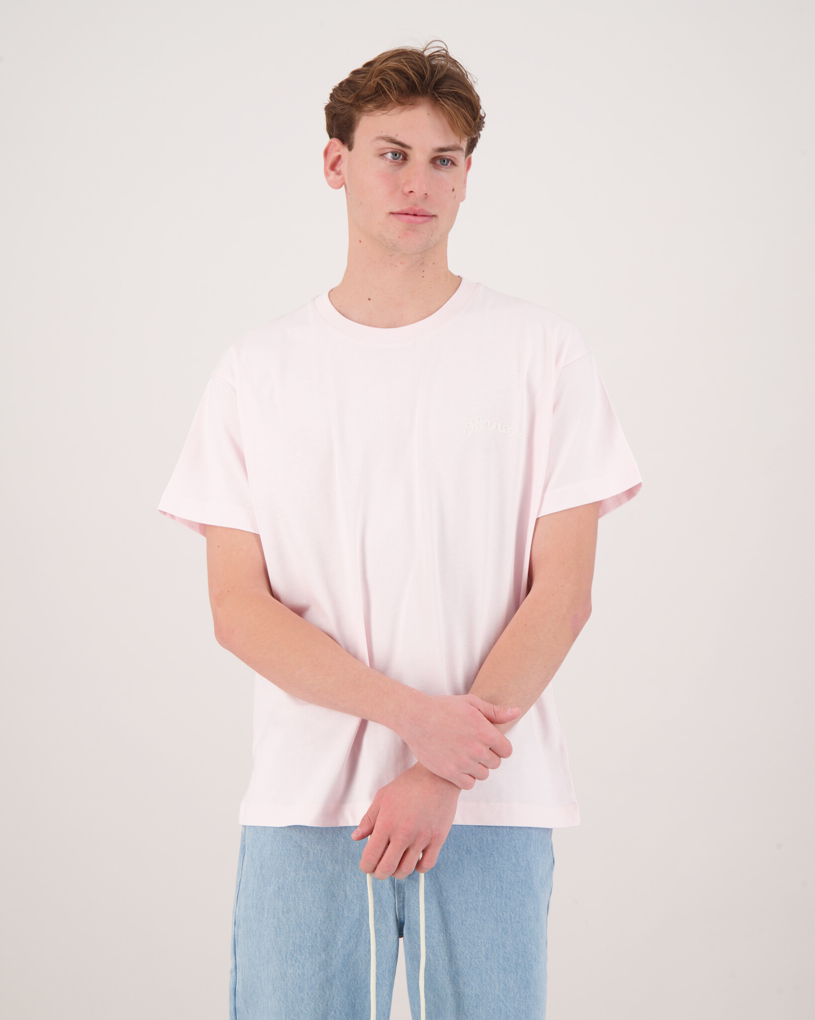 Roze Signature T-Shirt van het merk Flaneur. Dit T-shirt heeft het logo geborduurd op de linkerborst zitten.