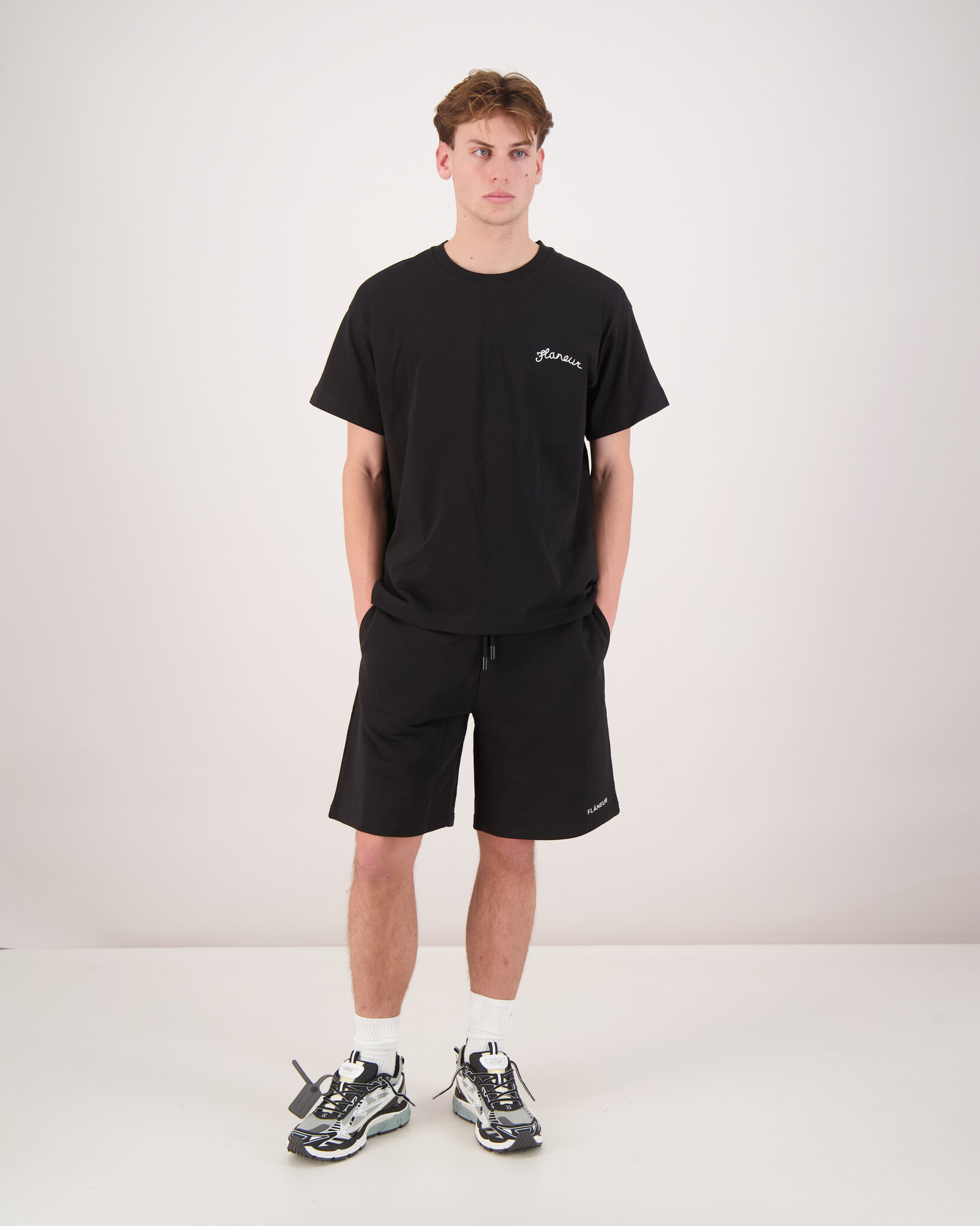 Zwarte Signature T-Shirt van het merk Flaneur. Dit T-shirt heeft het logo geborduurd op de linkerborst zitten.