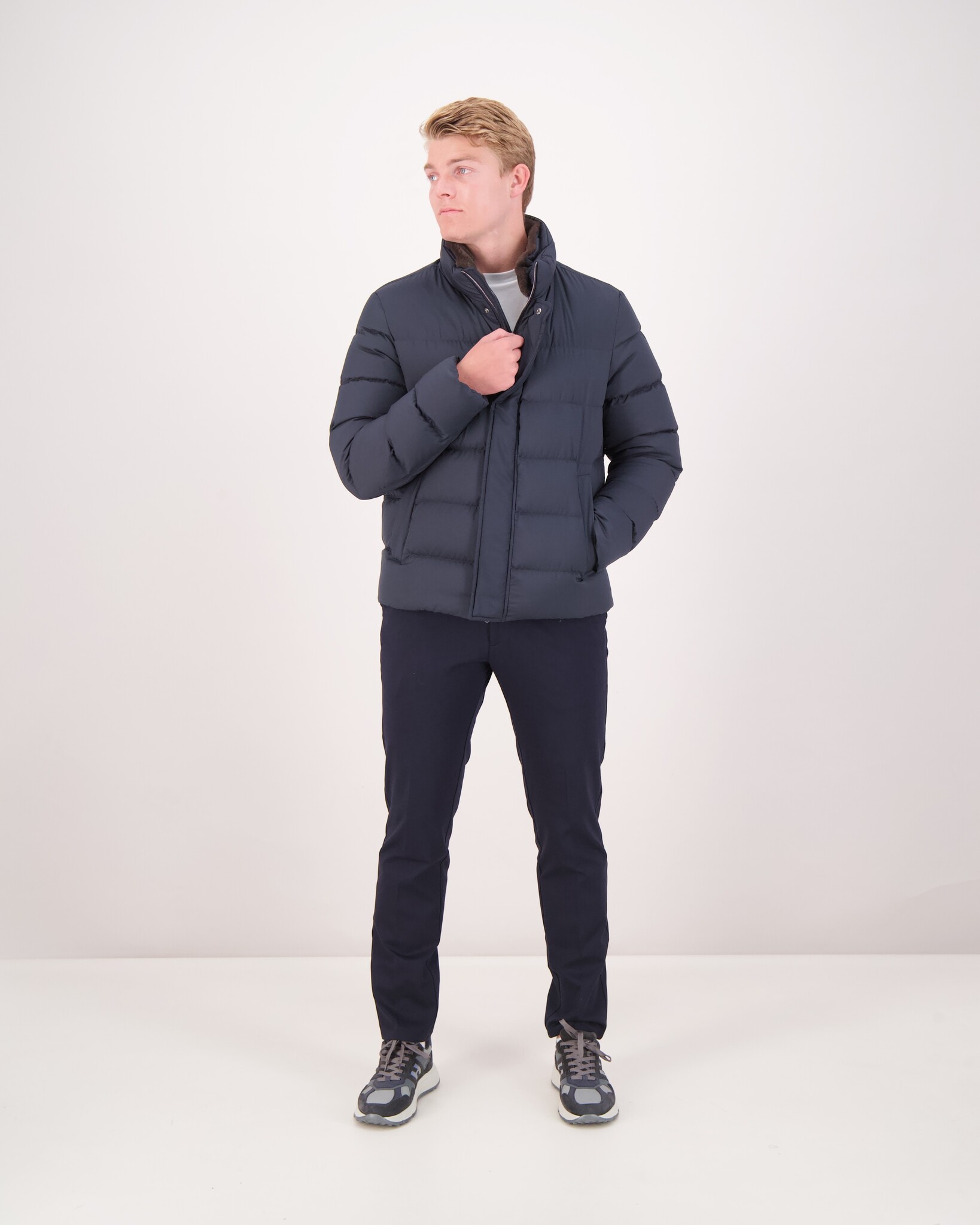 Blauwe Arendelle Con Collo Faux Fur Bomber Jacket van het merk Herno. De Jacket is een verfijnde herenjas met tijdloos design en hoogwaardige afwerking. De jas is vervaardigd uit polyester dat licht, zacht en fluweelachtig aanvoelt. De kraagconstructie is voorzien van een hoge kraag wat een luxueuze uitstraling geeft.