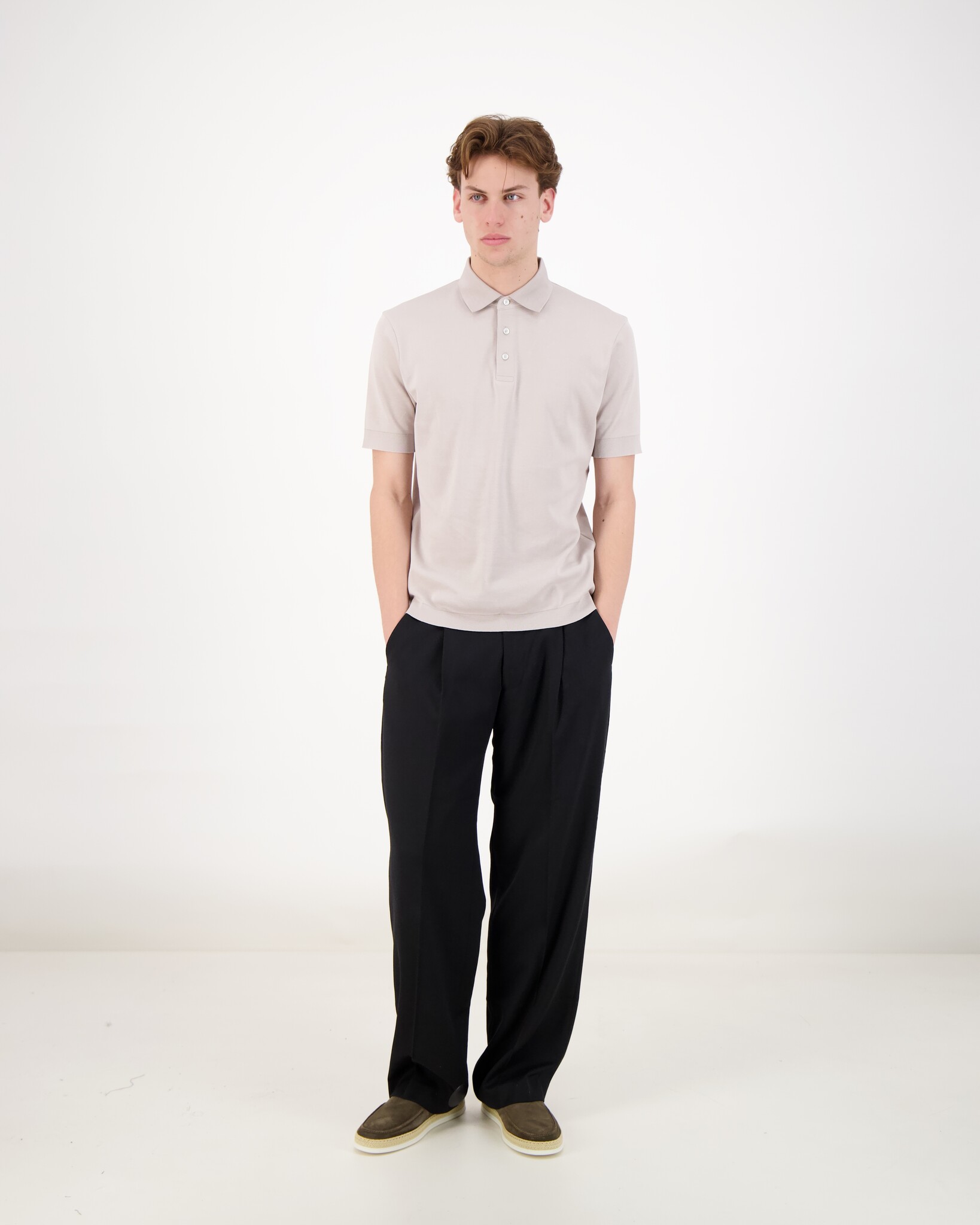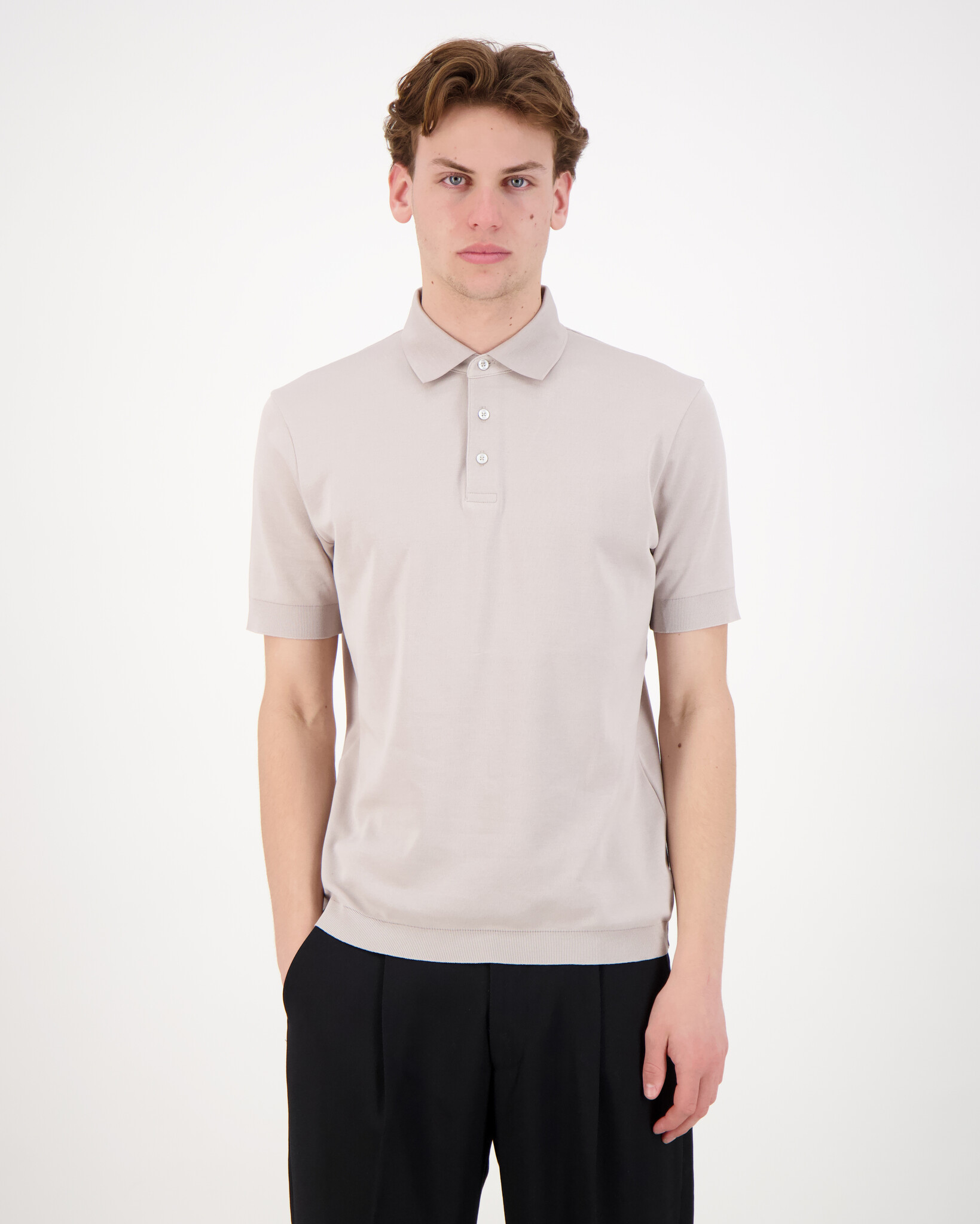 Beige Mens Knitted Polo Shirt van het merk Herno. Klassieke polo-kraag met knopen-sluiting en ribgebreide details aan mouwboorden en onderkant. Gemaakt van 100% katoen wat de polo comfortabel en ademend maakt.