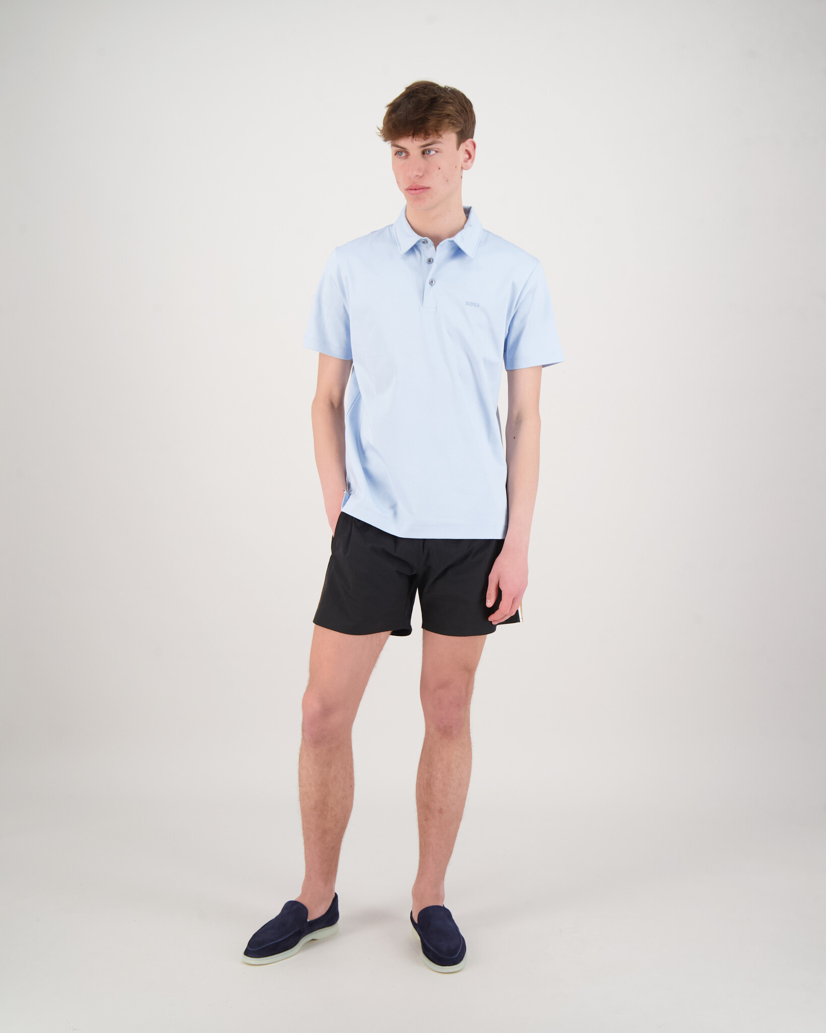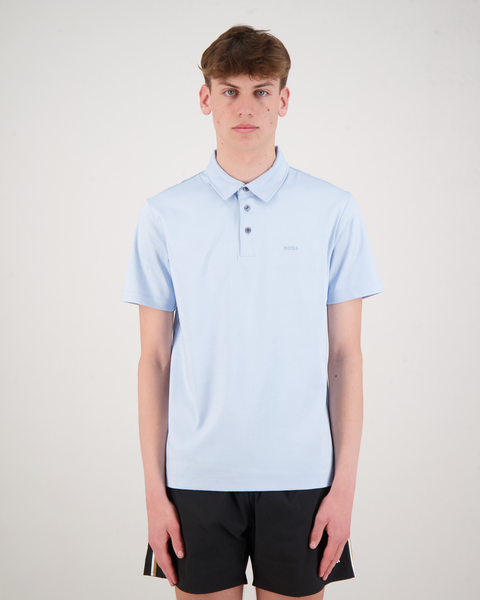 Blauwe Palosh Polo van het merk Hugo Boss. De polo heeft een klassieke kraag, gaat dicht met 3 knoopjes en heeft het Boss gestikt op de linkerborst in de zelfde kleur.