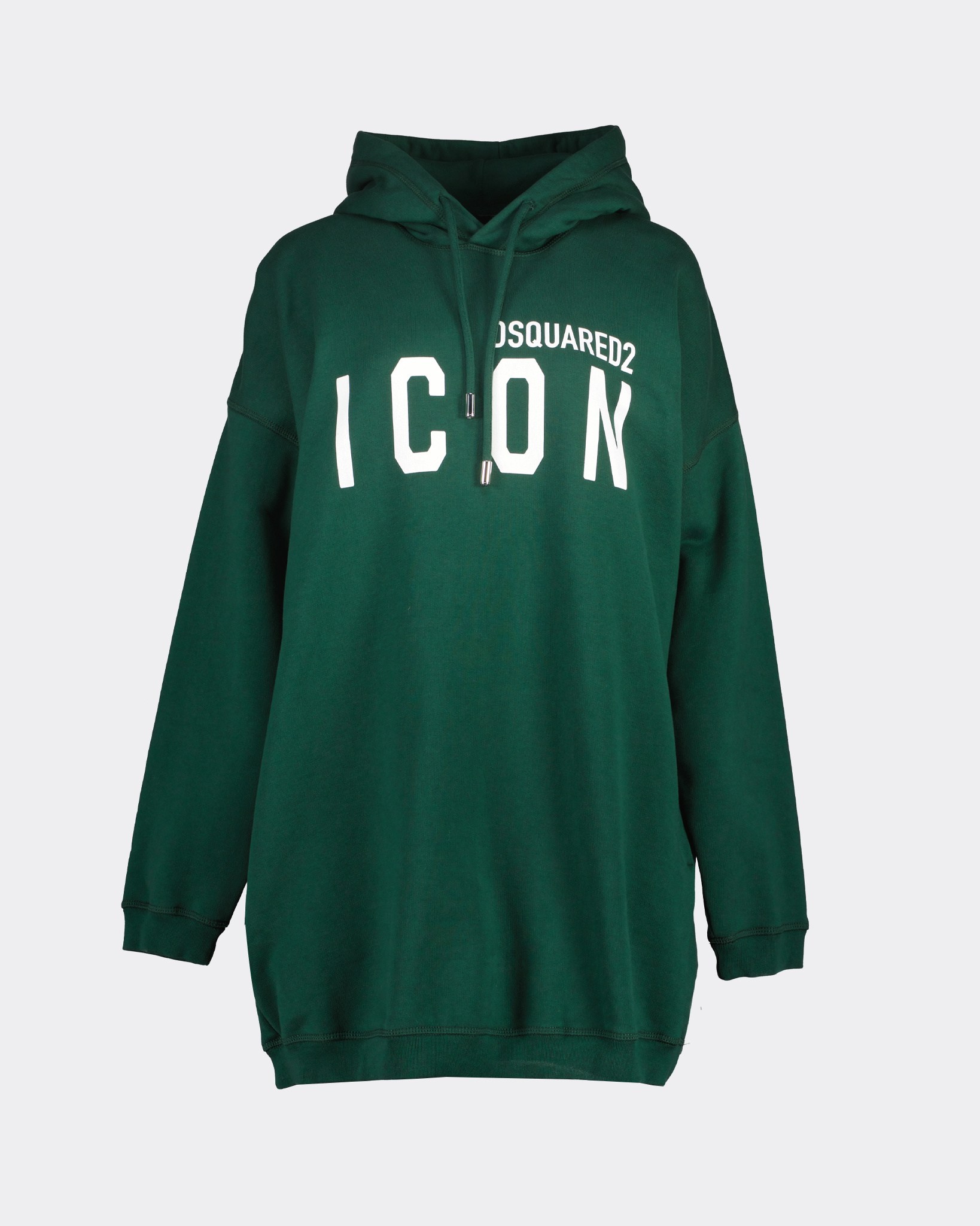 ICON MAXI HOODIE D.Groen van het merk Dsquared2. Deze sweater heeft een ronde hals en heeft de tekst "Dsquared2 Icon" in het wit gedrukt op de borst.