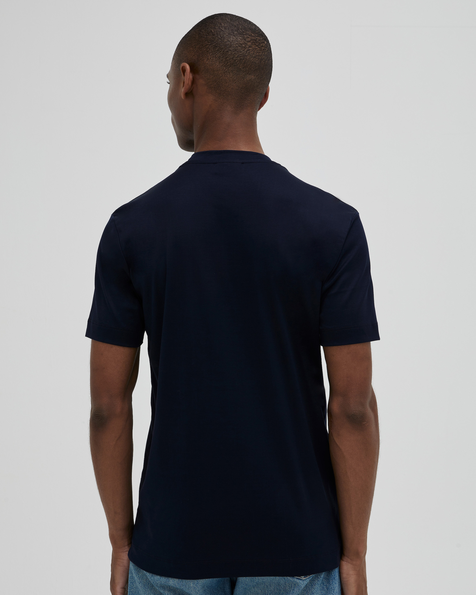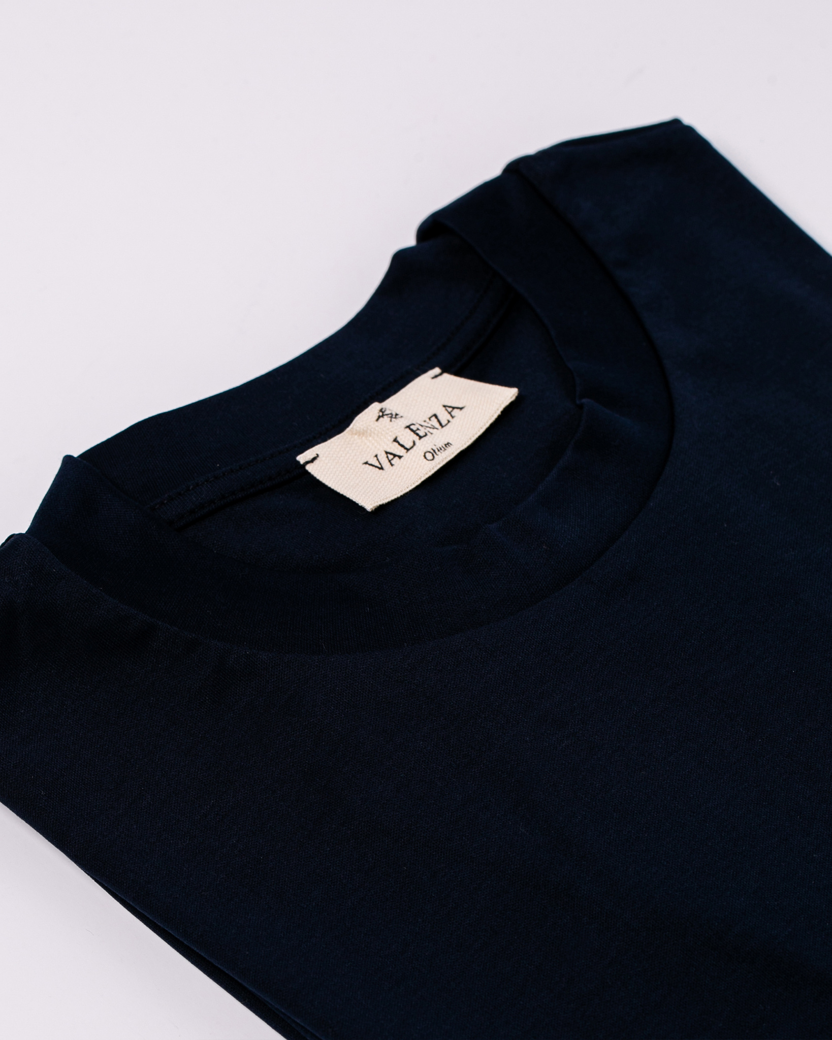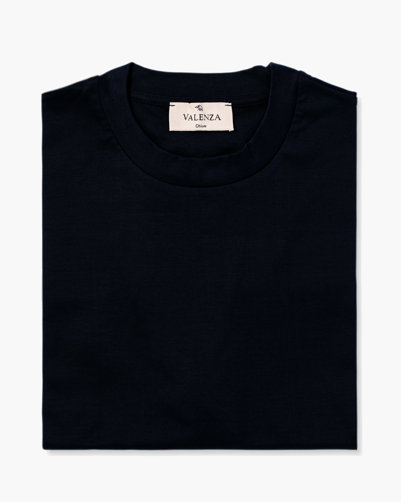 Marine Valenza Interlock Supima T-Shirt van het merk Valenza. Het T-shirt heeft korte mouwen, een ronde hals.