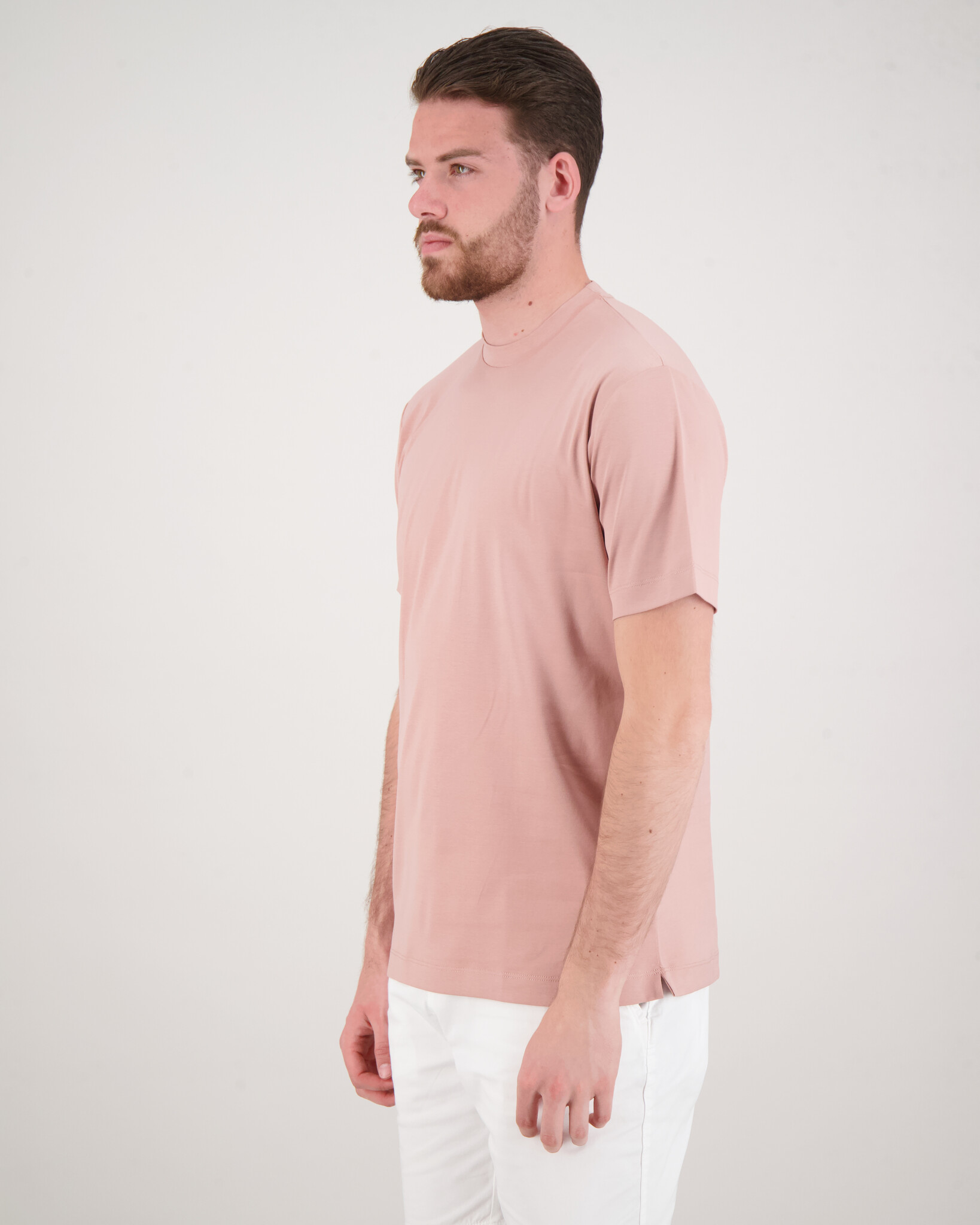 Roze Valenza Interlock Supima T-Shirt van het merk Valenza. Het T-shirt heeft korte mouwen, een ronde hals.