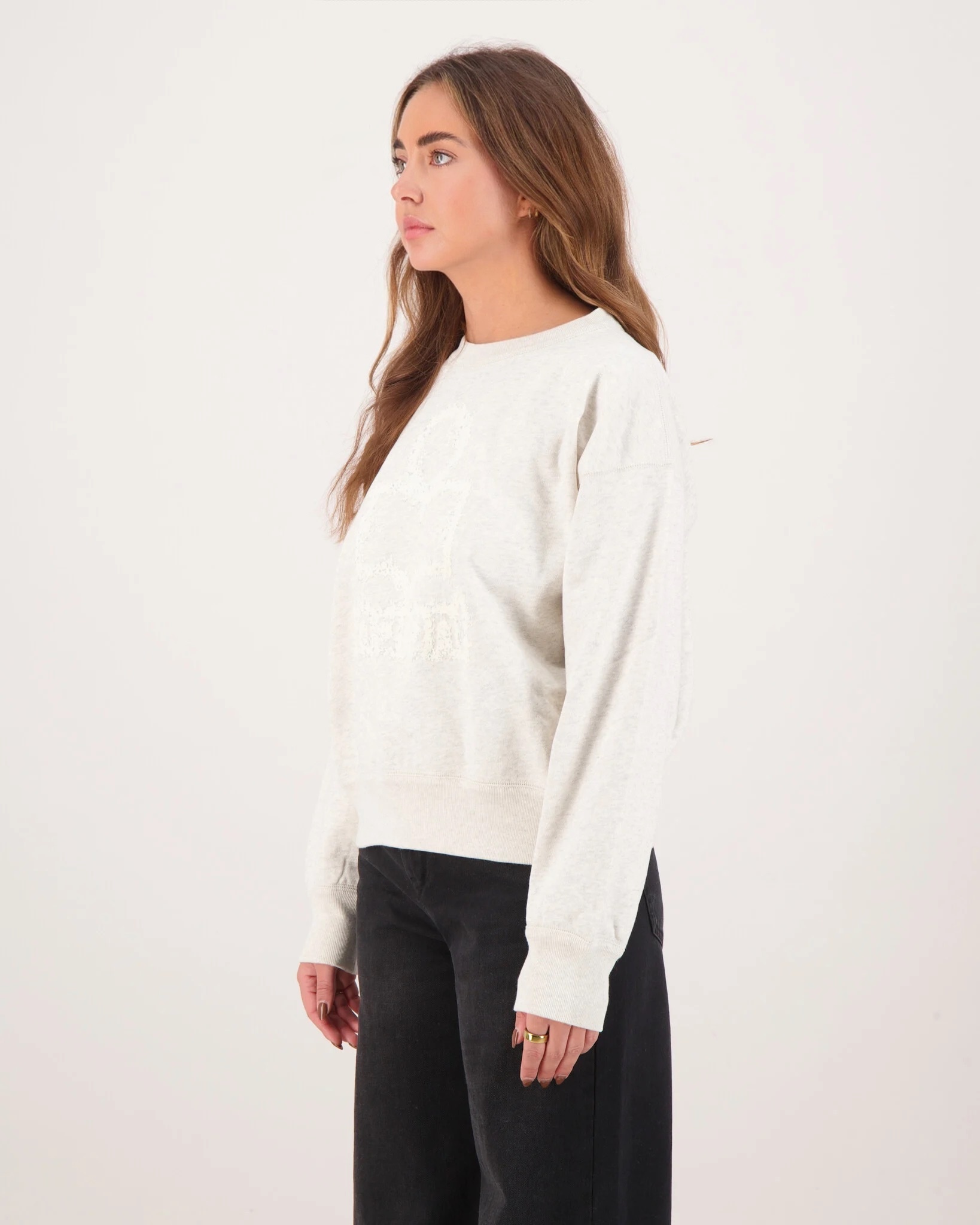Een zachte, eigentijdse sweater van Isabel Marant met een subtiel bouclé logo op de borst. De Mobyli trui in ecru is gemaakt van een comfortabele katoenmix en heeft een relaxte pasvorm met klassieke ronde hals en geribde boorden. Perfect te combineren met jeans of een rok voor een nonchalante, luxe uitstraling.