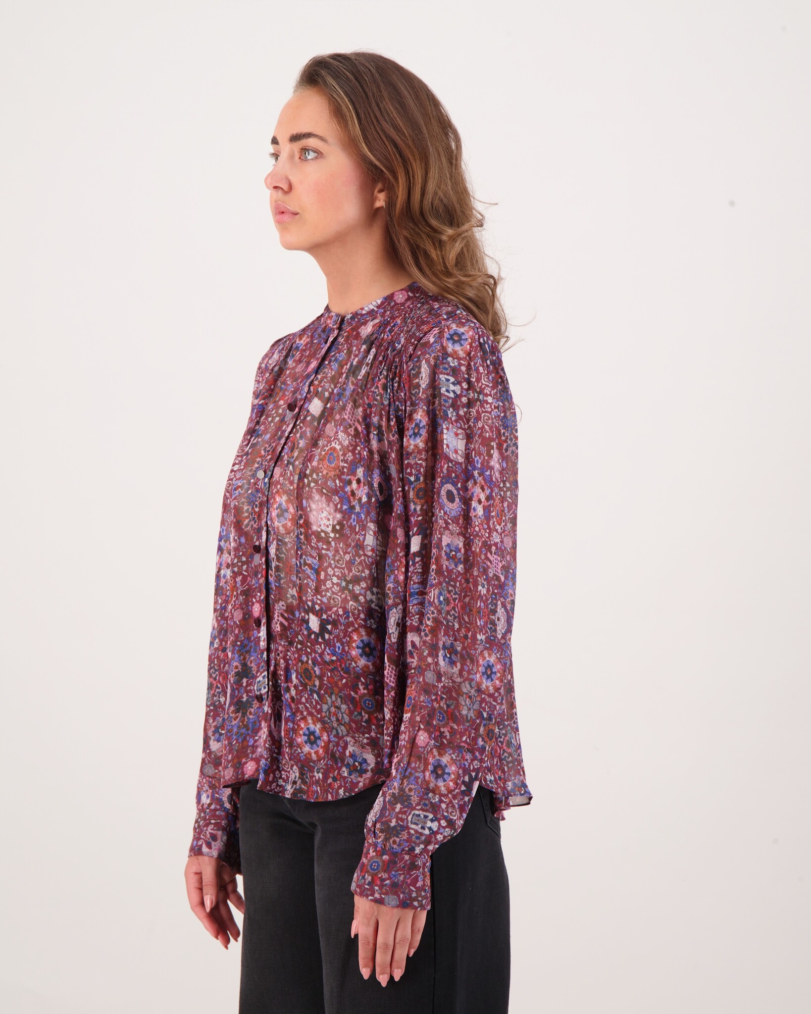 Bordeaux Noeline Blouse van het merk Isabel Marant Dames. De Bordeaux Noeline Blouse is een elegante mix van romantiek en casual chic — ideaal voor wie houdt van een verfijnde garderobe met subtiele statement‑details.