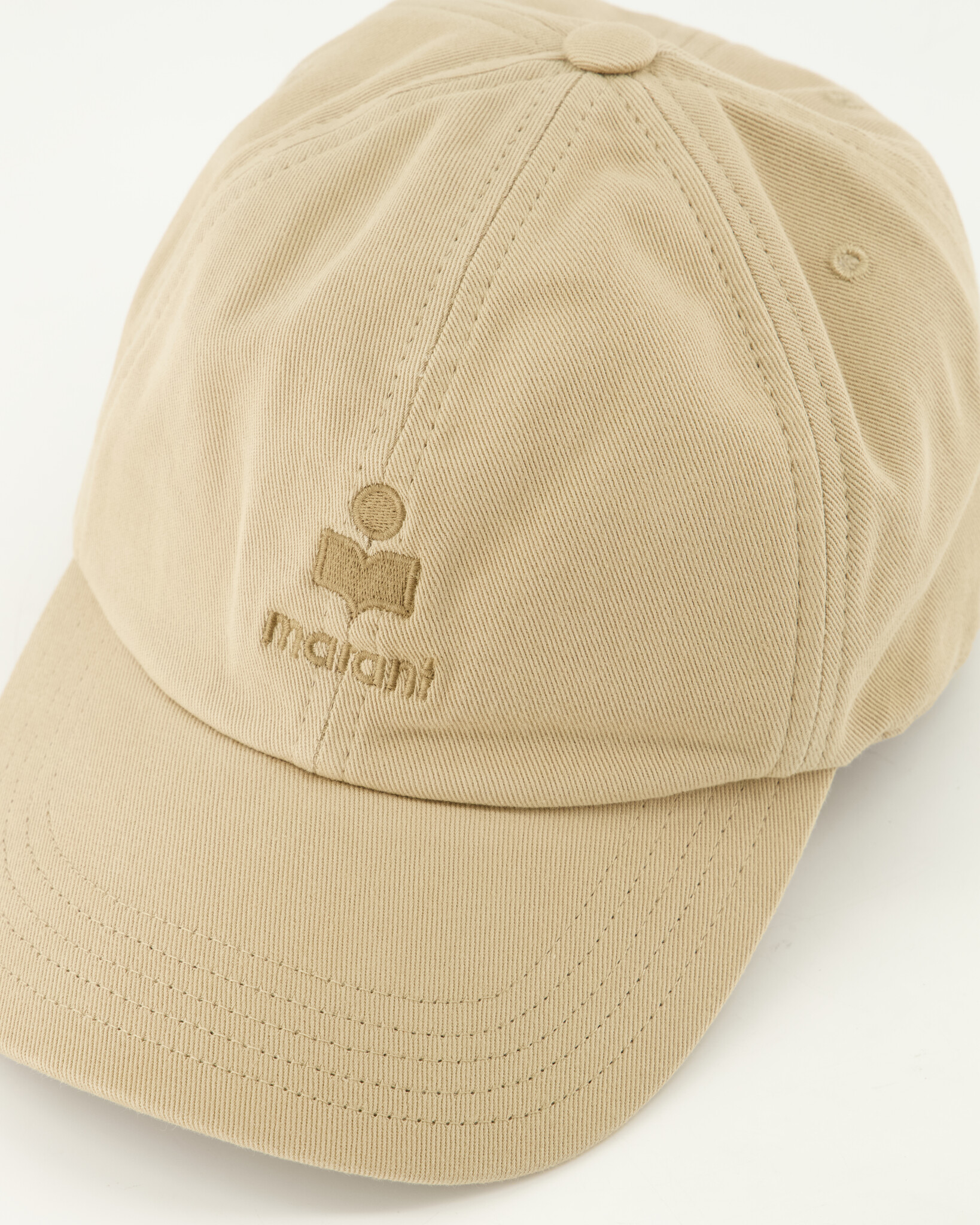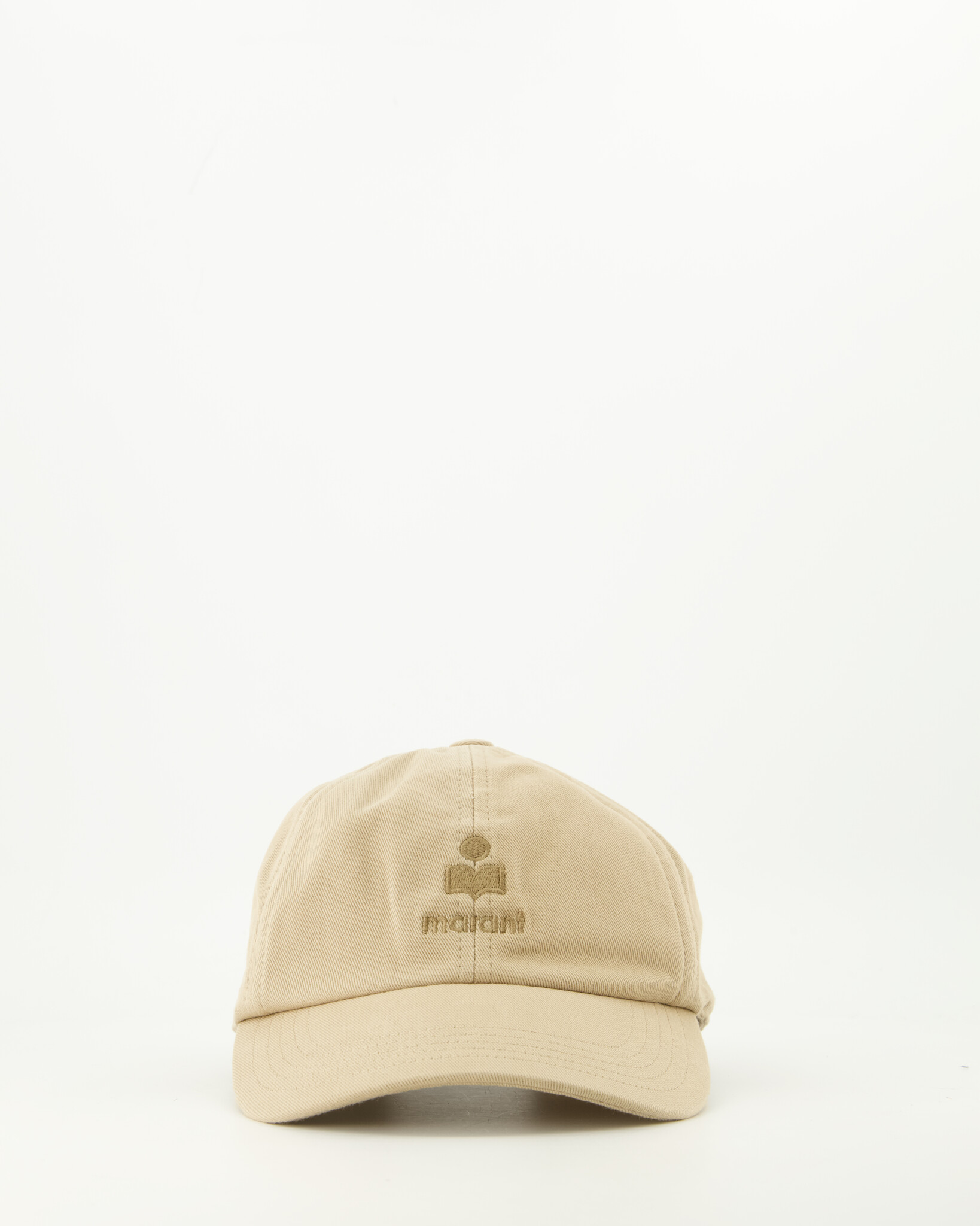Sand Tomas Pet van het merk Isabel Marant. De pet heeft een klassieke vorm met gebogen klep en een borduursel van het merk (“Marant” logo) erop verwerkt. Dat geeft het een chic, minimalistisch detail.