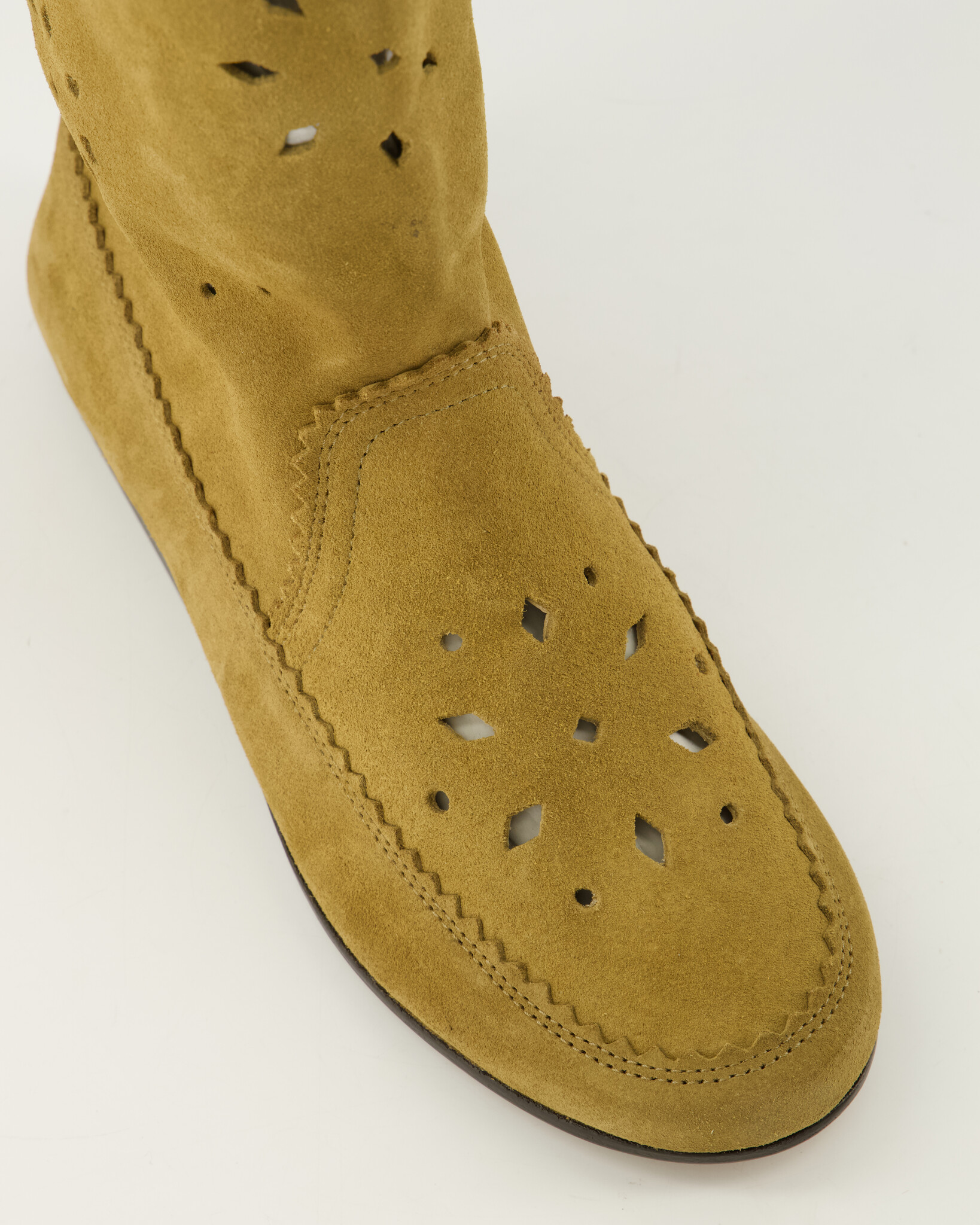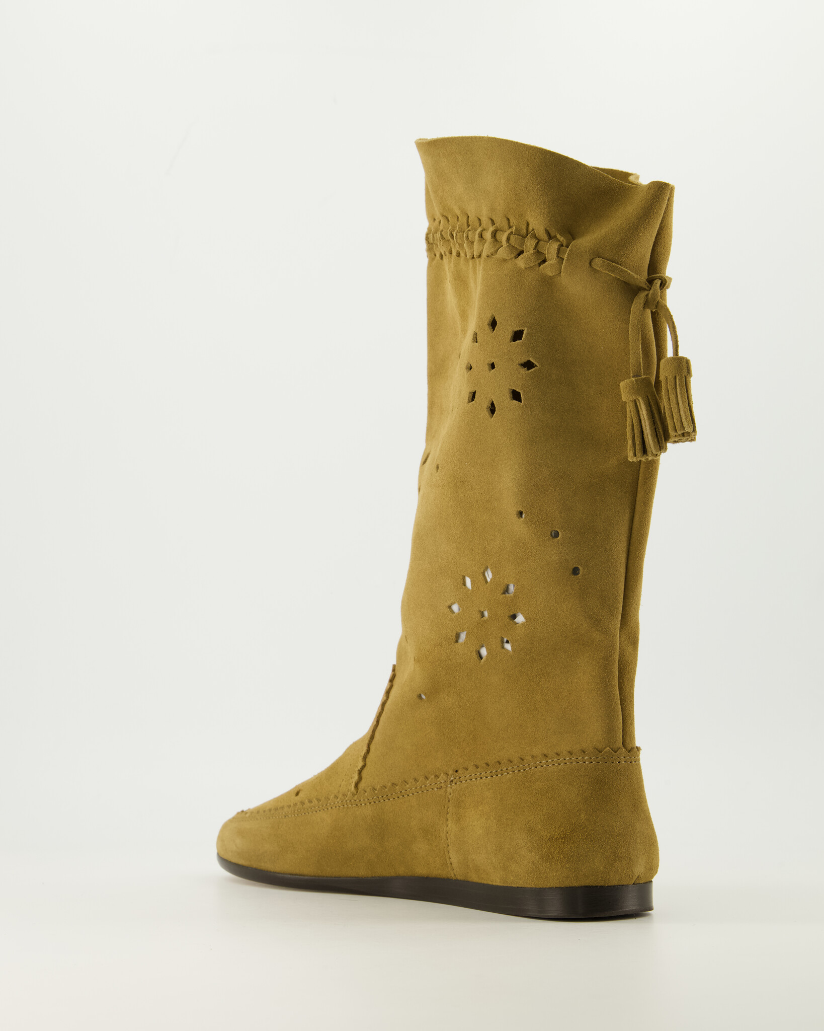 Taupe Welky laarzen van het merk Isabel Marant Dames. De Welky laarzen zijn ontworpen met een bohemien-Parijse esthetiek die het merk kenmerkt: een mix van relaxte elegantie en artisanale details. Silhouet: mid-calf (tot halverwege het onderbeen) en slouchy (losser vallende schacht) voor een nonchalante look. Details: vaak laser-cut perforaties, vlechtwerk, kwastjes of tassels rond de schacht voor extra karakter. Neus: afgerond voor een casual vibe.