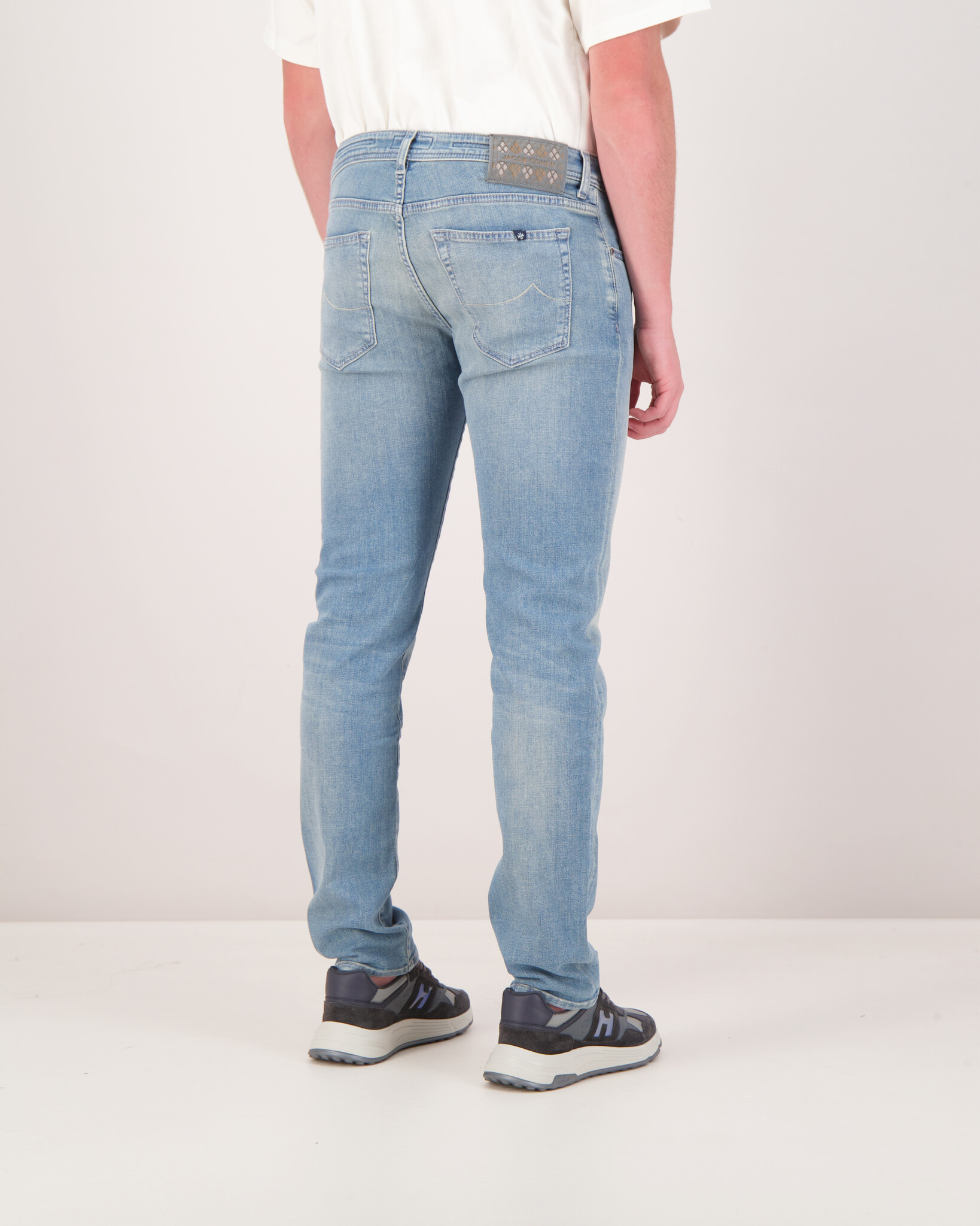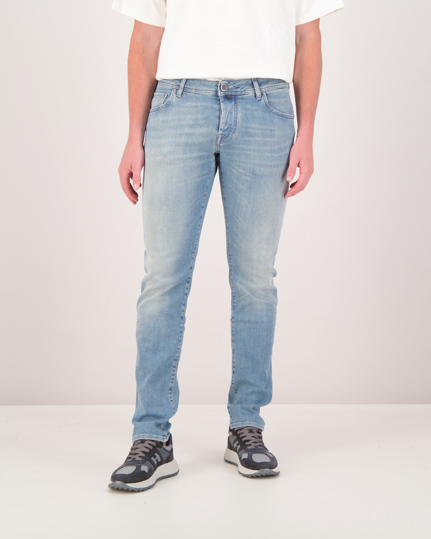Til je denimcollectie naar een hoger niveau met deze Jacob Cohën Nick Slim jeans in een frisse lichtblauwe wassing. Deze broek straalt pure elegantie en vakmanschap uit, zonder in te boeten op comfort en draagbaarheid.