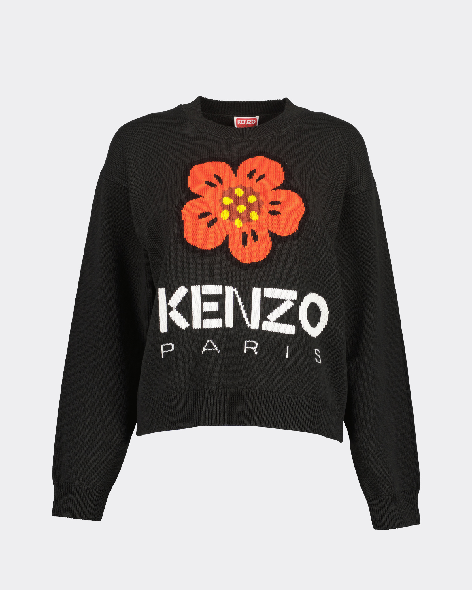 Zwarte Jumper van het merk Kenzo. De Jumper heeft in het groot de bloke flower op de voorzijde.