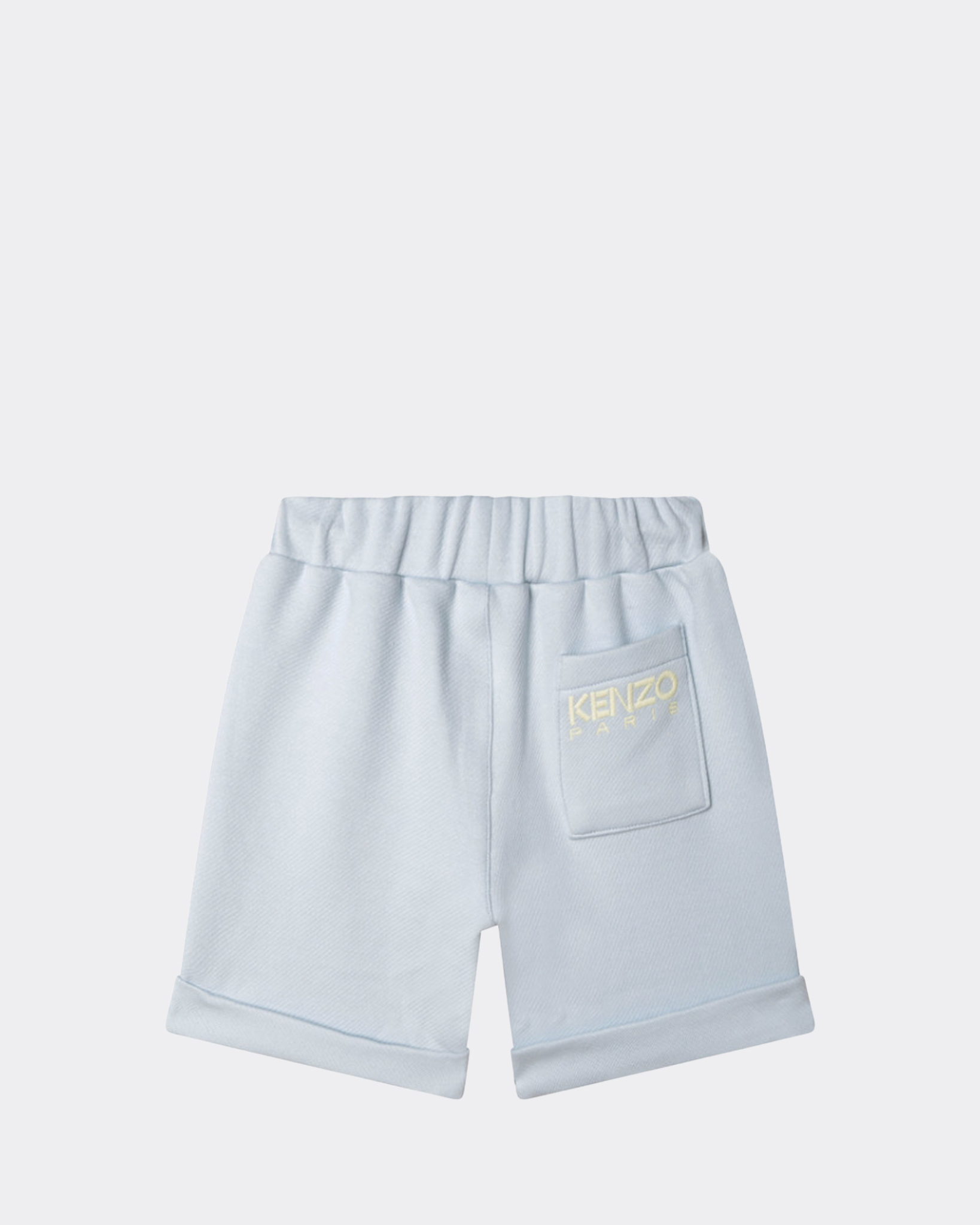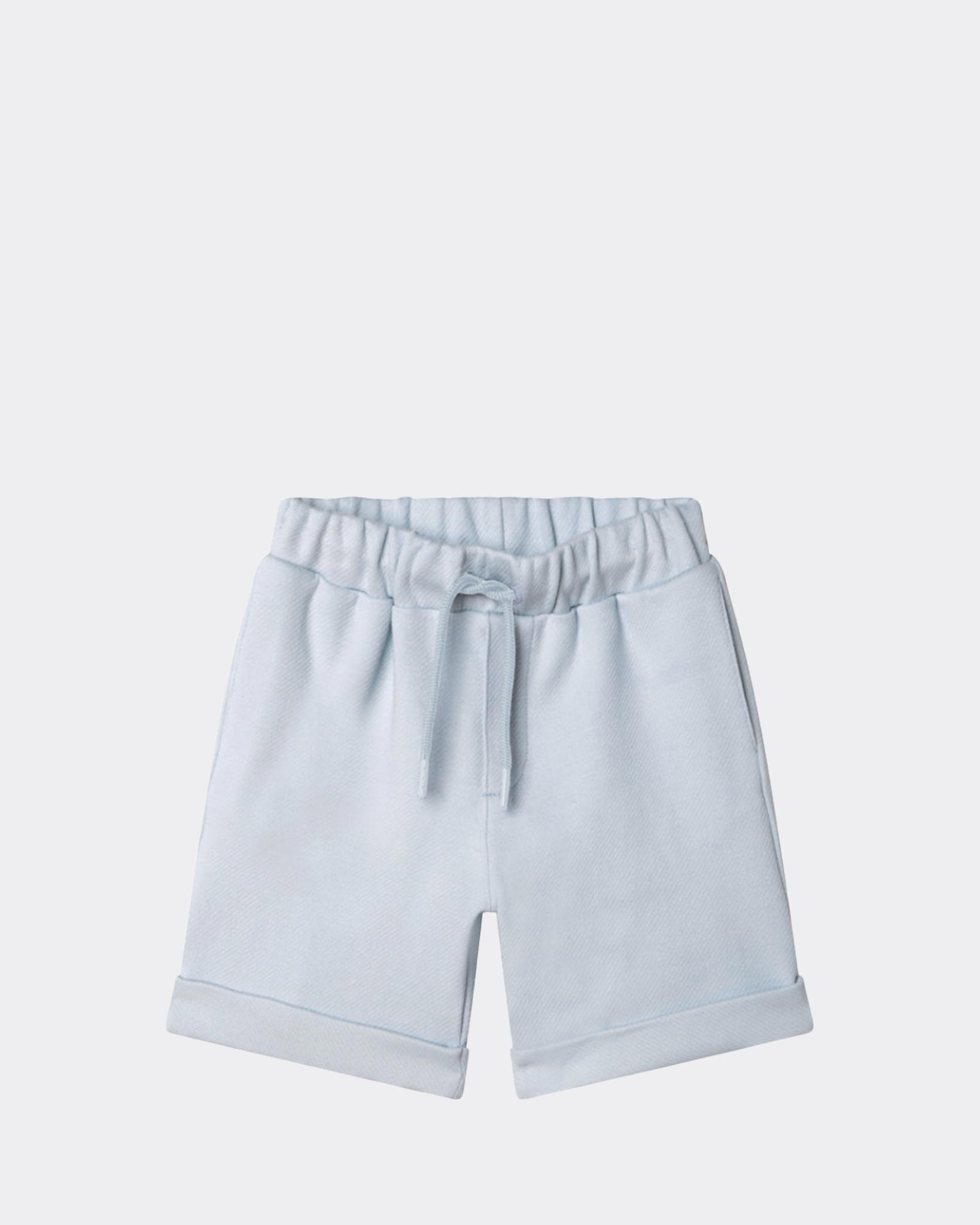Deze licht blauwe bermuda korte broek is van zachte kwaliteit. Met een omslag aan de onderkant van het pijpje.
