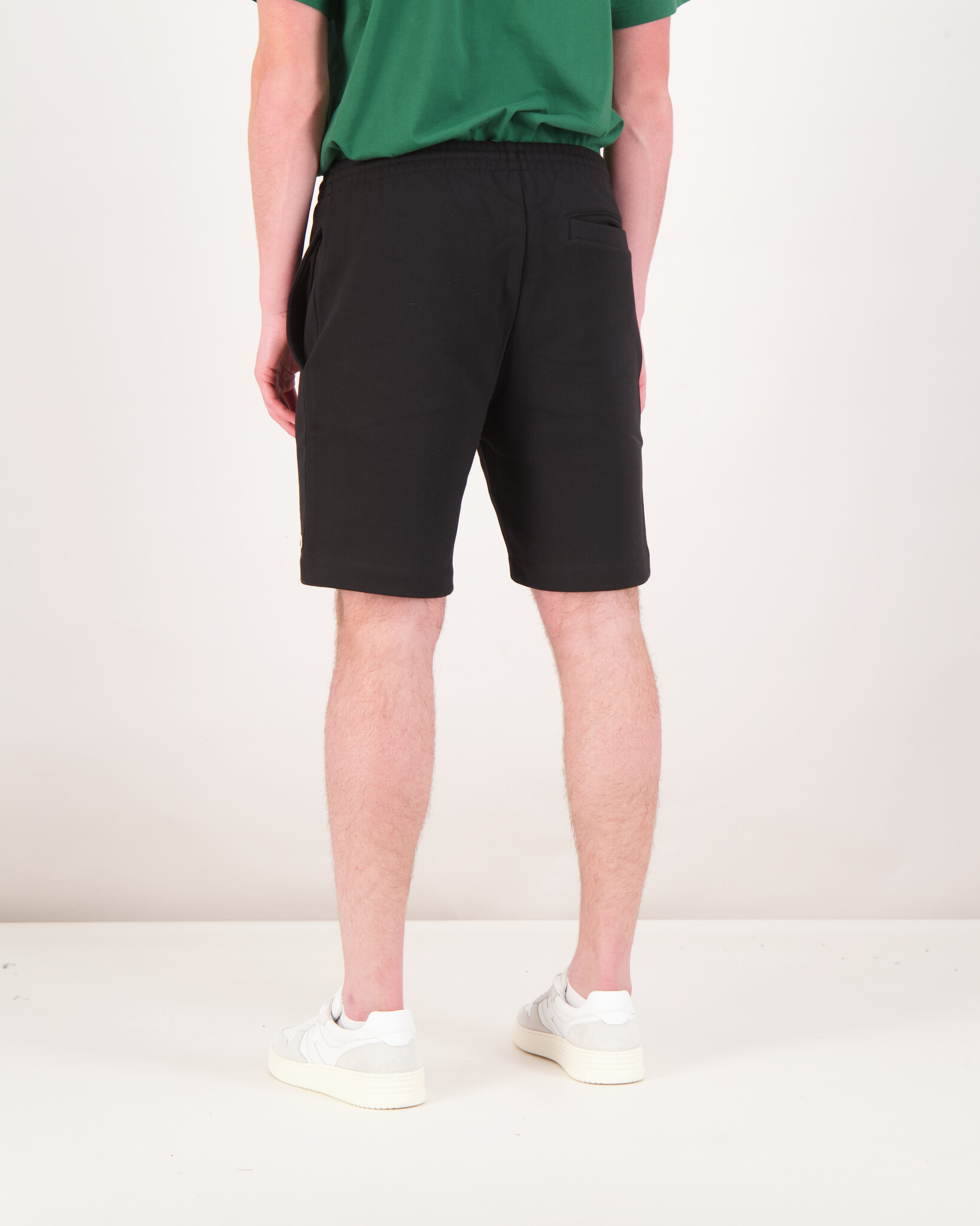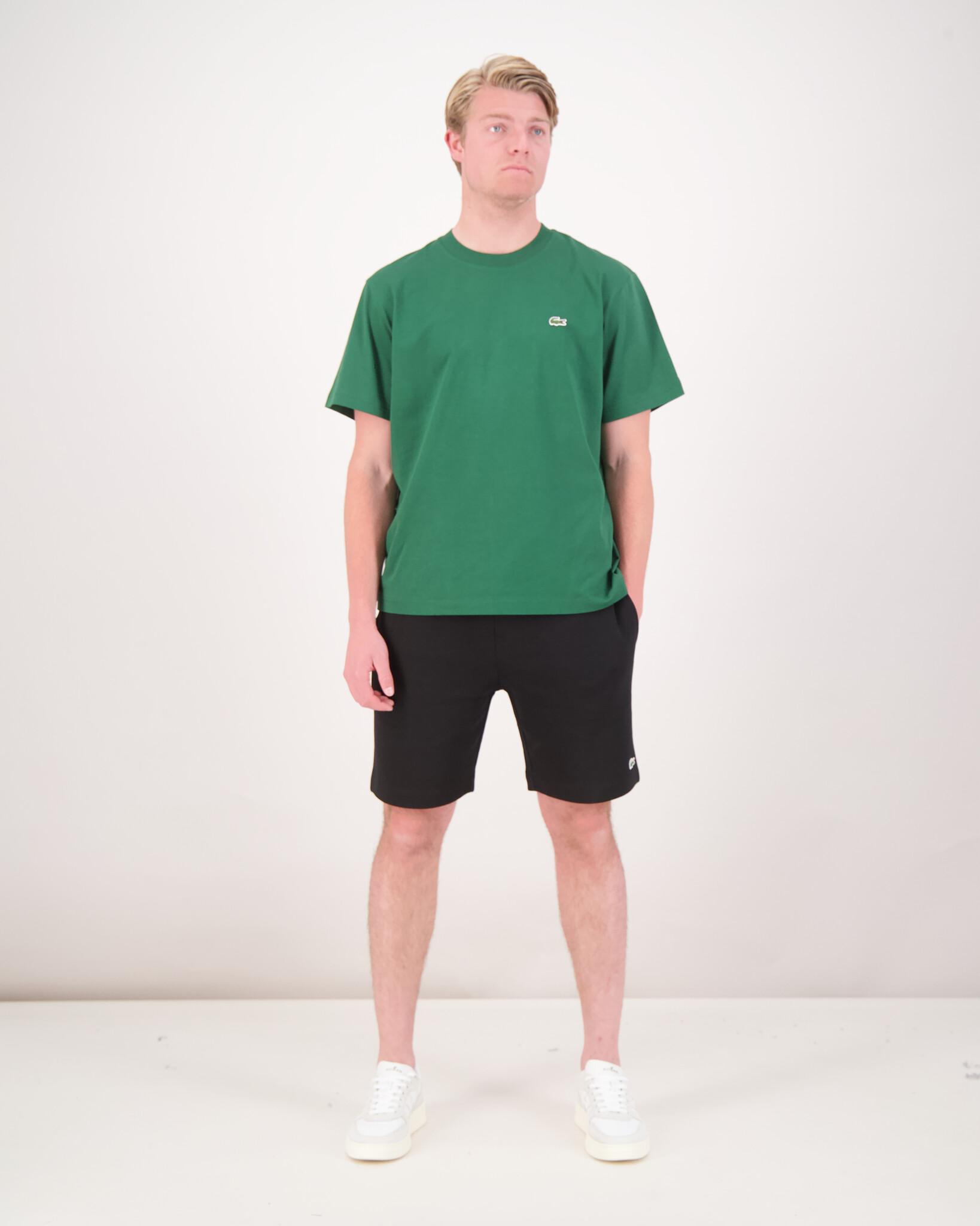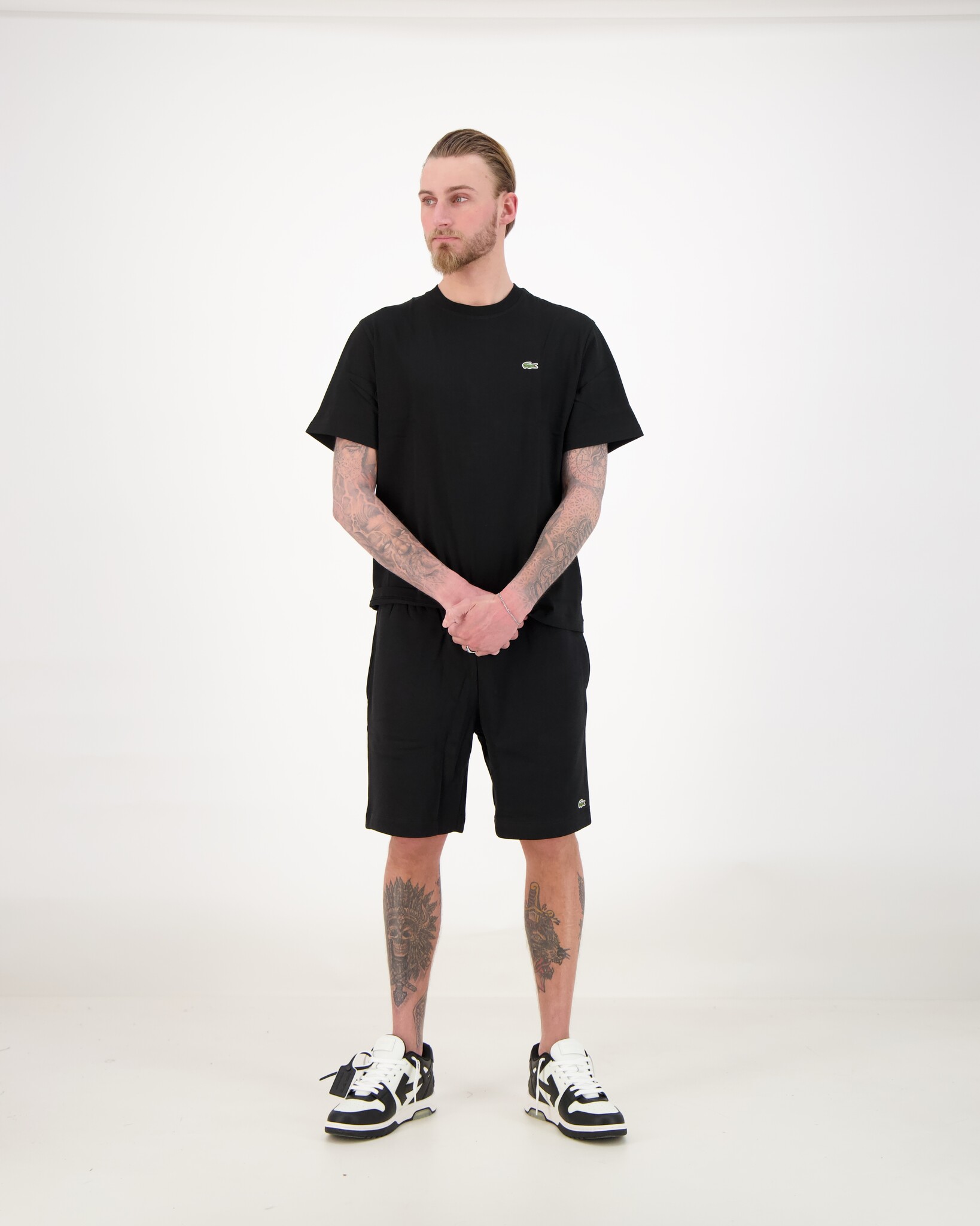 Zwarte 1HG1 Men's Shorts van het merk Lacoste. Deze korte joggingbroek heeft een aantrek koord en is voorzien van 2 steekzakken. Op het linkerbovenbeen staat het bekende krokodillen logo.