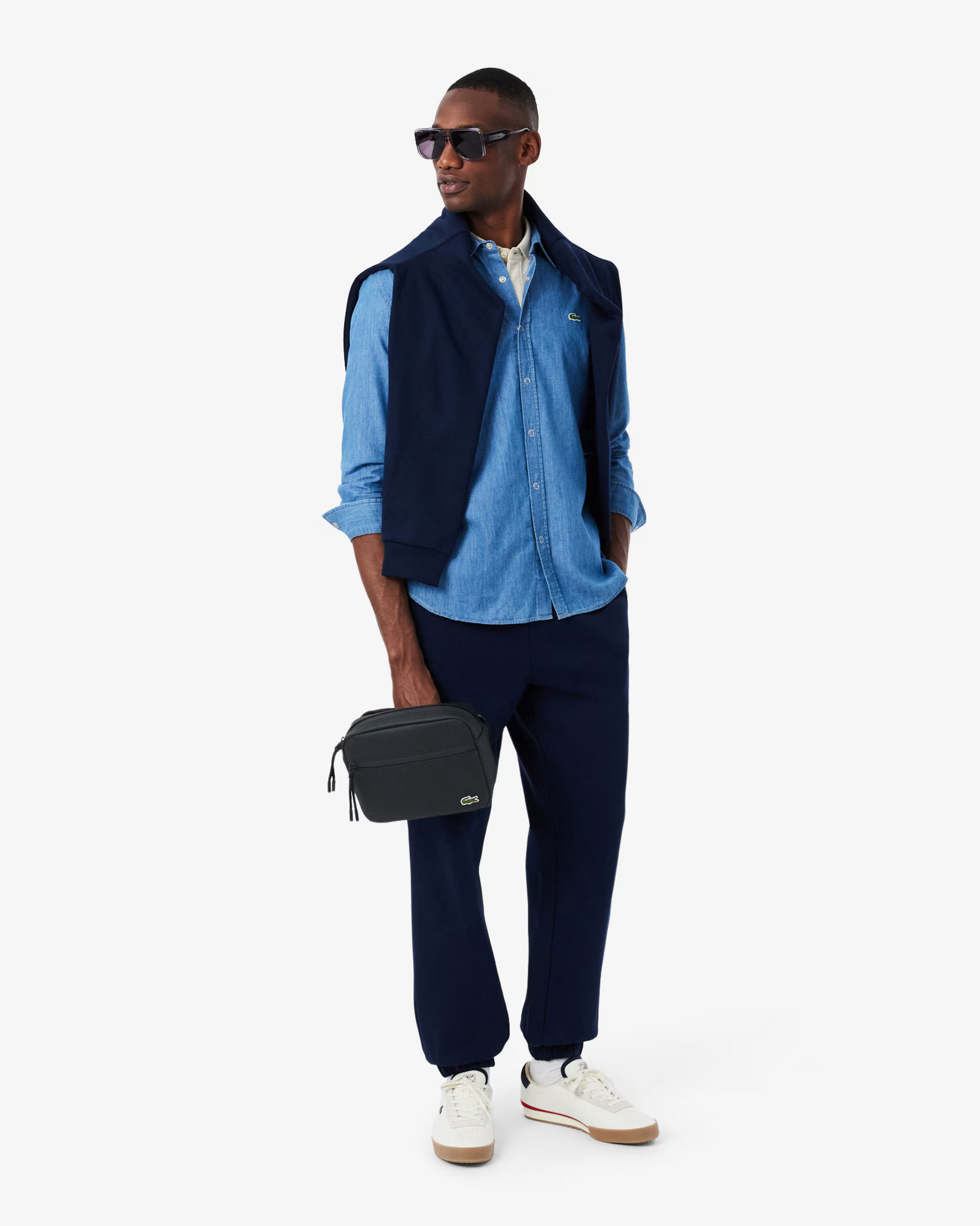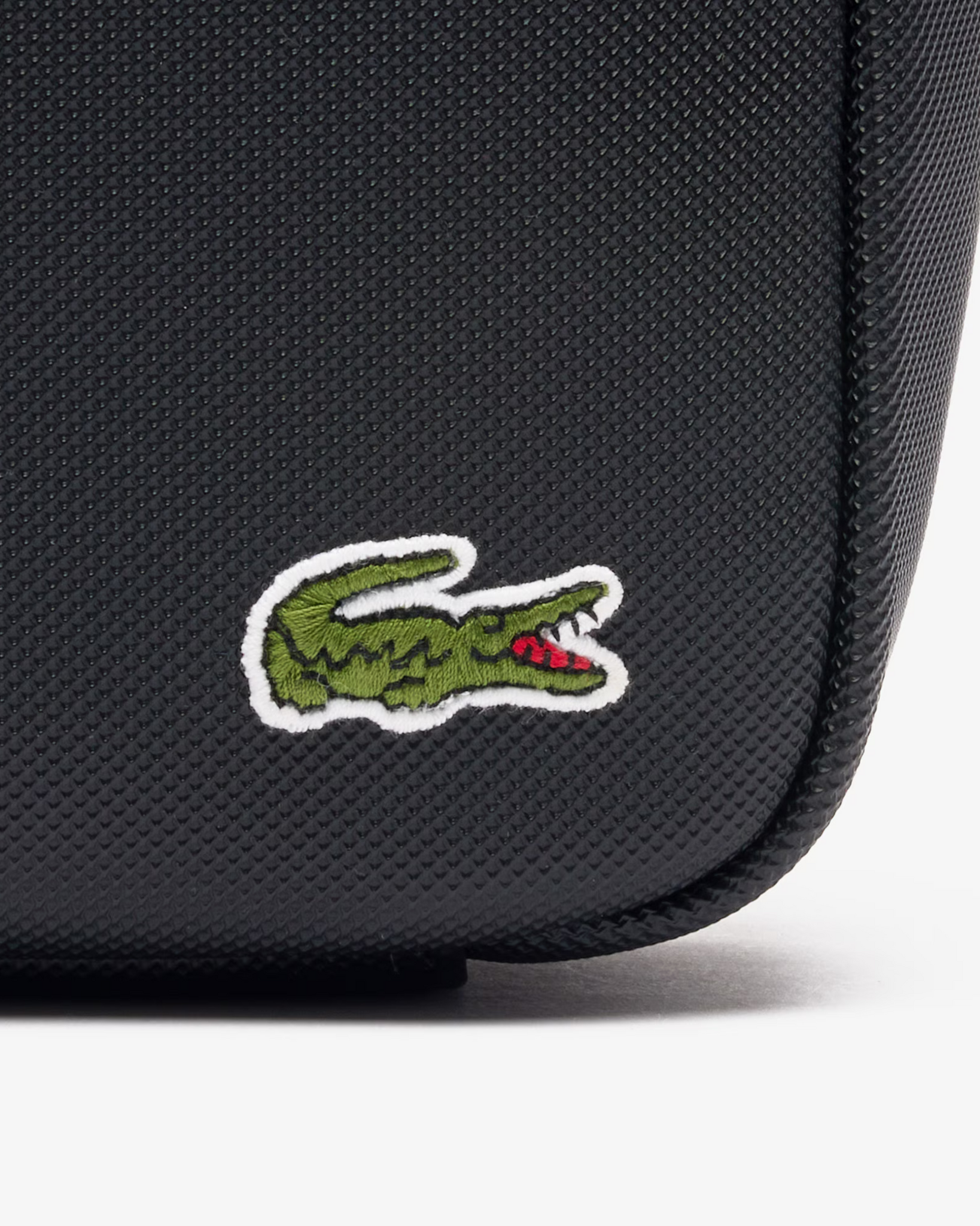 Zwarte 4HG1 Reporter Bag van het merk Lacoste. Deze Lacoste tas combineert een sportieve, eigentijdse en functionele uitstraling. Het accessoire is ontworpen om zowel stijl als gebruiksgemak te bieden en is daardoor een onmisbaar item voor dagelijks gebruik. De tas beschikt over een verstelbare schouderband voor optimaal draagcomfort, twee buitenvakken en een mesh binnenvak met rits om je spullen overzichtelijk op te bergen. Op de voorkant staat de iconische krokodil, het herkenbare symbool van het merk. De pvc buitenkant zorgt voor een stevige en duurzame afwerking.