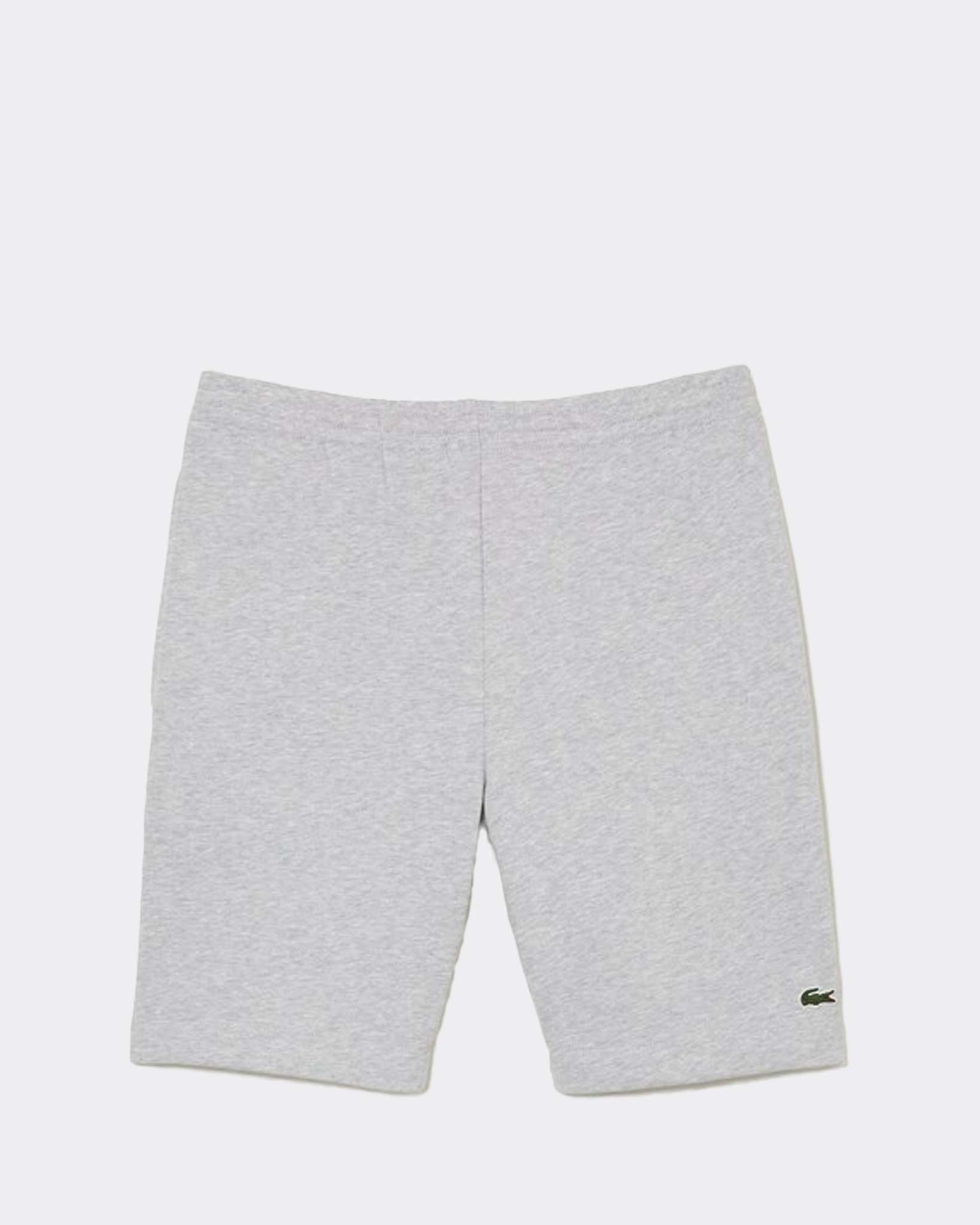 Grijze Fleece Shorts van het merk Lacoste. Deze korte joggingbroek heeft een aantrek koord en is voorzien van 2 steekzakken. Op het linkerbovenbeen staat het bekende krokodillen logo.