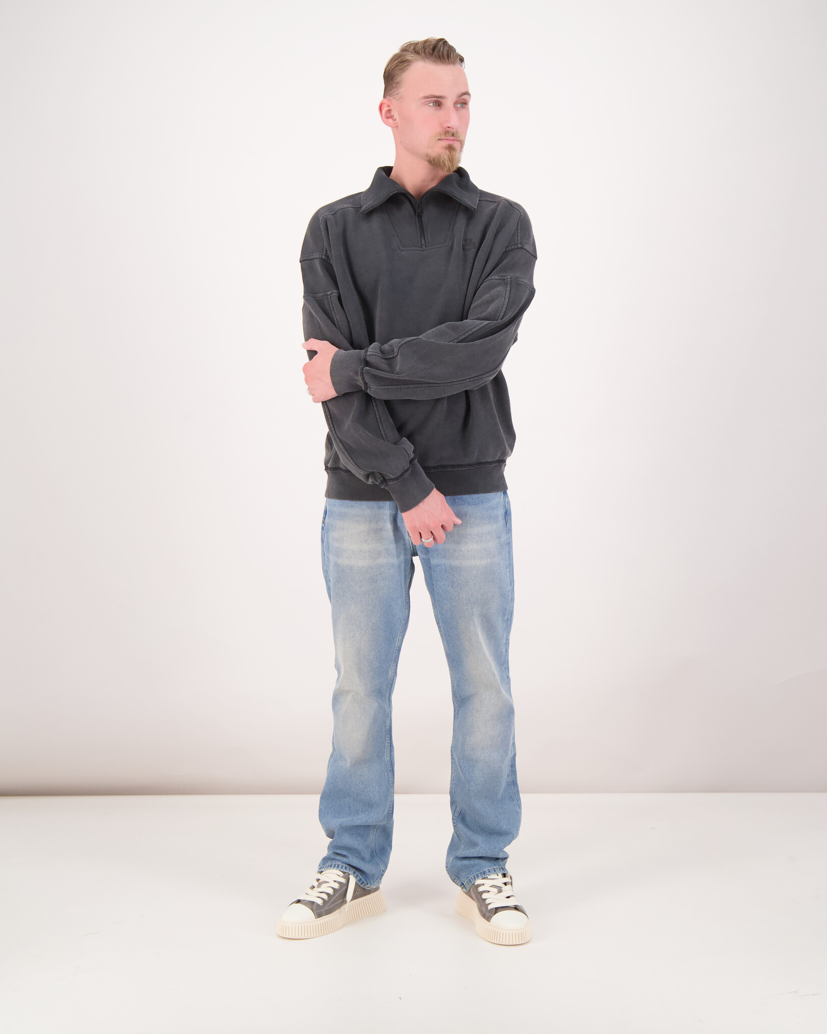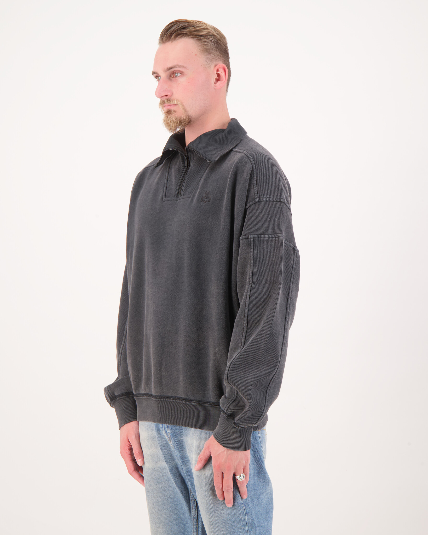 Zwarte Malone Half Zip Sweater van het merk Marant. Het Malone sweatshirt van Marant is uitgevoerd in een warme en belichaamt minimalistische luxe. Het Malone sweatshirt van Marant is gemaakt van hoogwaardig katoen en heeft een ontspannen pasvorm en een moderne troyer-kraag. Het subtiele, ton-sur-ton logo op de borst voegt een subtiel merkaccent toe. Geribde boorden aan de uiteinden zorgen voor een perfecte pasvorm en onderstrepen de cleane look.