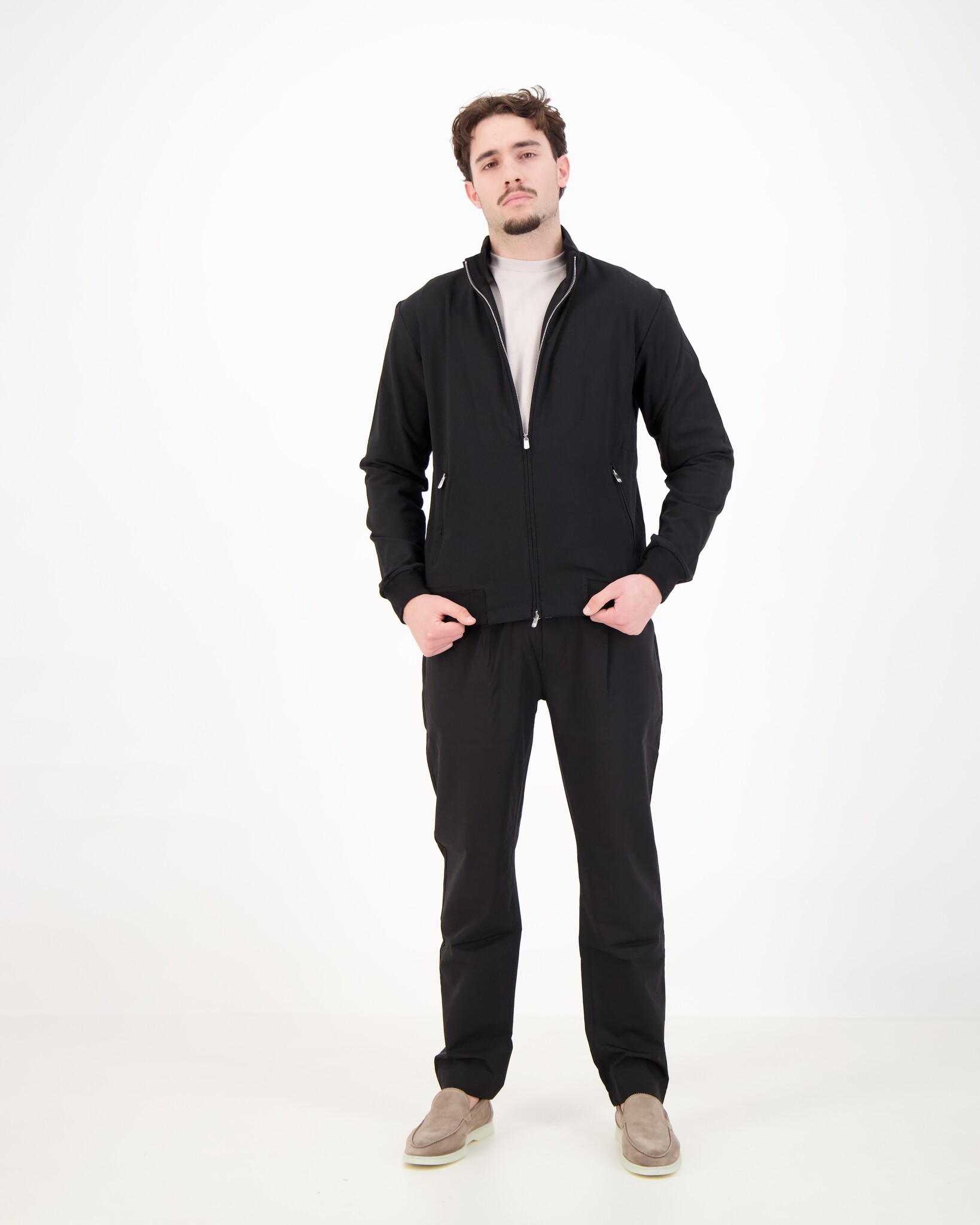 Zwarte Icon Jacket van het merk Marco Pescarolo. Deze jas heeft een openstaande kraag. Voorzien van een ritssluiting. Een jas met een minimalistisch ontwerp die je zowel smart als luxe casual kan dragen.