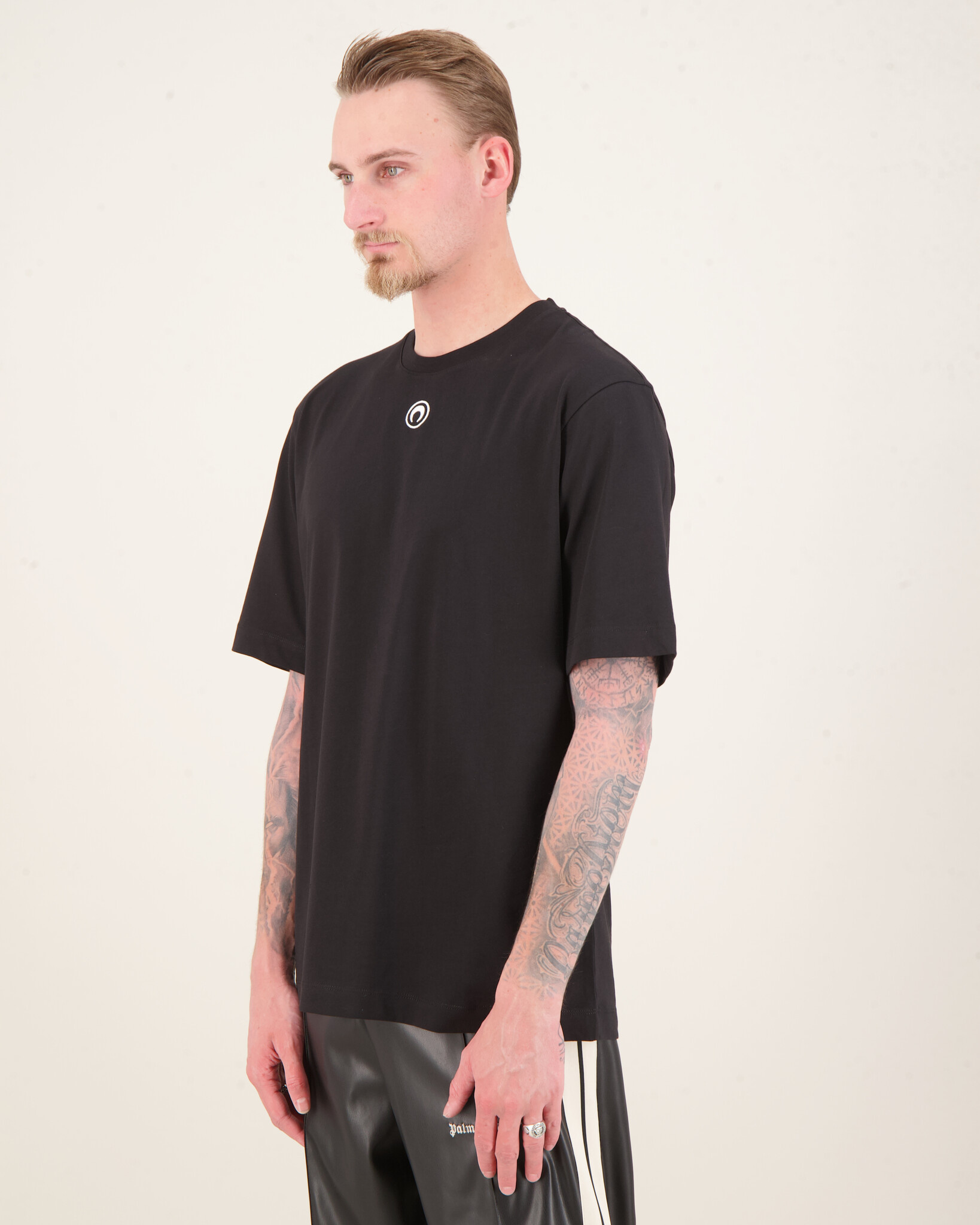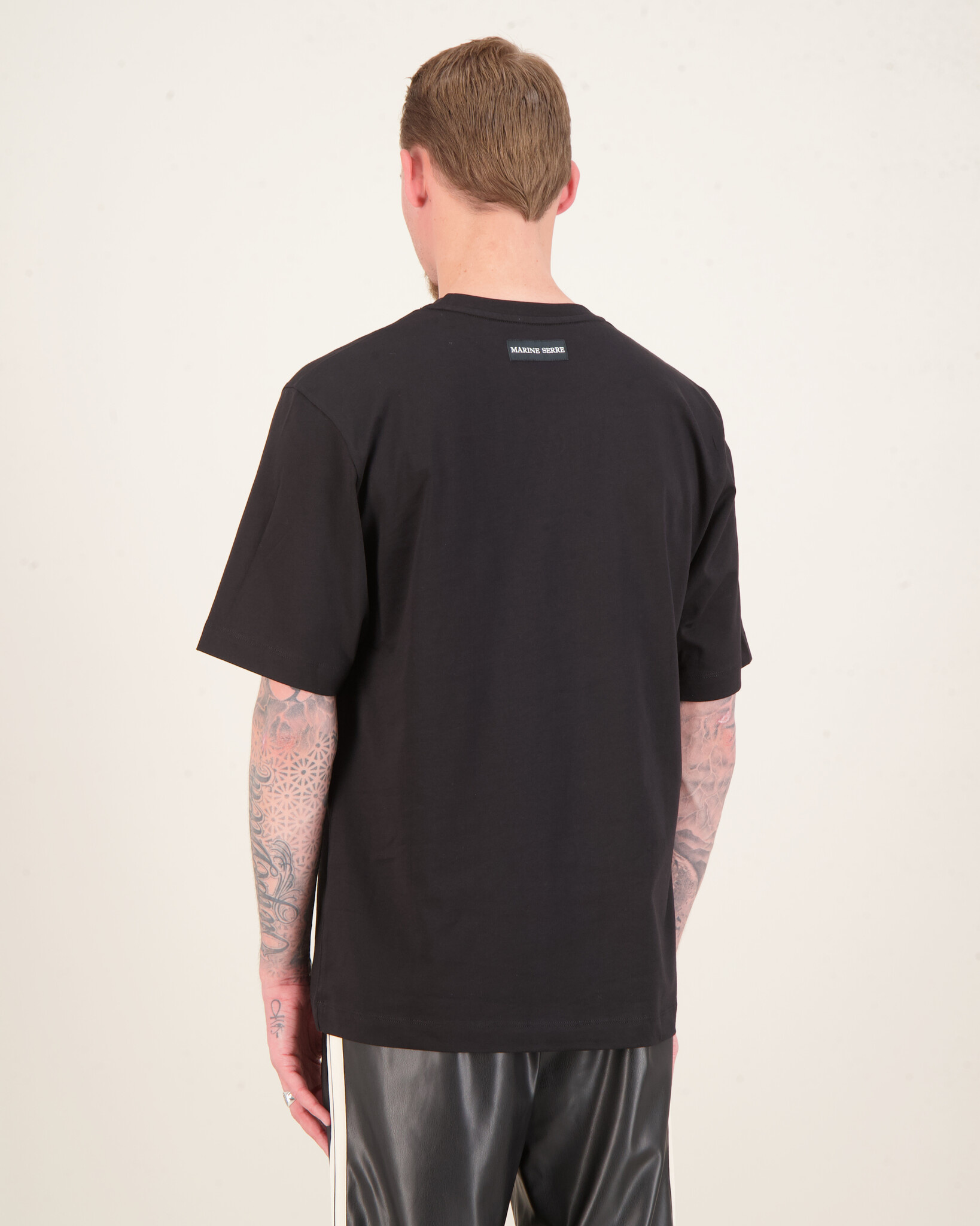 Het Moon Logo Jersey Crewneck T-Shirt van Marine Serre, uitgevoerd in een tijdloze zwarte tint, combineert een minimalistische uitstraling met een herkenbaar design. Het subtiele moon-logo detail geeft het T-shirt een iconisch en eigentijds karakter.