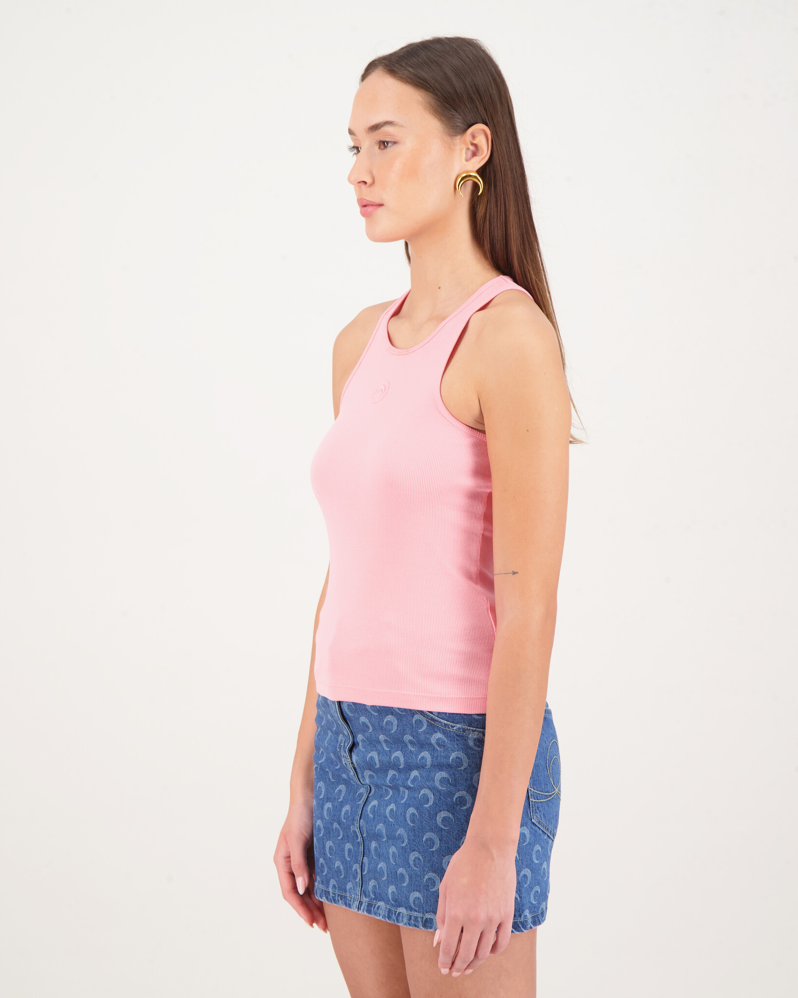 Roze Organic Cotton Rib 2x2 Tank Top van het merk Marine Serre. Deze top heeft op de borst het Marine Serre logo.
