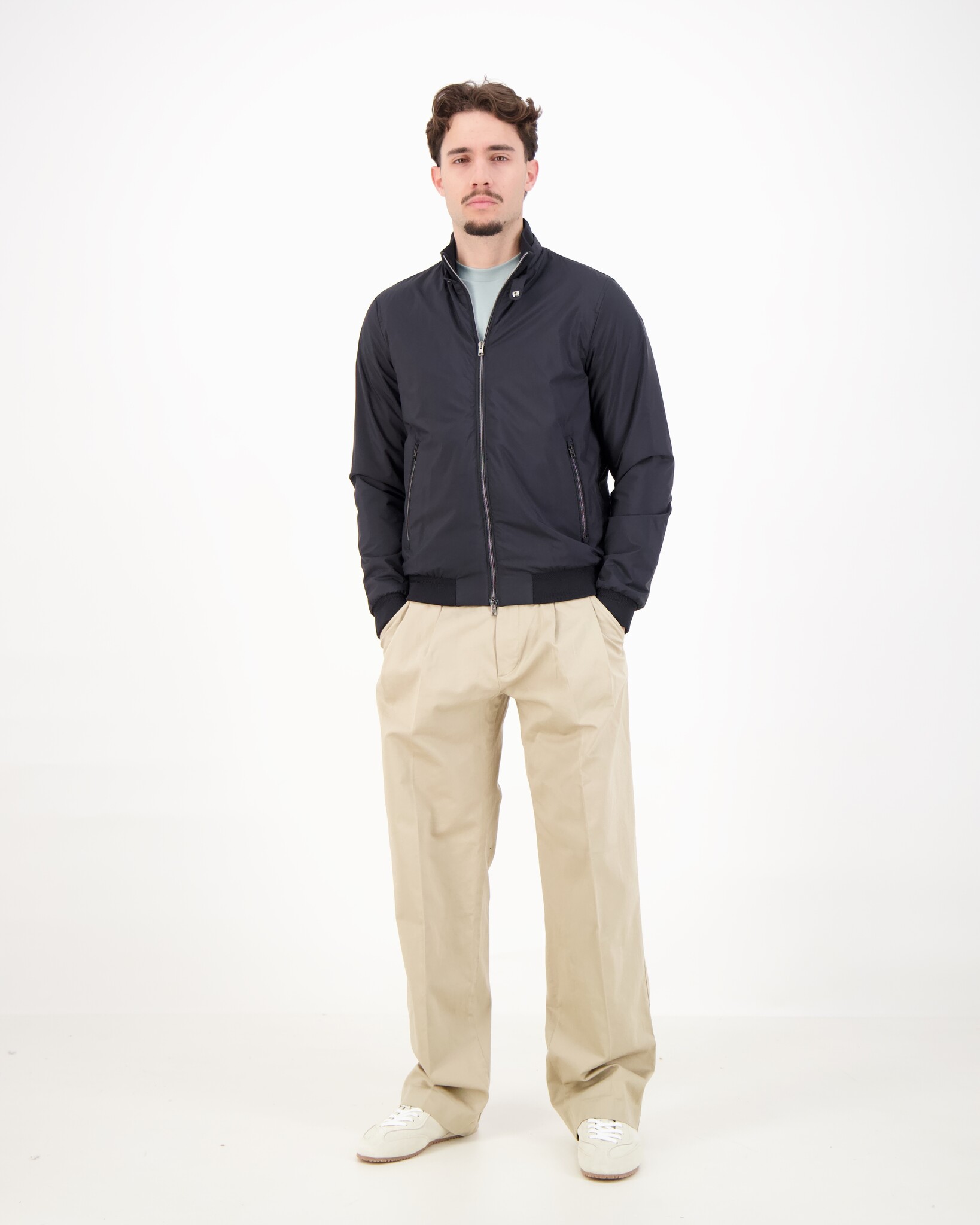 Blauwe Mens Woven Jacket van het merk Herno. Bomberjack van gerecyclede nylon, gecombineerd met een lichtgewicht, waterdichte stof van twee lagen.