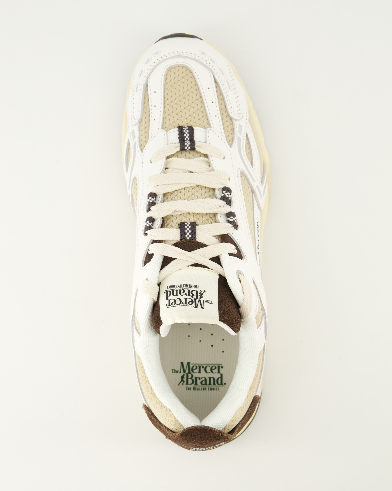 Bruin The Re-Run City Sneaker Vintage van het merk Mercer Amsterdam. De Re-Run MAX is onze geavanceerde versie van de Re-Run. De zachte EVA-zool zorgt ervoor dat elke stap aanvoelt als de meest comfortabele ervaring ooit. De gerecyclede rubberen buitenzool biedt maximale grip op een duurzame manier.