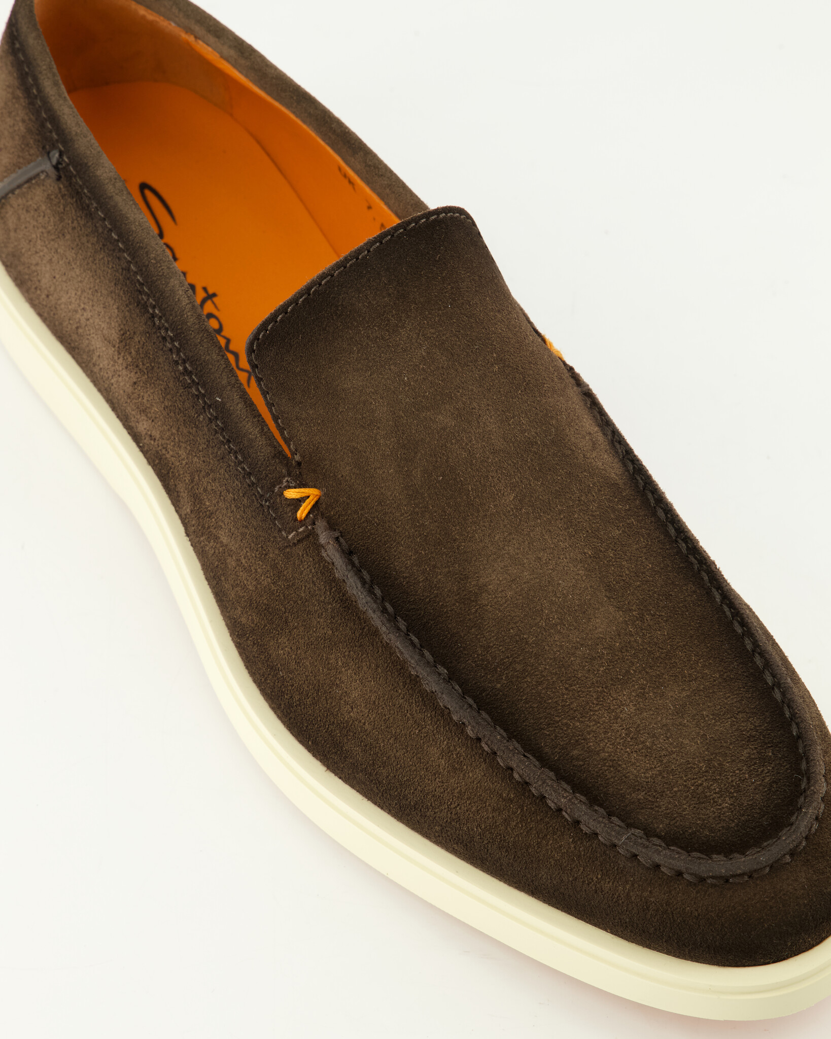 Elegante Botanist heren loafer van Santoni, gemaakt van hoogwaardig kalfsleer met een zachte, soepele structuur. Het ongevoerde design en de flexibele rubber zool zorgen voor optimaal comfort en een licht draaggevoel.
