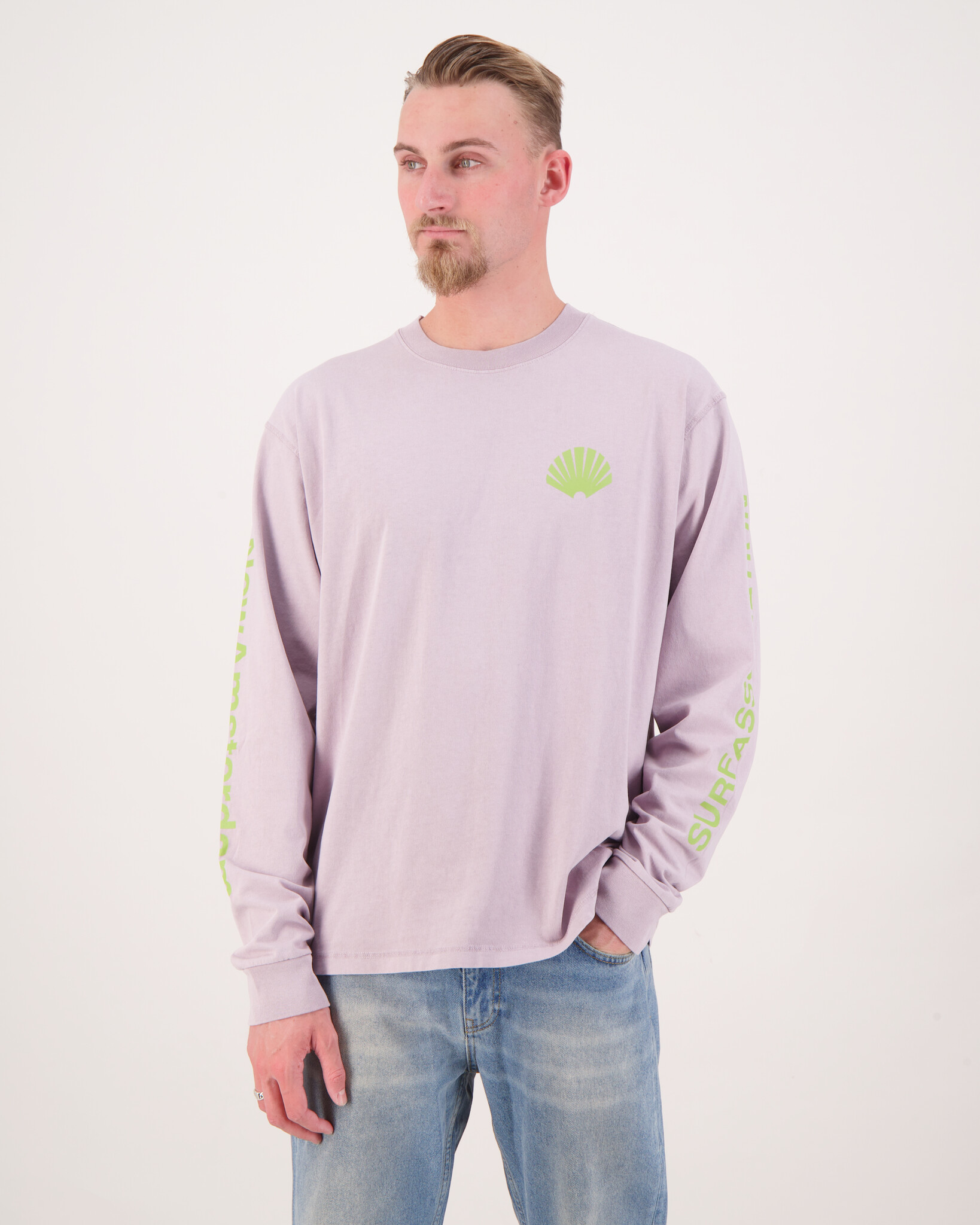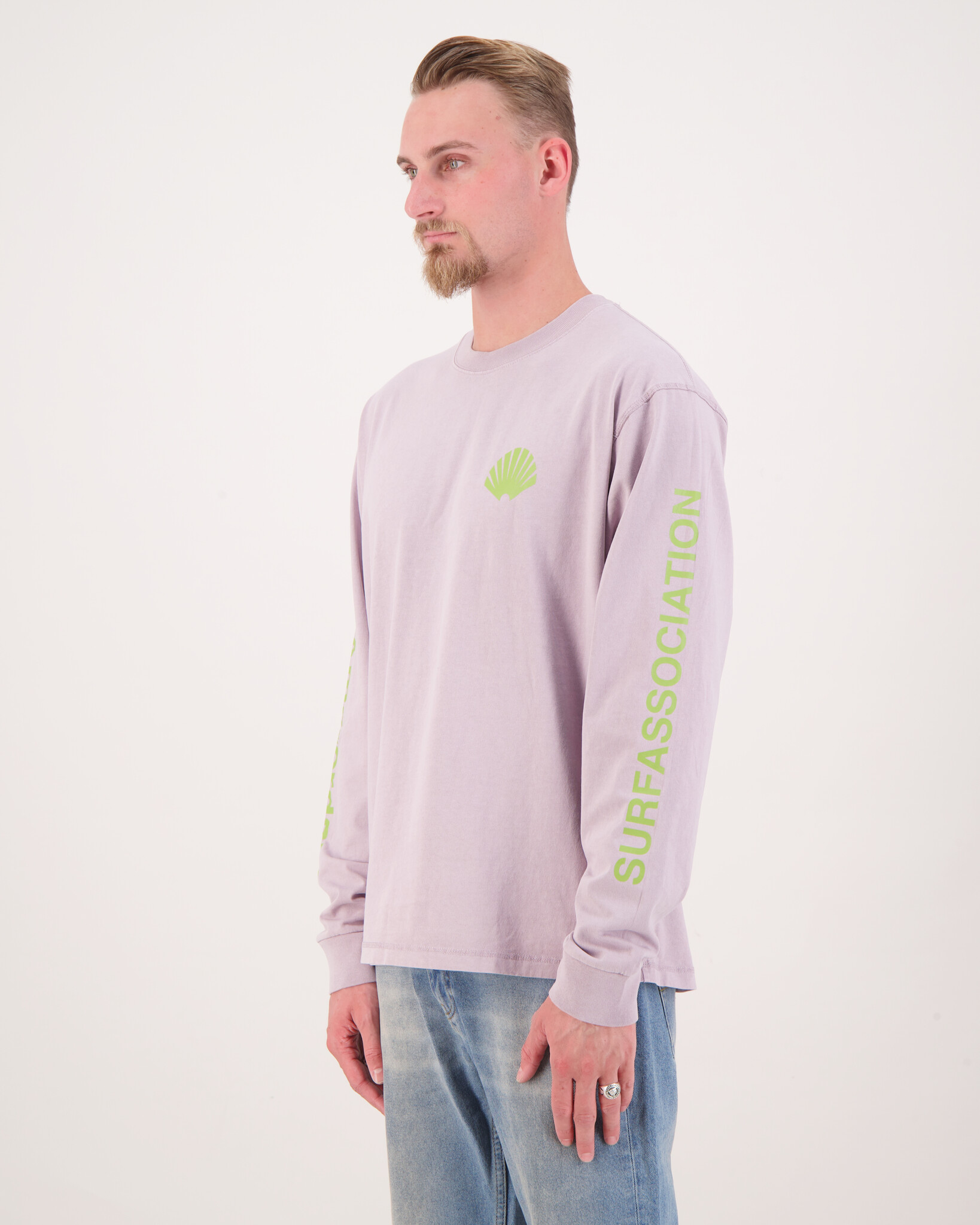 DonkerGroene 'Logo Longsleeve T-Shirt' van het merk New Amsterdam Surf Association. Het shirt is een perfecte mix van stijl en comfort. Deze longsleeve is gemaakt van hoogwaardig katoen en heeft een relaxed silhouet met het kenmerkende NASA-logo subtiel geplaatst op de borst en rug. De lila ondertoon maakt het een veelzijdig kledingstuk dat moeiteloos te combineren is met je dagelijkse outfits.