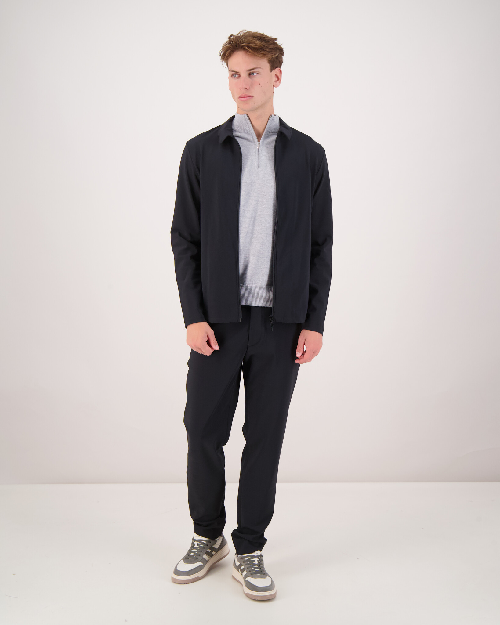De Jacket Deluxe Zwart van Neycko is een stijlvol en veelzijdig kledingstuk dat zowel casual als zakelijk gedragen kan worden. Het is ontworpen met een slim fit pasvorm en vervaardigd uit een hoogwaardige Italiaanse technojersey, bestaande uit 85% polyamide en 15% elastaan. Deze samenstelling zorgt voor een lichte, ademende stof met een uitstekende stretch en vormvastheid.