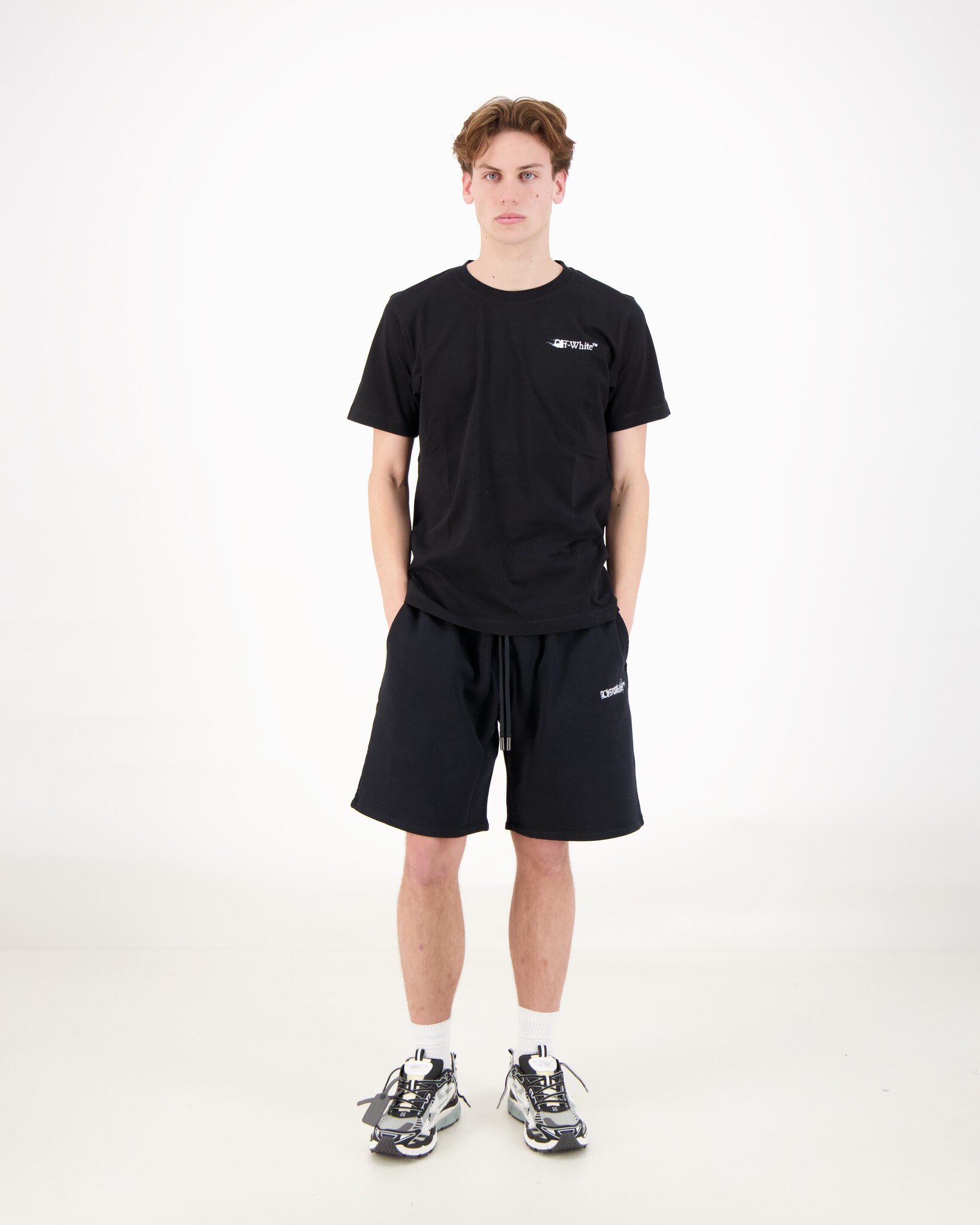 Zwarte Heraldic Treshold Arrows Skate Short van het merk Off-White. De Heraldic Treshold Arrows Skate Short van Off-White is een uitgesproken streetwear-item met een grafische edge. De zwarte short is voorzien van het kenmerkende Heraldic Arrows-design, wat zorgt voor een direct herkenbare Off-White uitstraling. De skate-inspired pasvorm biedt comfort en bewegingsvrijheid, ideaal voor dagelijks gebruik.